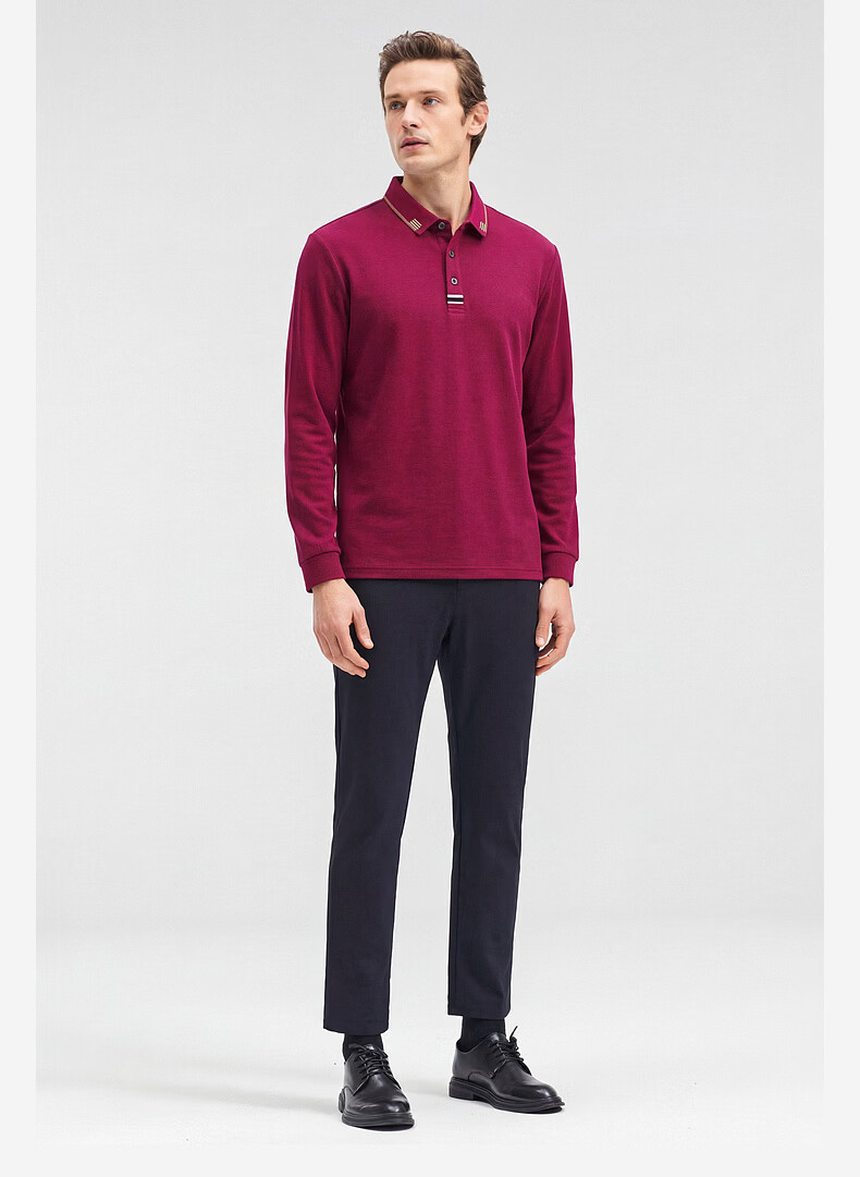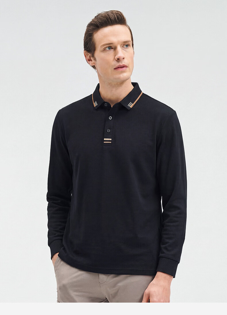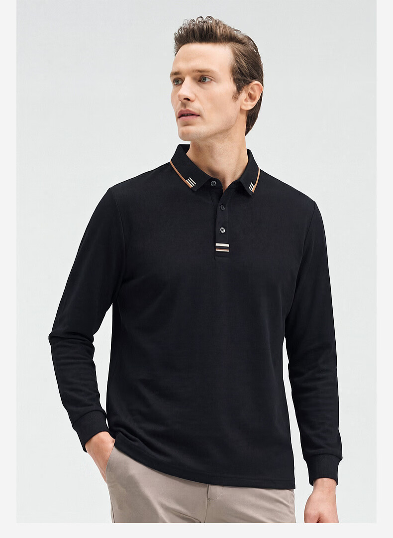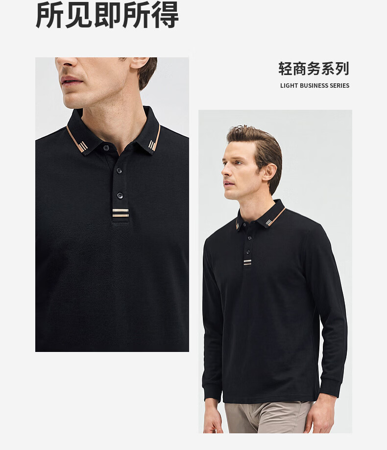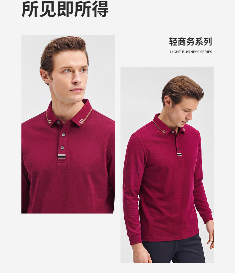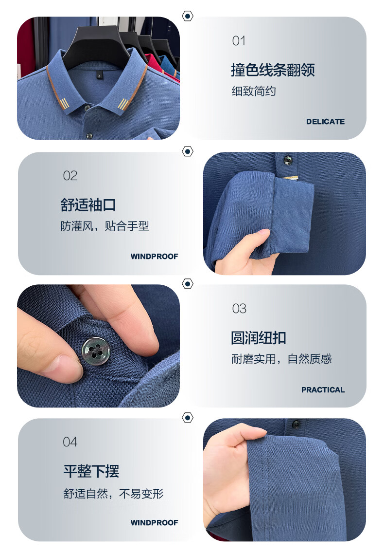 SHANSHAN杉杉【纯棉系扣】长袖t恤男翻领POLO衫纯色透气春秋新款 蓝灰色 4XL /195