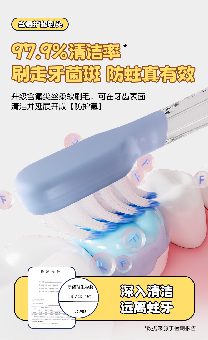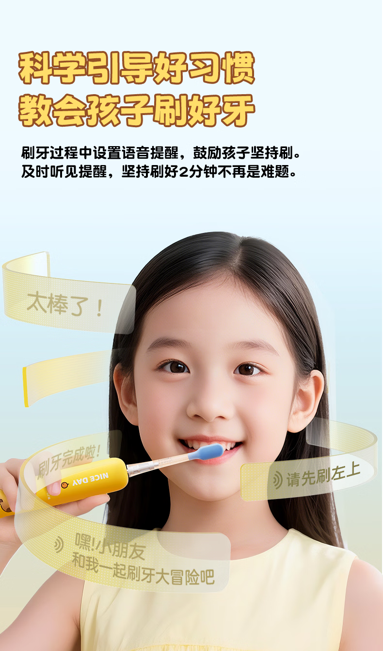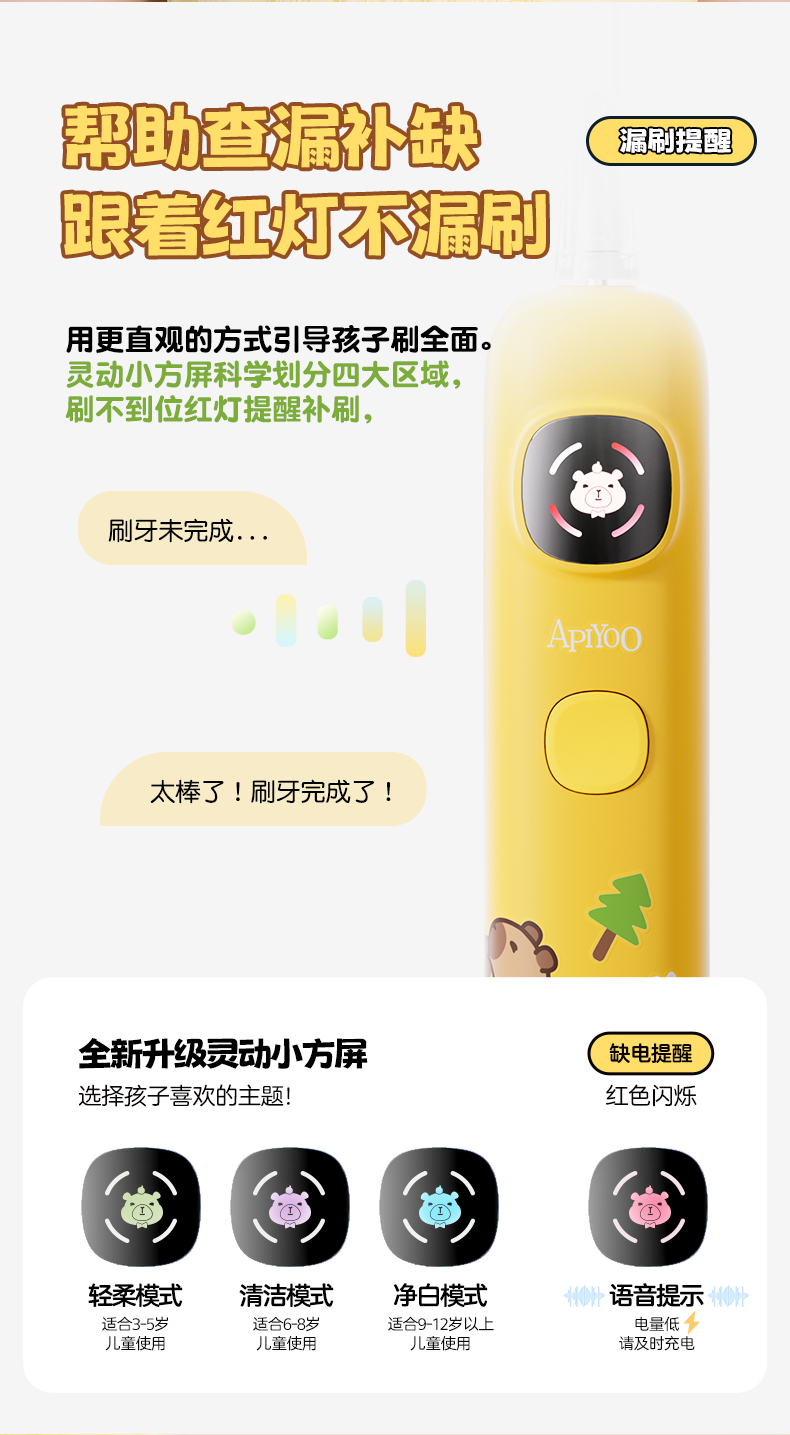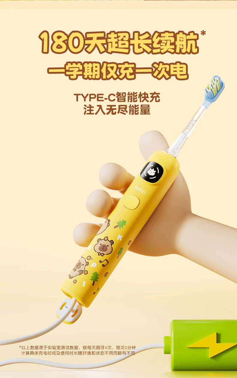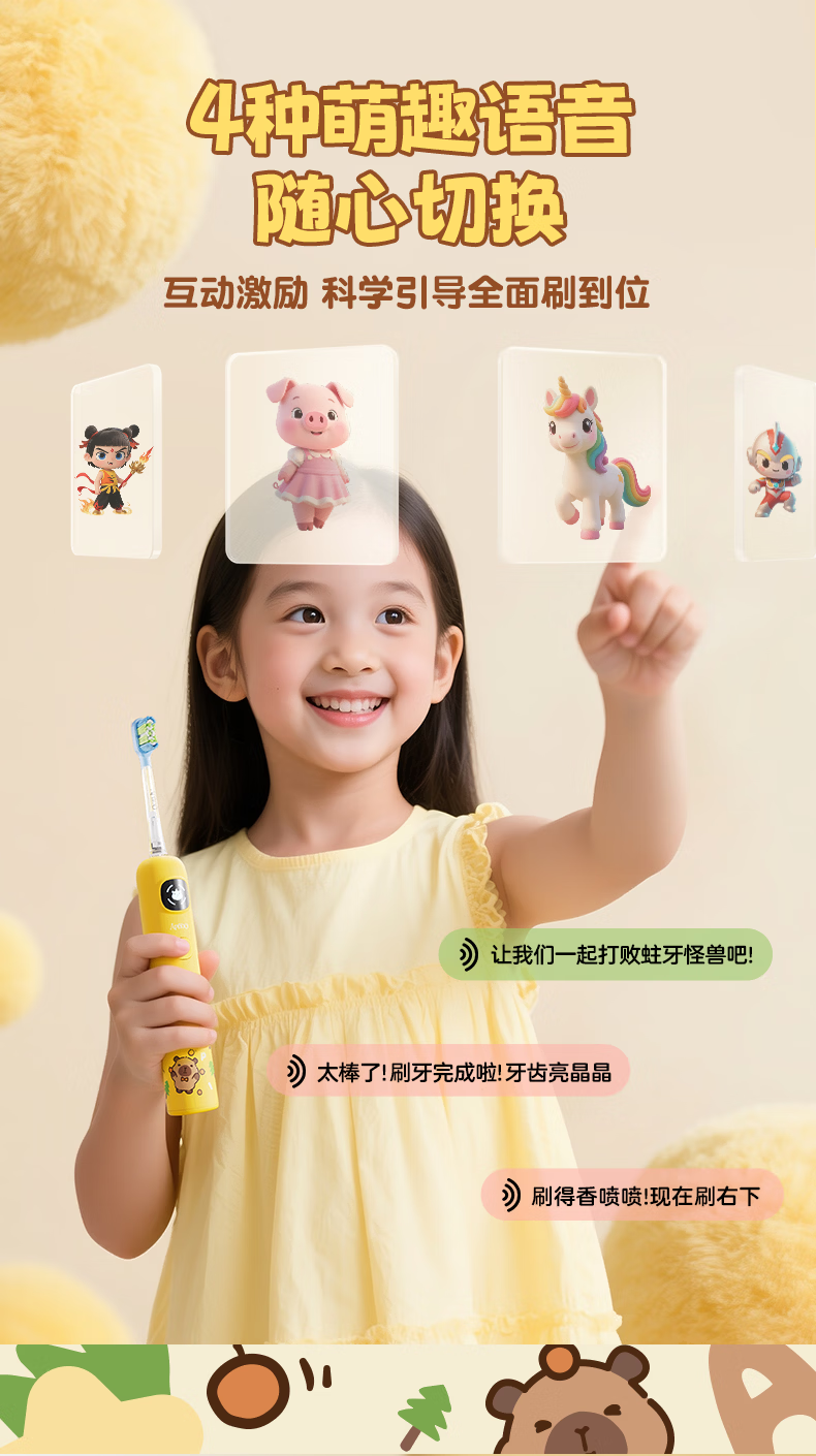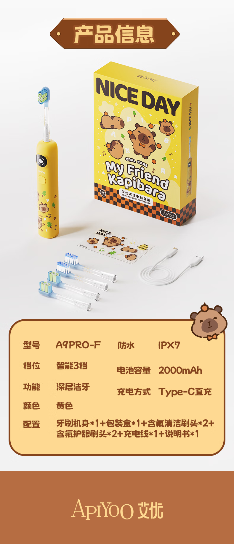 ApiYoo艾优A9pro-F卡皮巴拉儿童电动牙刷 语音漏刷提醒含氟软毛护龈3-15岁男女孩学生 儿童节日生日礼物