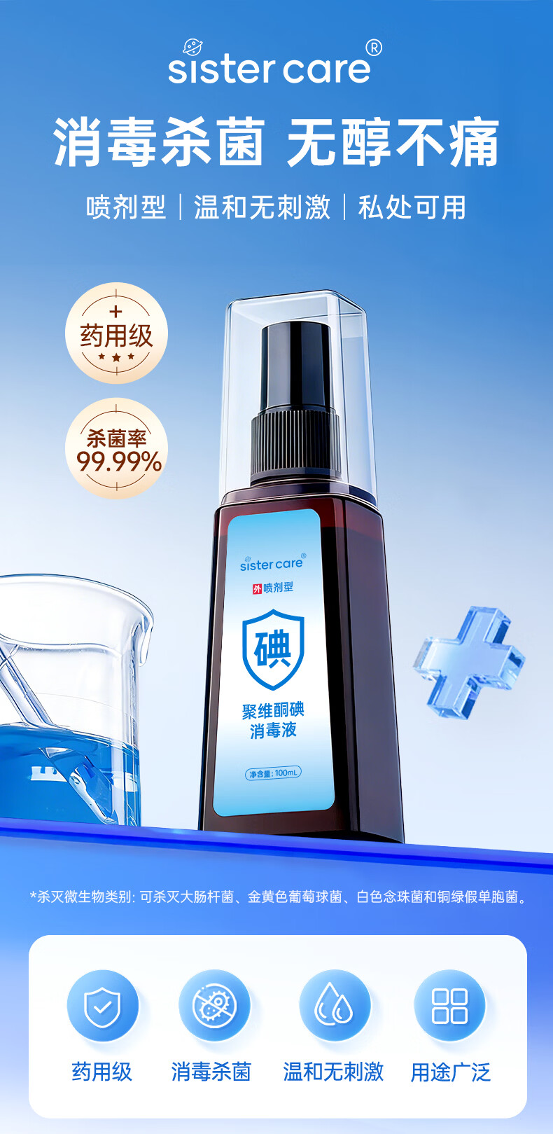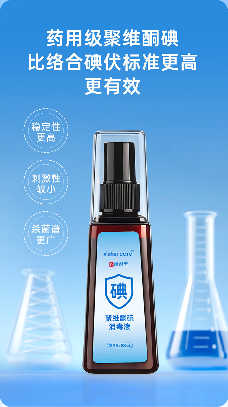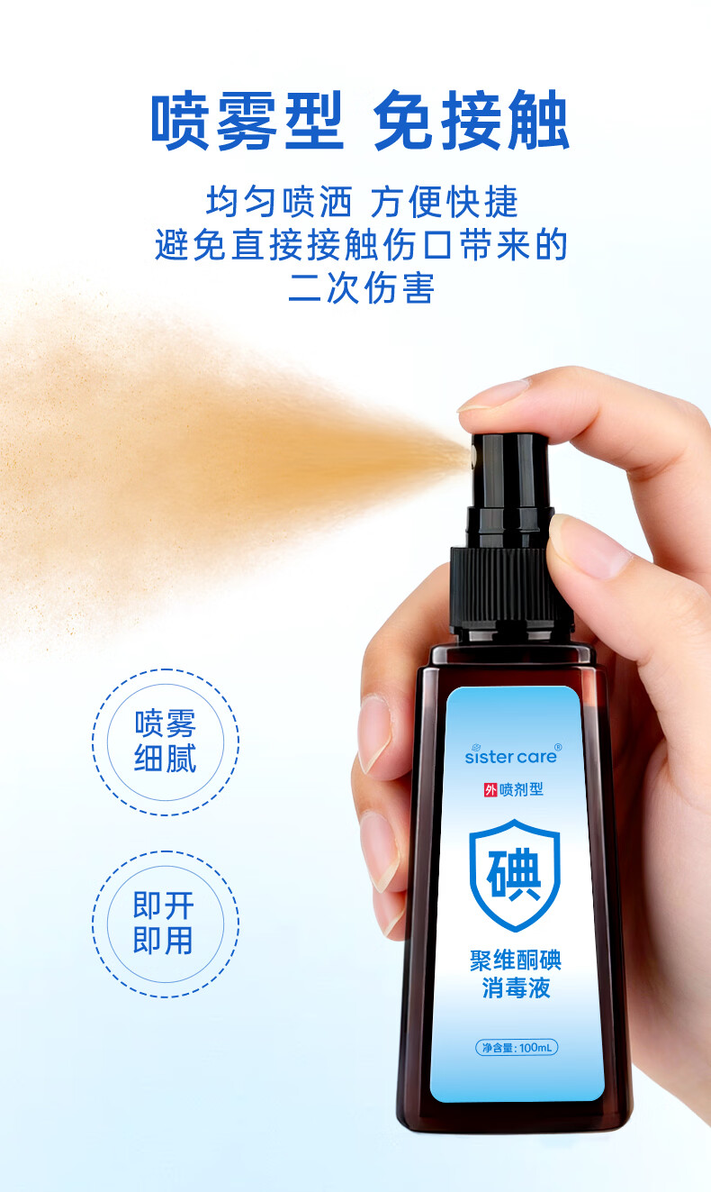 sister care碘伏消毒液喷雾新生婴儿脐带皮肤伤口医用消毒杀菌聚维酮碘100mL