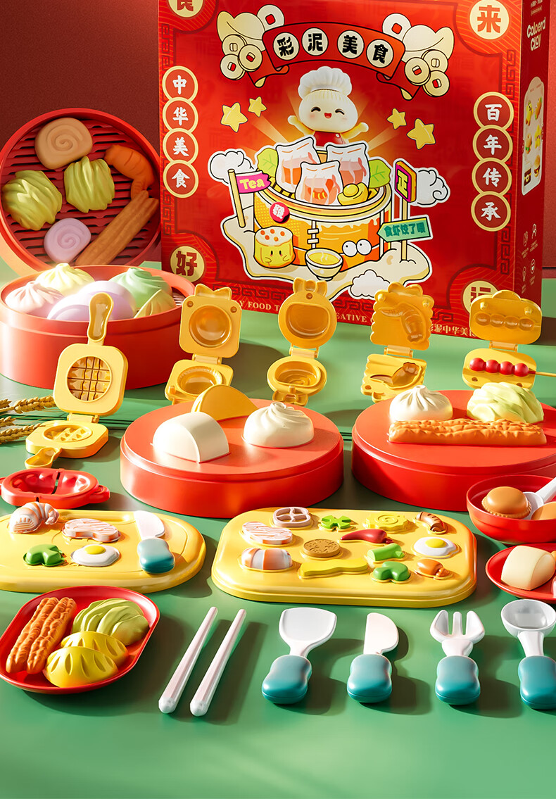 爸爸妈妈橡皮泥儿童无毒食品级面粉彩泥套装粘土黏土中华美食彩泥玩具礼物