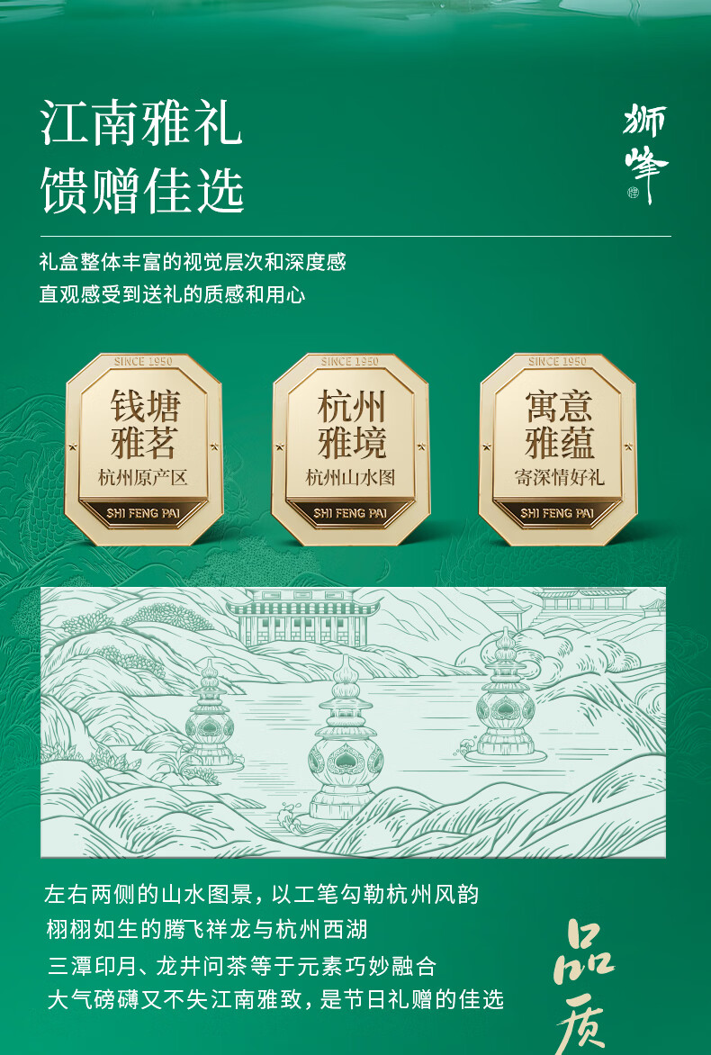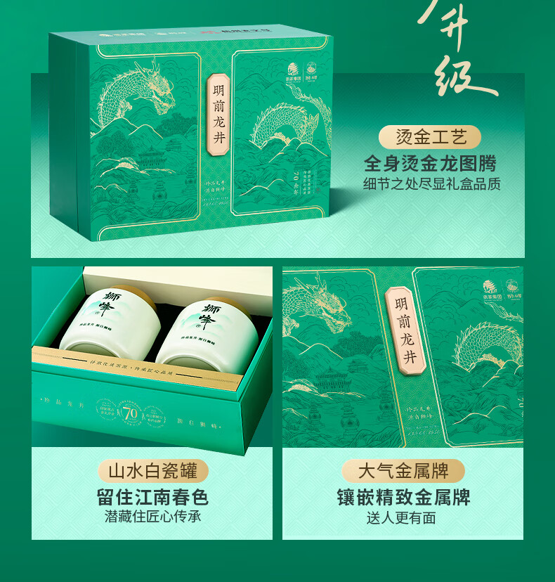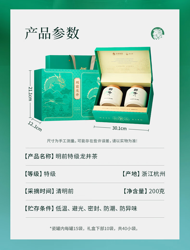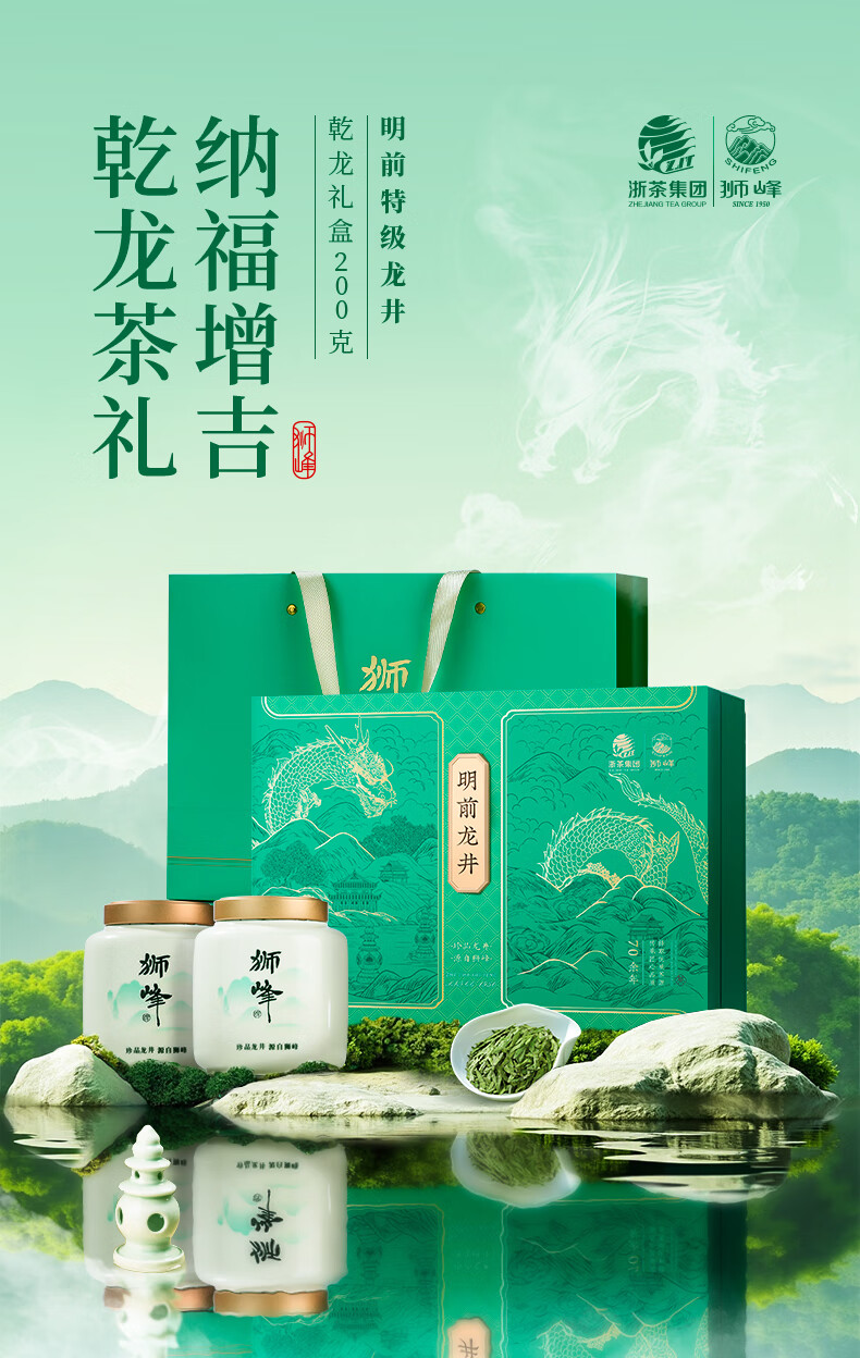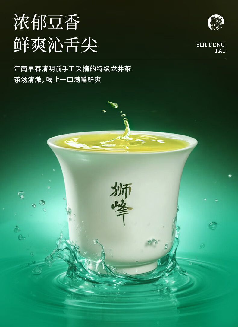 狮峰牌2026年新茶上市绿茶龙井茶叶明前特级200g瓷罐礼盒装送礼自己喝