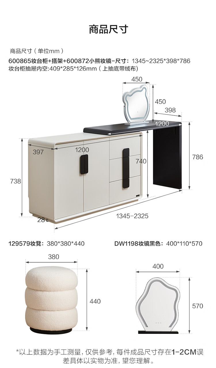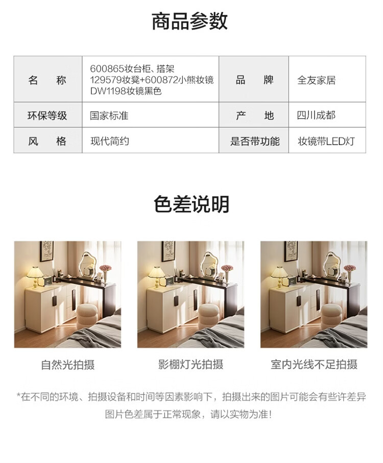 全友家居奶油风梳妆台小户型家用卧室储物收纳桌床头化妆桌化妆椅组合 【奶油白】妆台+妆镜+妆凳