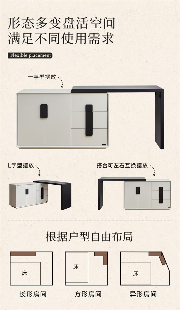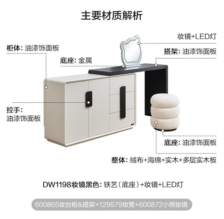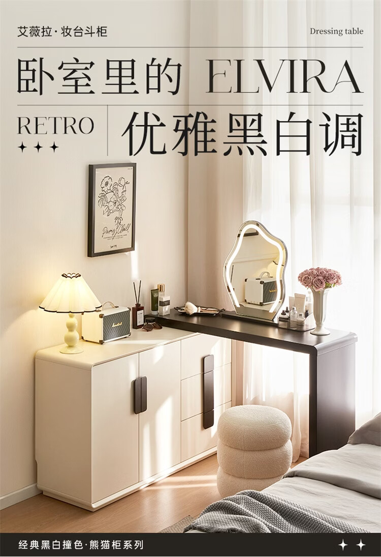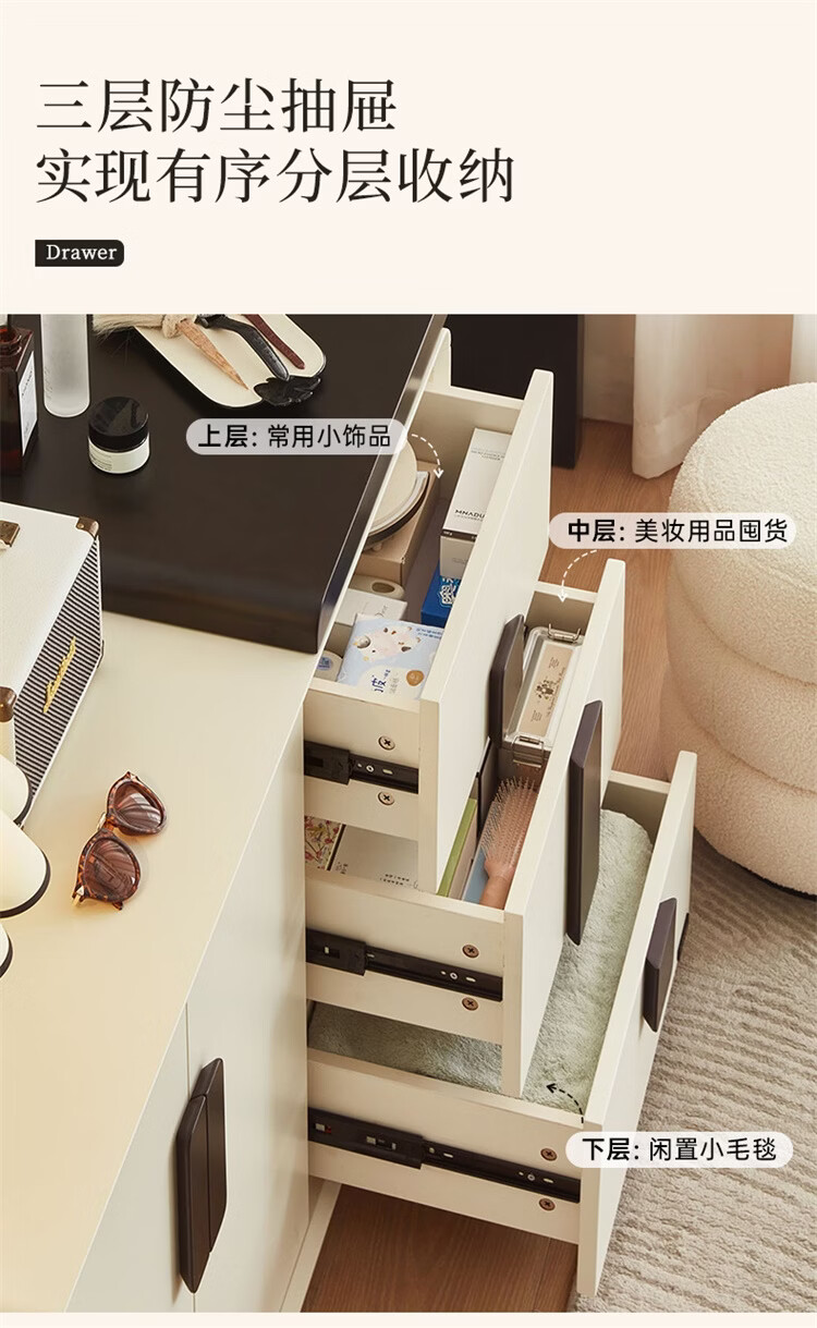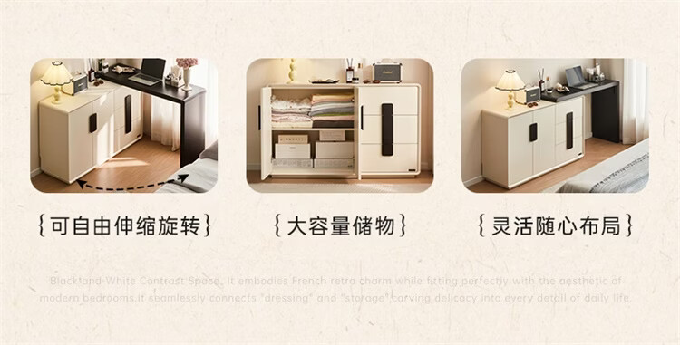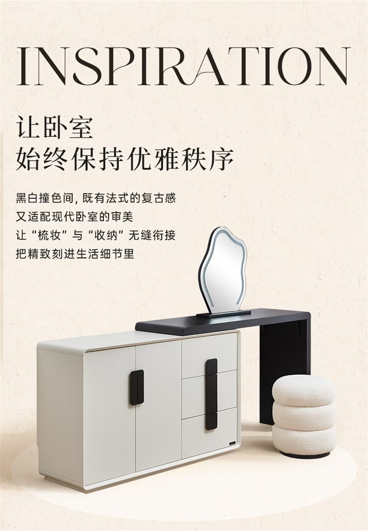 全友家居现代简约风斗柜梳妆台一体家用小户型床尾柜可旋转搭台收纳柜 【黑白拼色】妆台柜