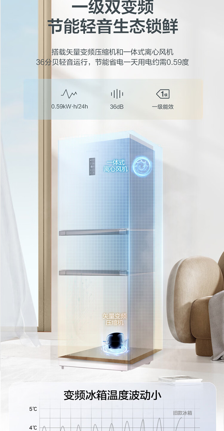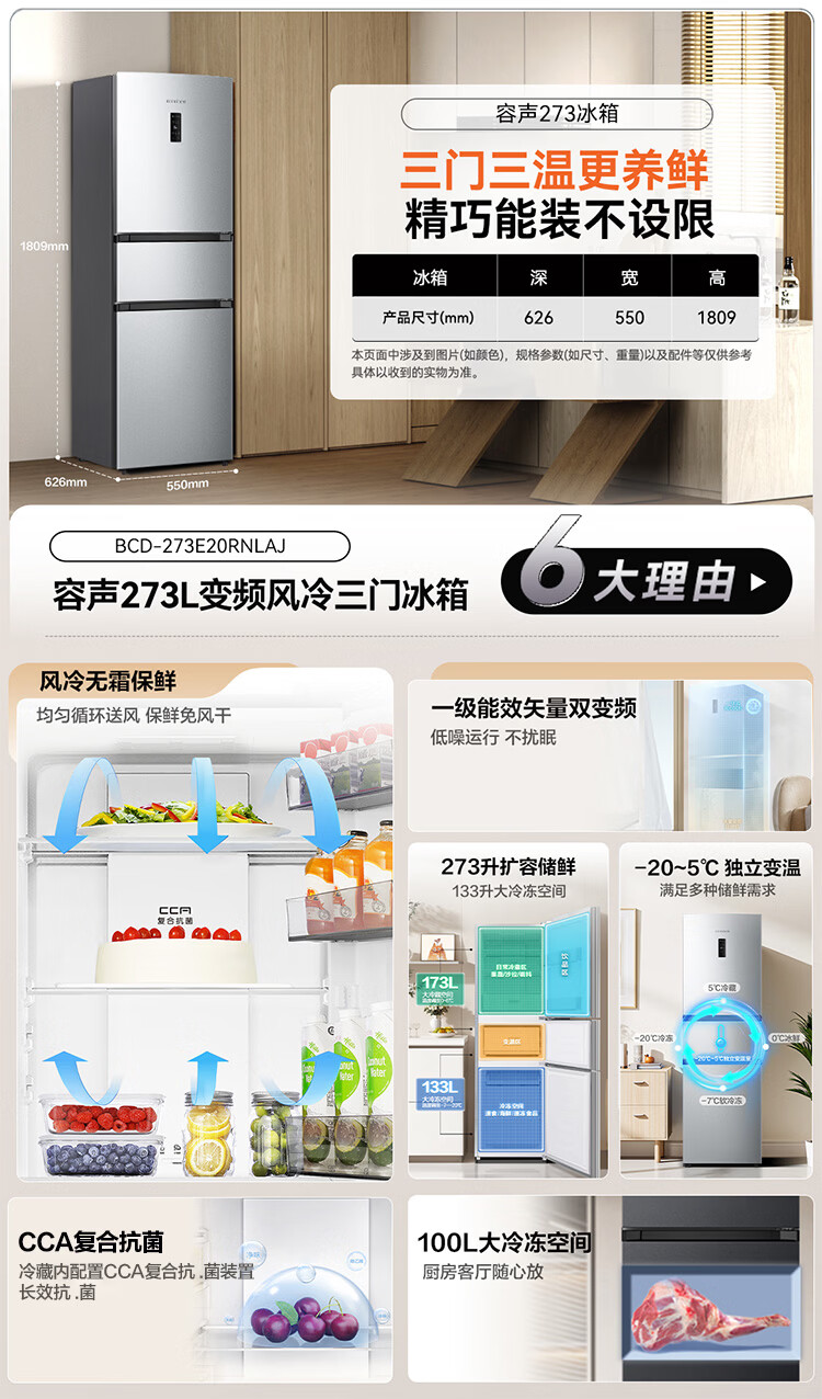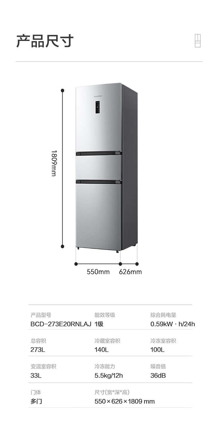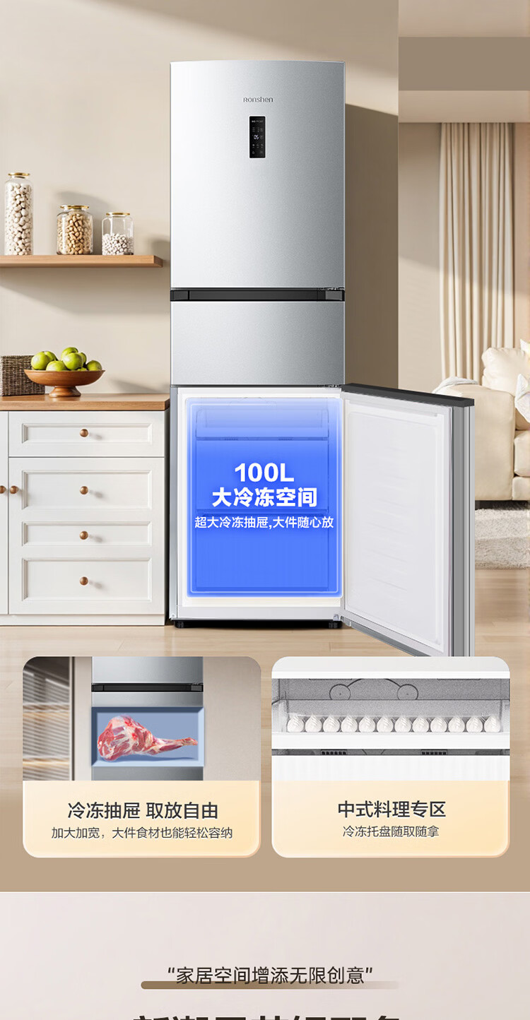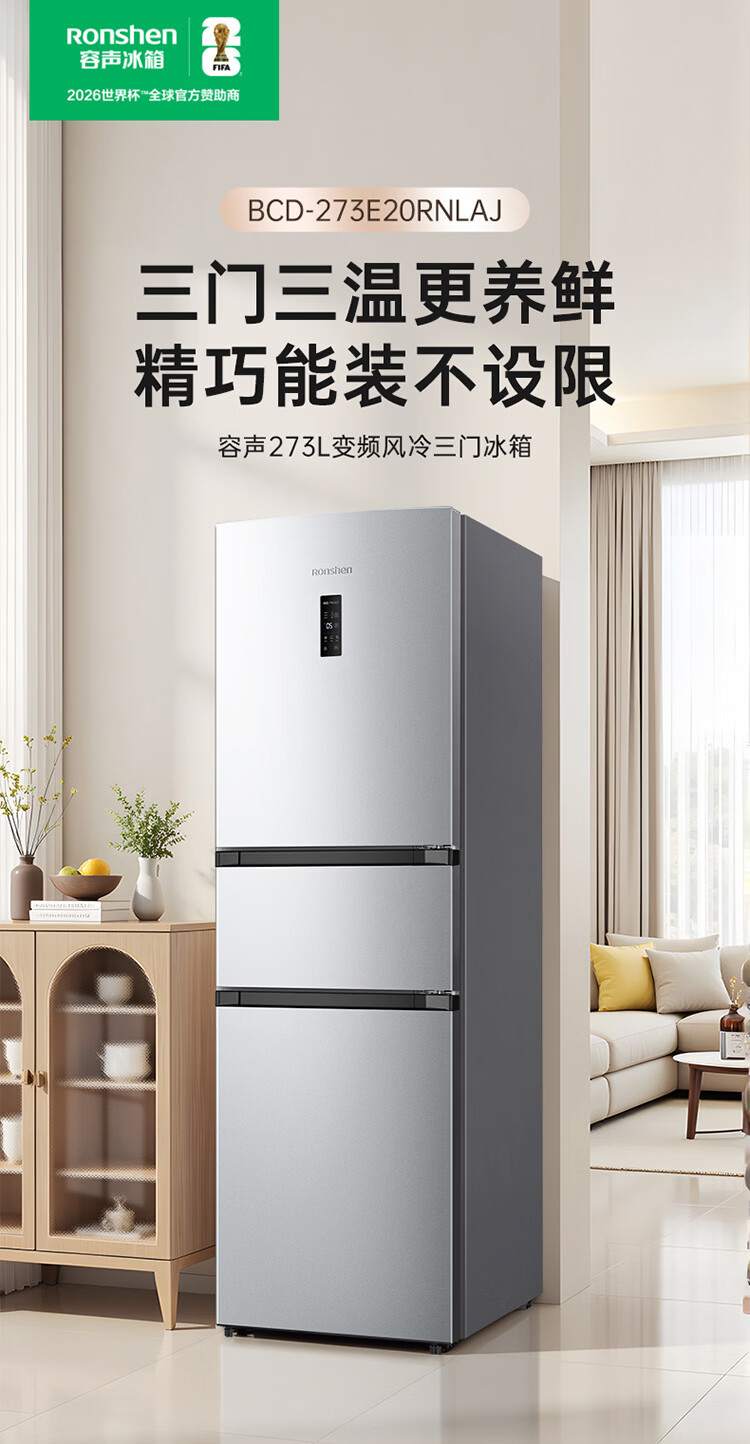 容声273升一级能效三门三开门家用冰箱小型出租房变频节能风冷无霜BCD-273E20RNLAJ BCD-273E20RNLAJ