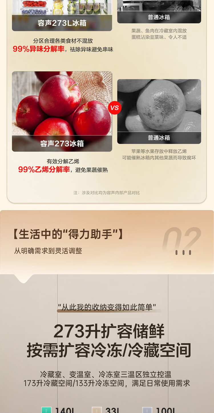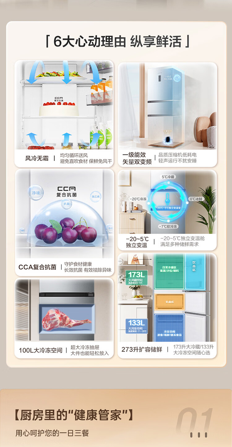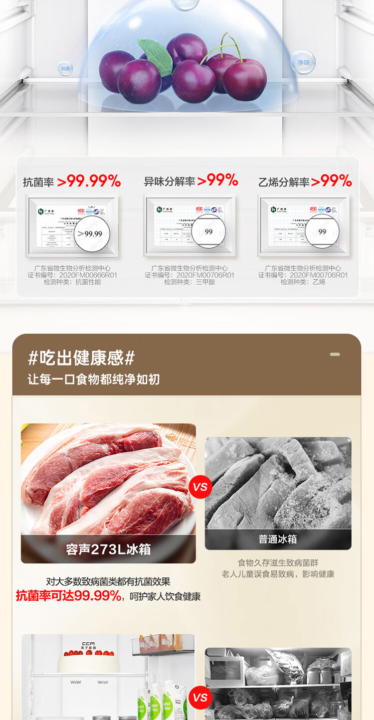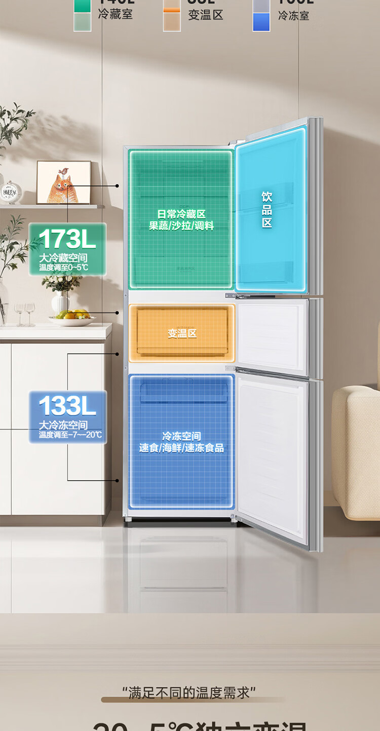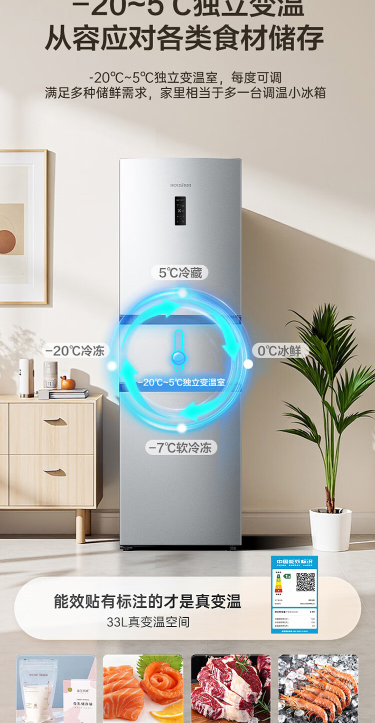 容声273升一级能效三门三开门家用冰箱小型出租房变频节能风冷无霜BCD-273E20RNLAJ BCD-273E20RNLAJ