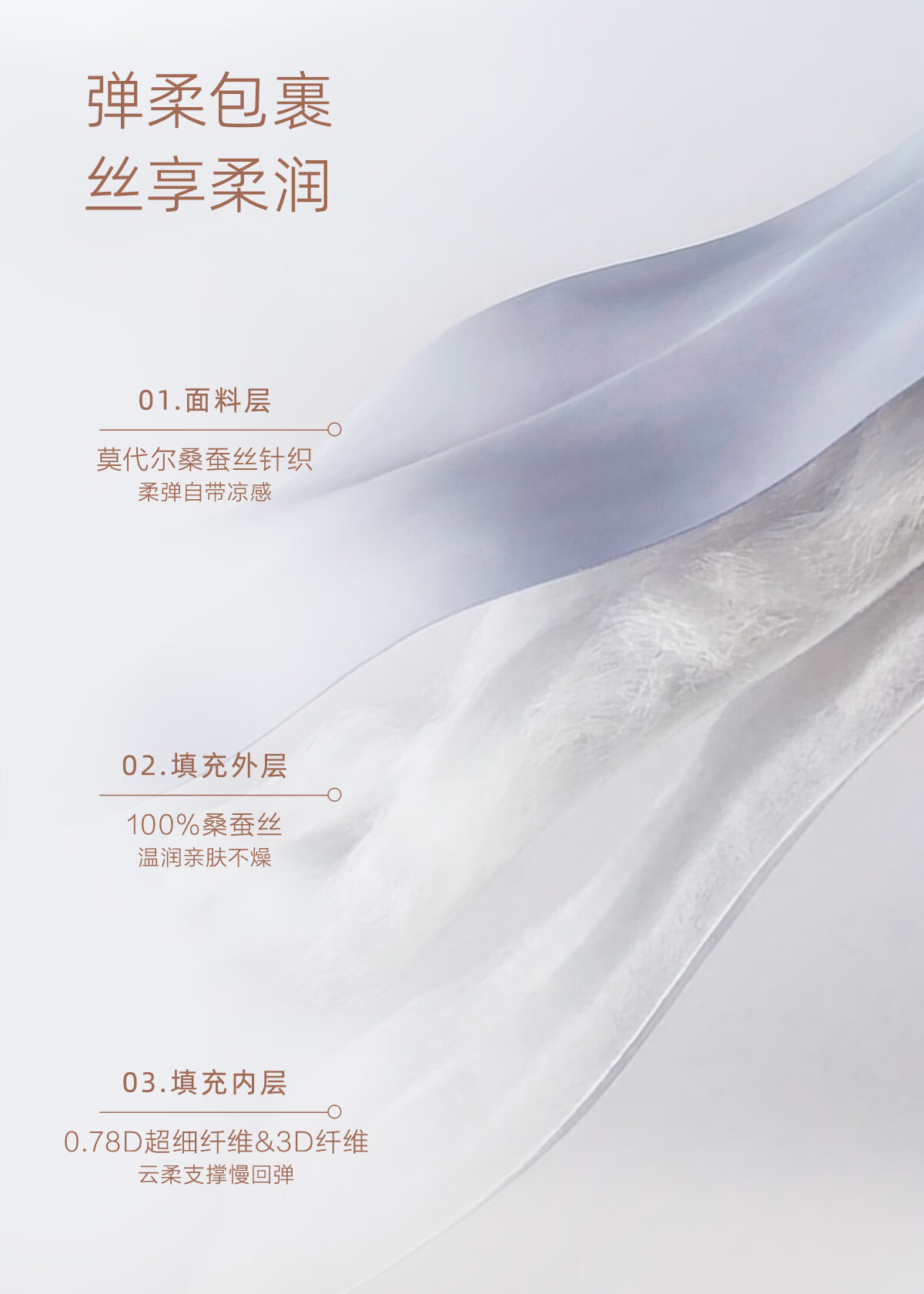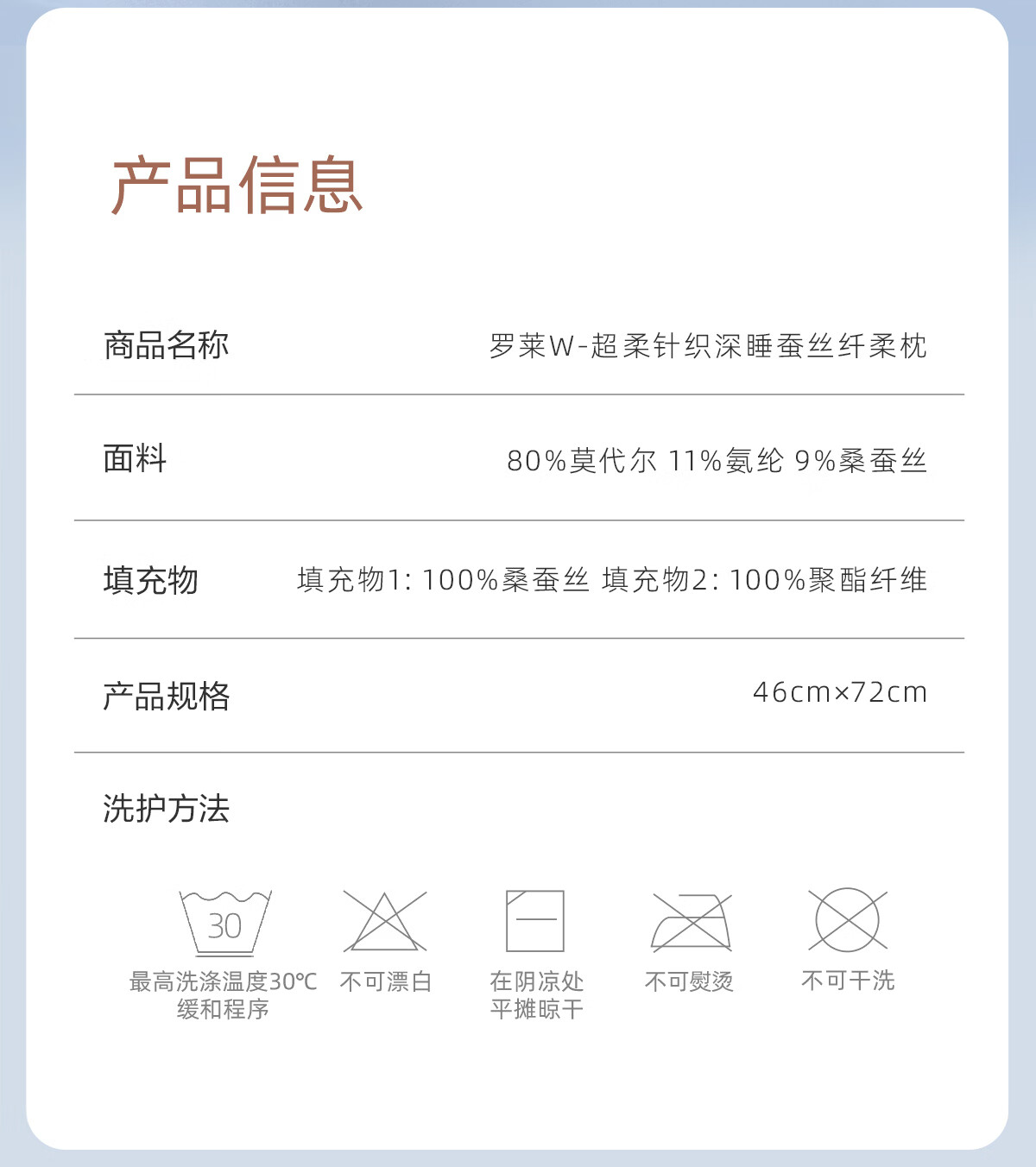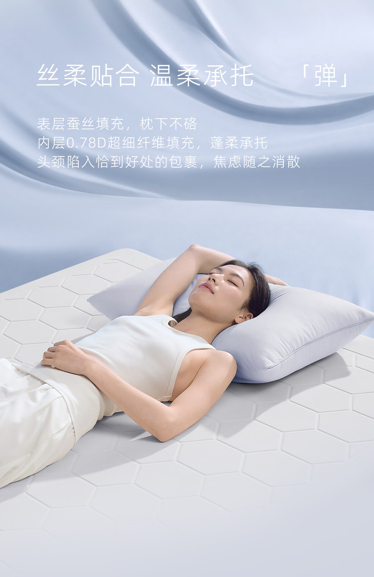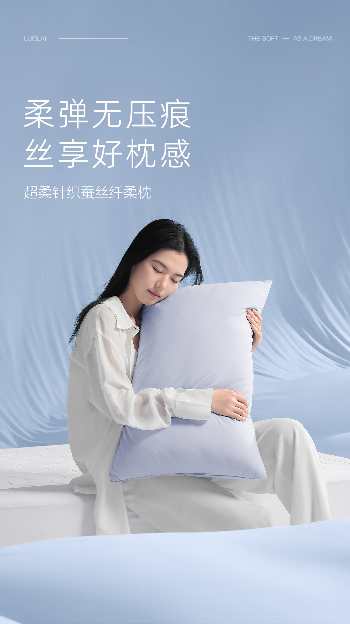 罗莱家纺超柔针织深睡蚕丝纤柔枕头枕芯护颈椎枕吸湿速干 蓝色 单只 46cm*72cm