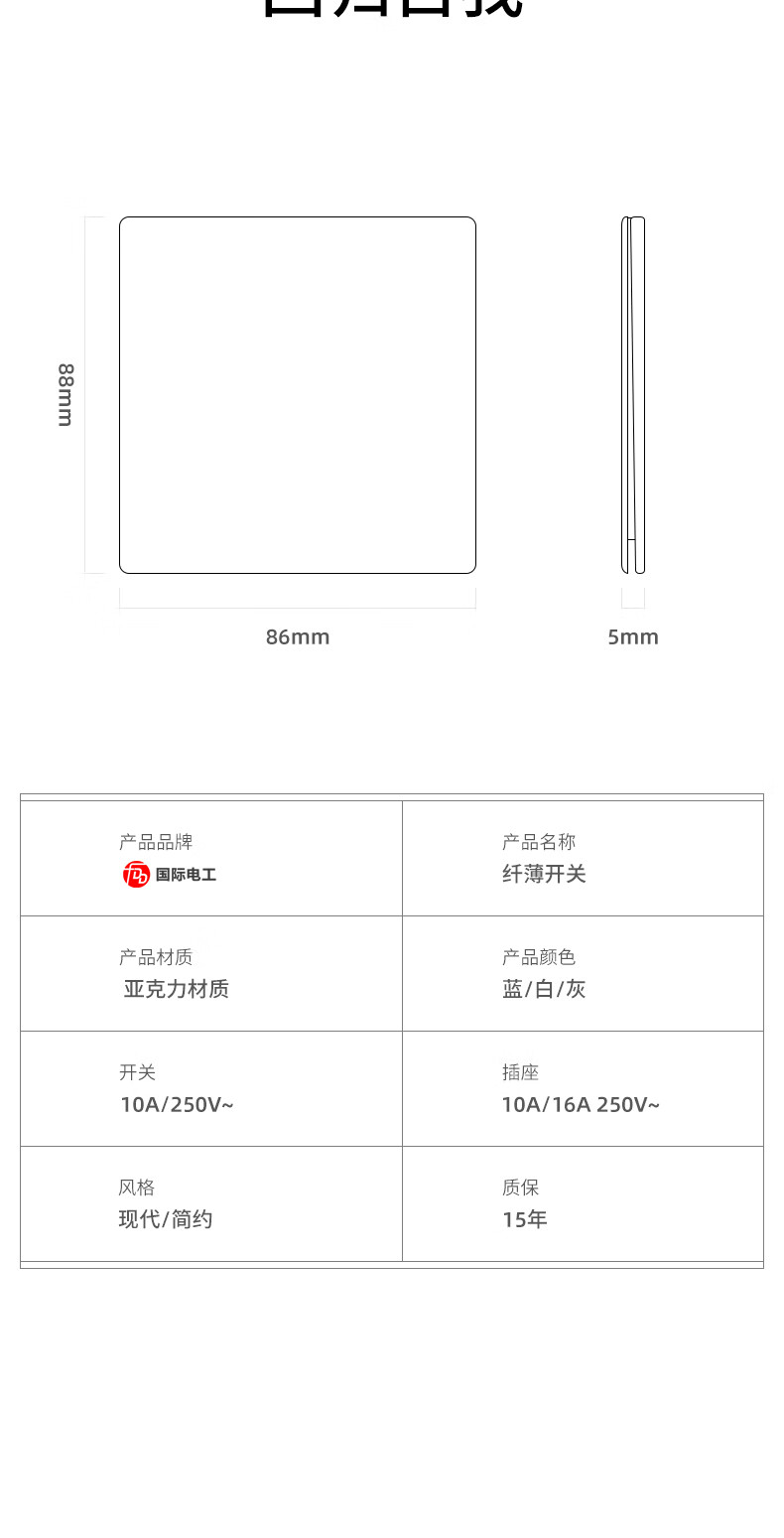 国际电工86型暗装开关插座面板白色超薄有机玻璃亚克力电源单双控二三插 五孔插座