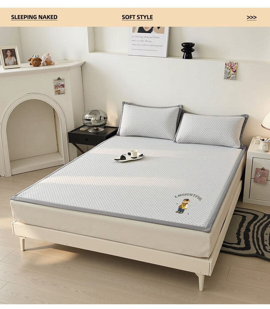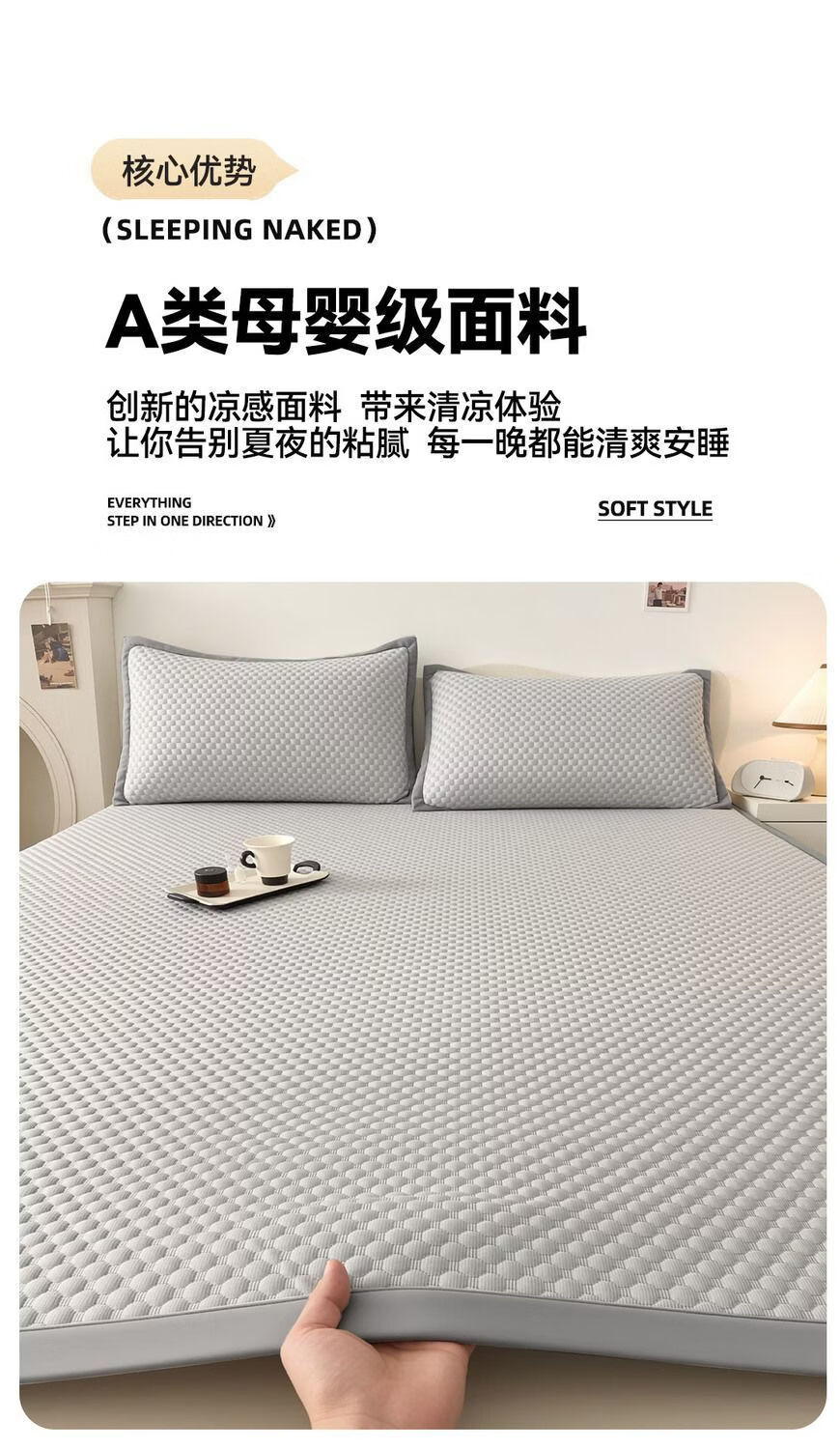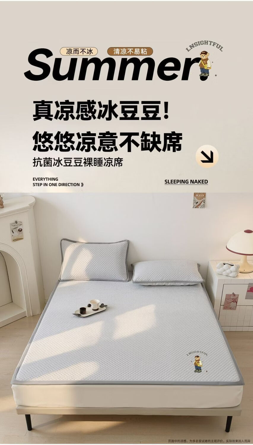 高睿冰丝凉席1.8x2米A类母婴席子1.5x2米冰豆豆夏季床单床笠2026新款 雾离灰【整夜凉感-A类母婴面料】 180*200cm【冰豆豆单凉席】