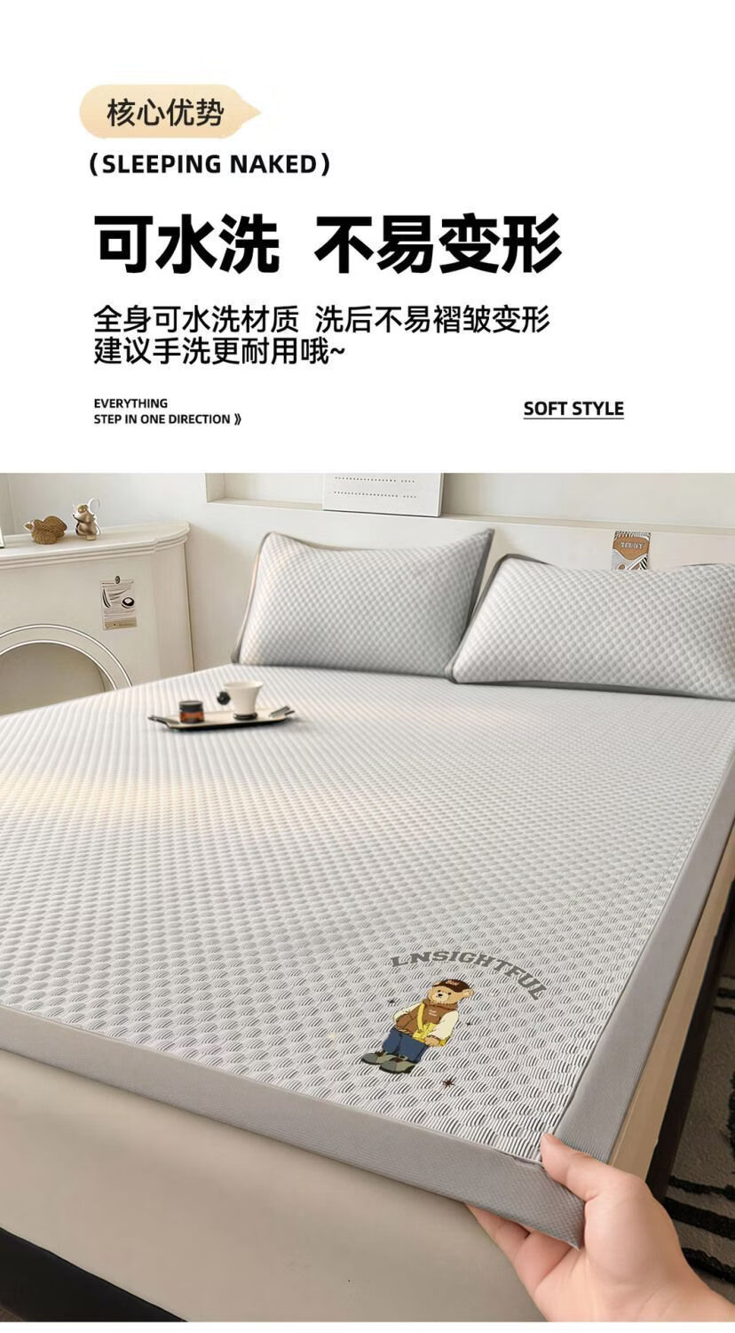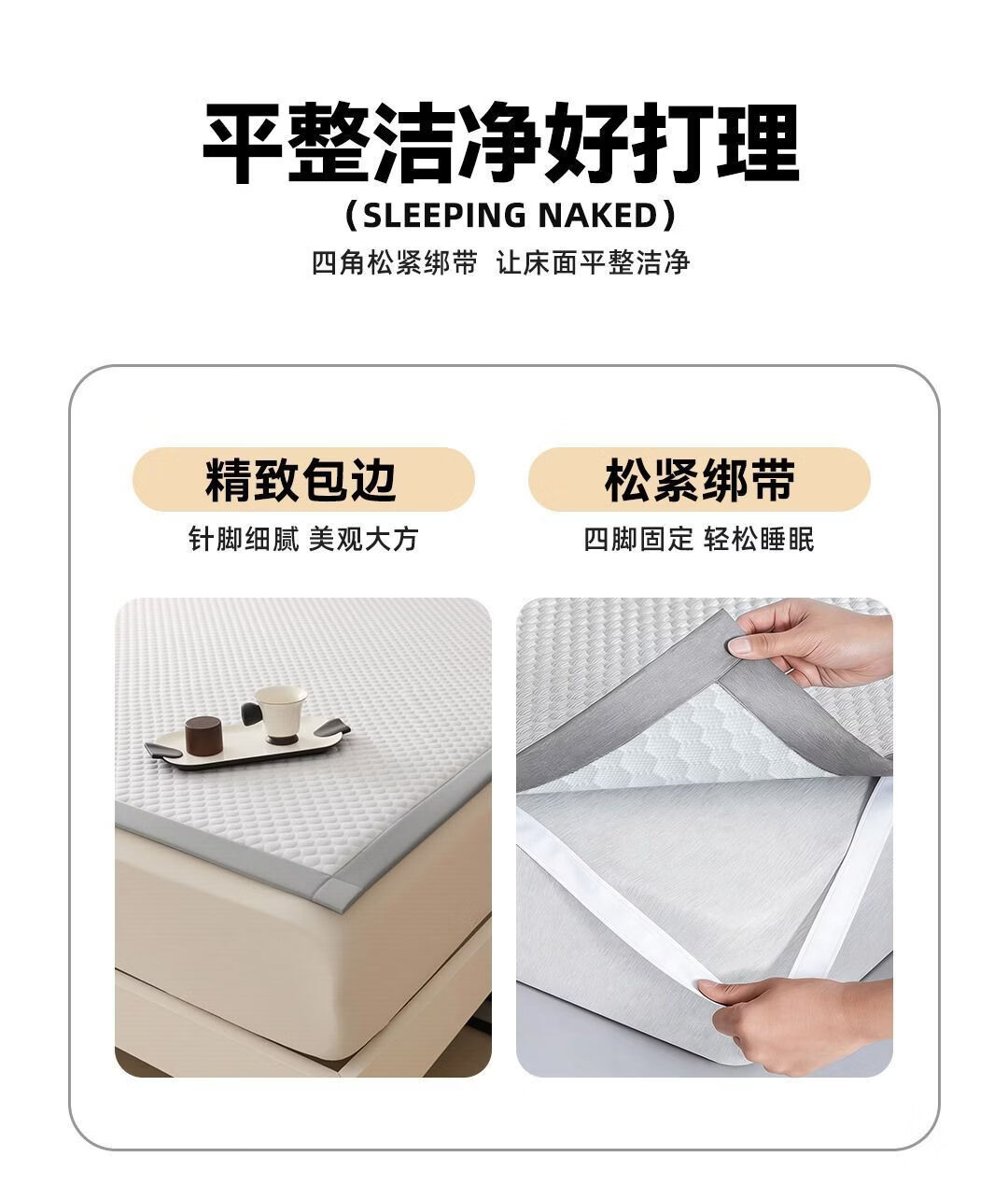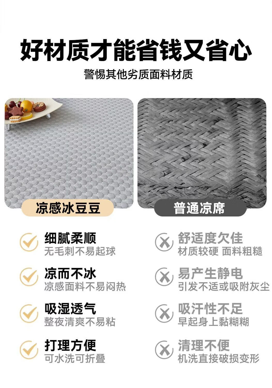 高睿冰丝凉席1.8x2米A类母婴席子1.5x2米冰豆豆夏季床单床笠2026新款 雾离灰【整夜凉感-A类母婴面料】 180*200cm【冰豆豆单凉席】