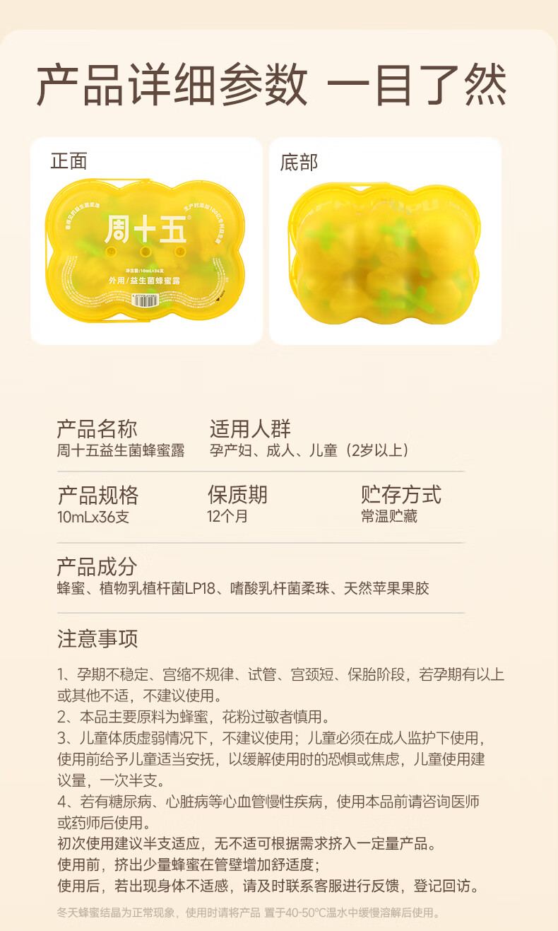 周十五益生菌蜂蜜露孕妇开塞蜜露待产包用专利软管哺乳产后月子护理蜜栓