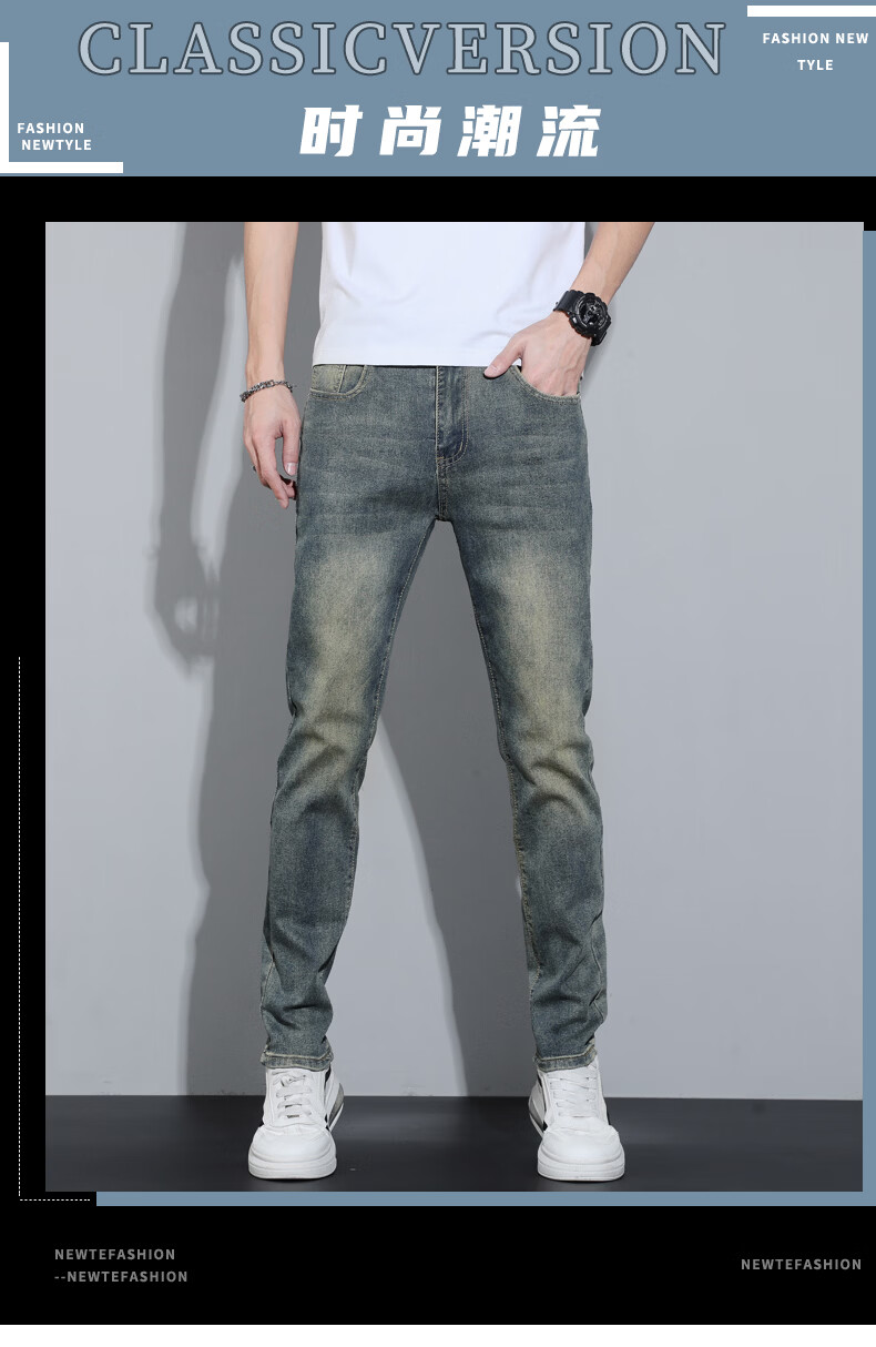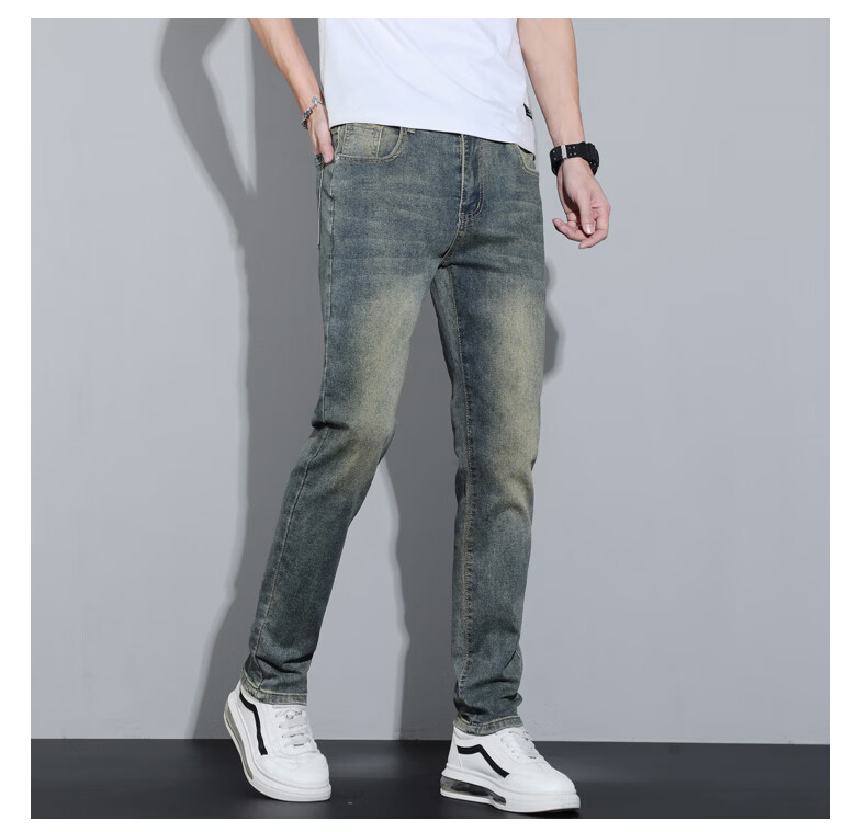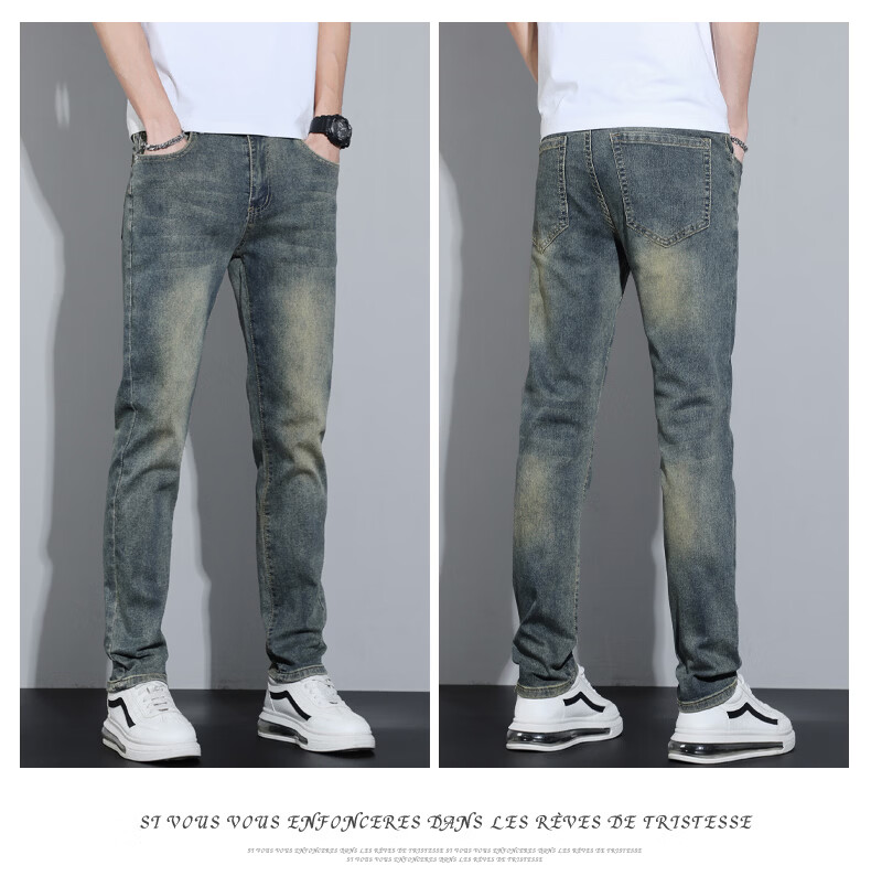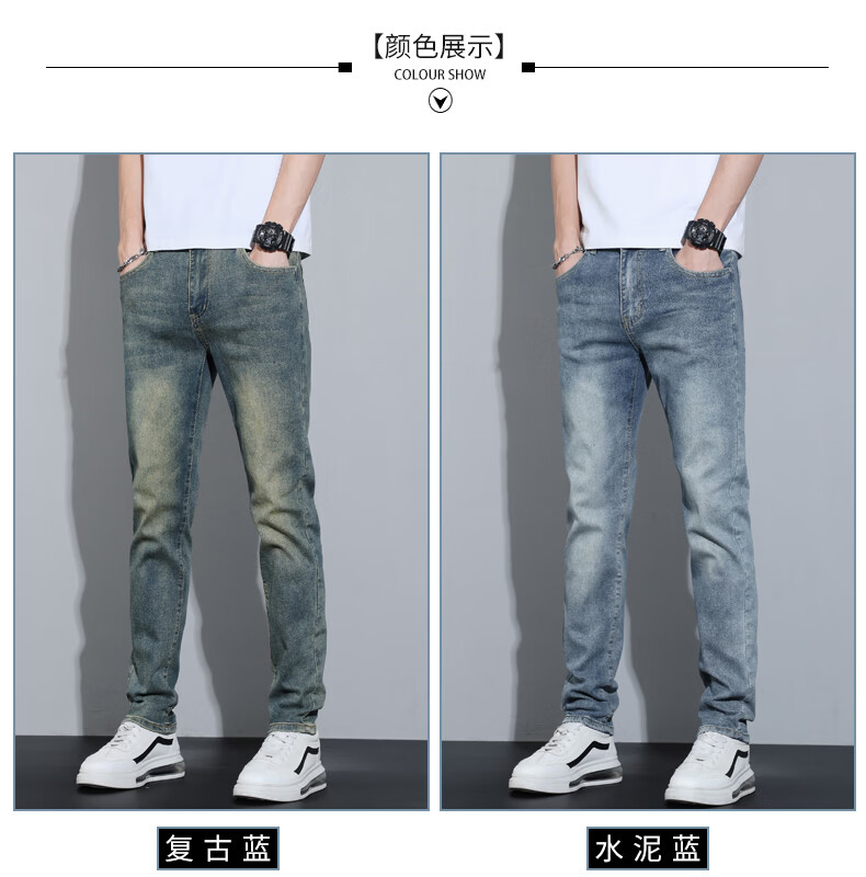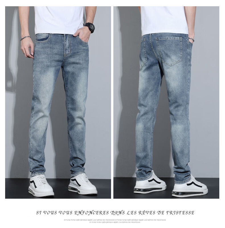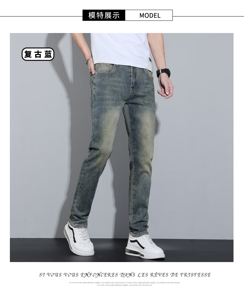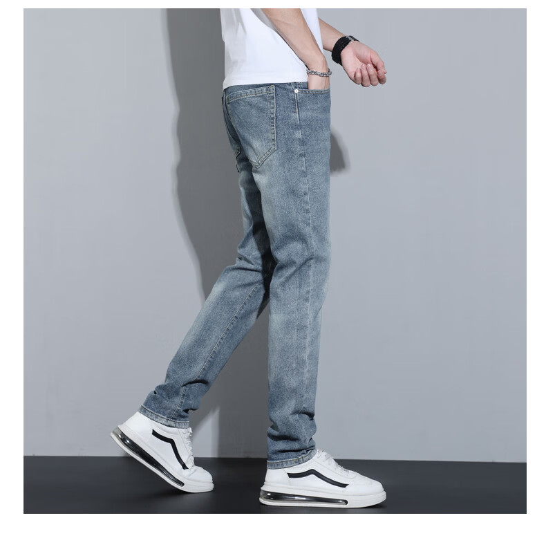 真维斯2026新款美式复古薄款牛仔裤男士修身小脚夏季弹力休闲直筒长裤子 复古蓝 28