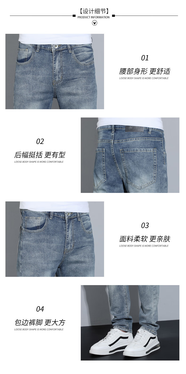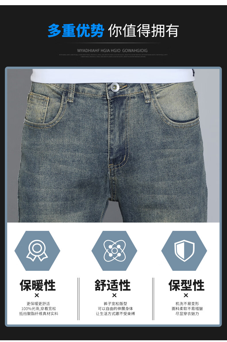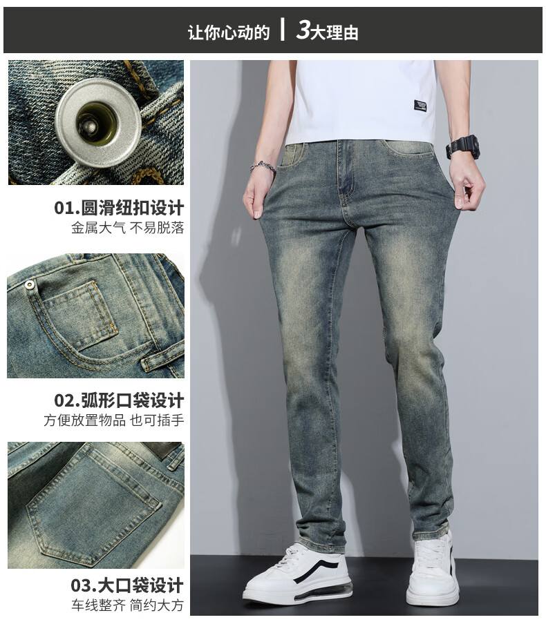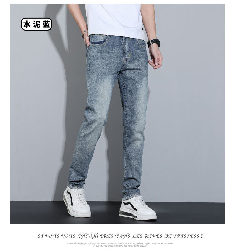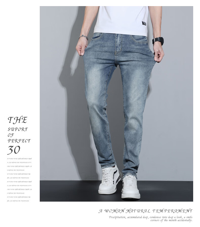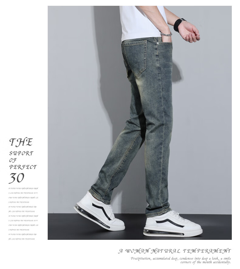 真维斯2026新款美式复古薄款牛仔裤男士修身小脚夏季弹力休闲直筒长裤子 复古蓝 28