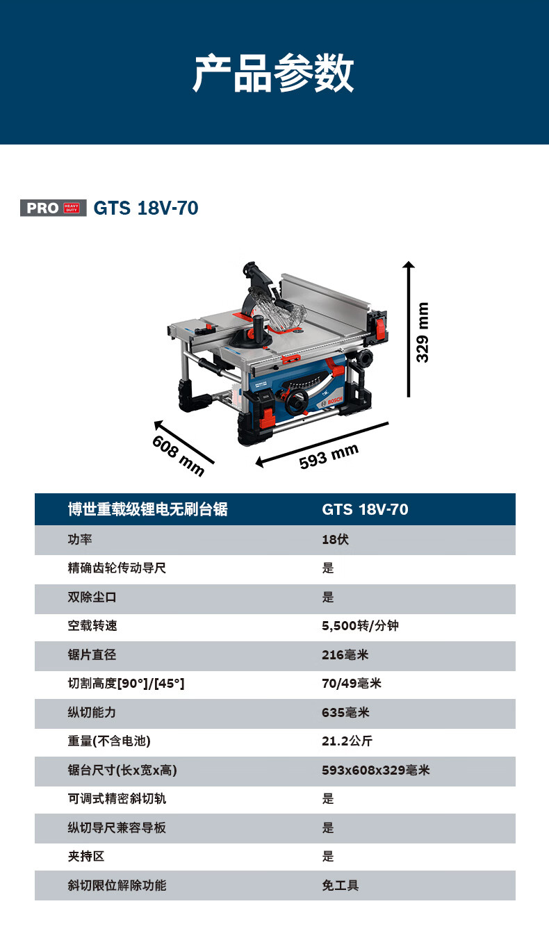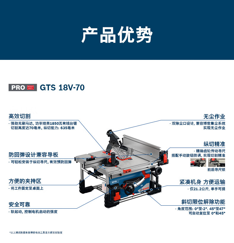 博世(BOSCH)GTS 18V-70重载级锂电无刷台锯专业木工锯台式切割机锂电锯伐木锯 官方标配(不含电池)