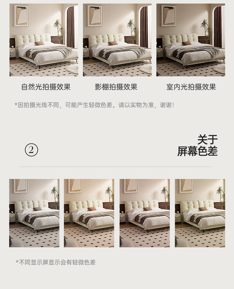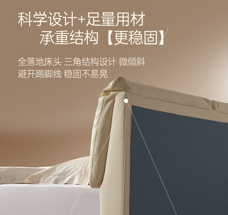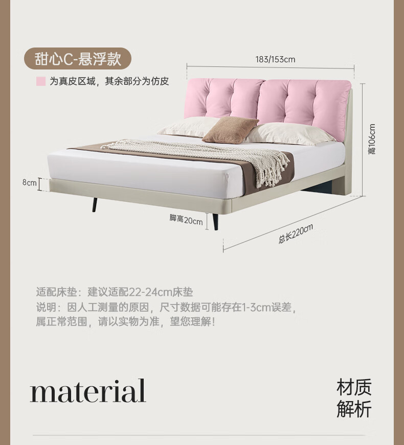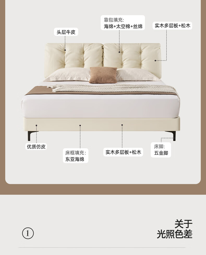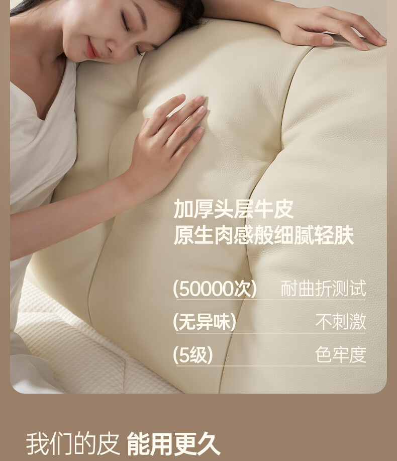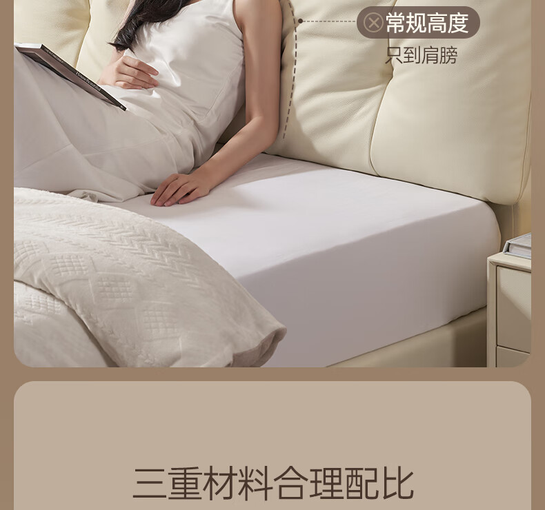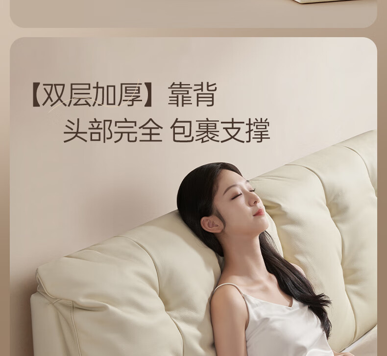 CBD家居现代简约真皮软包床双人主卧大床奶油风婚床头层牛皮甜心悬浮 甜心悬浮-奶油白单床 卷帘排骨架 1500*2000