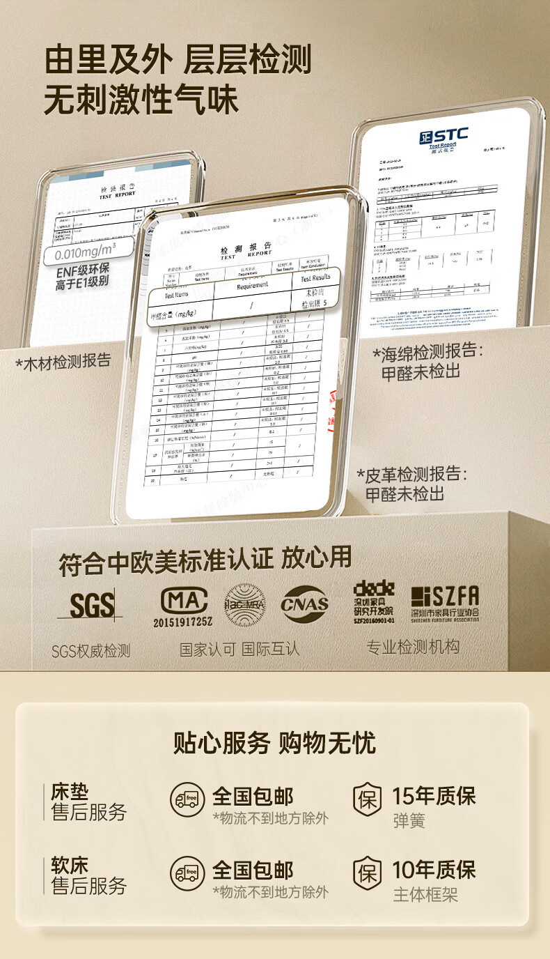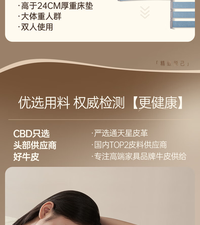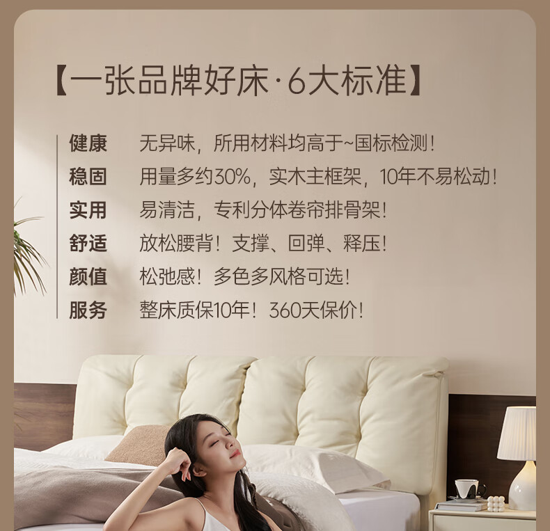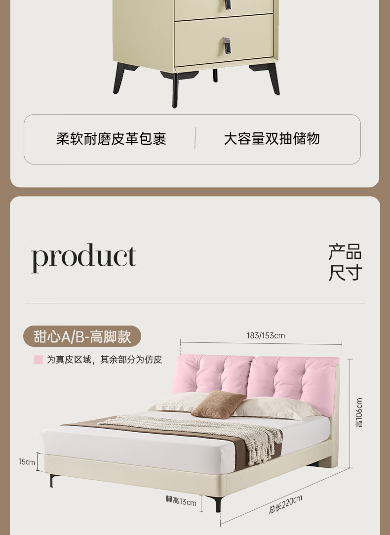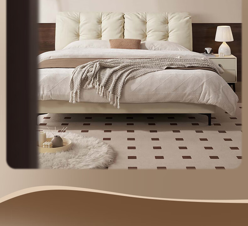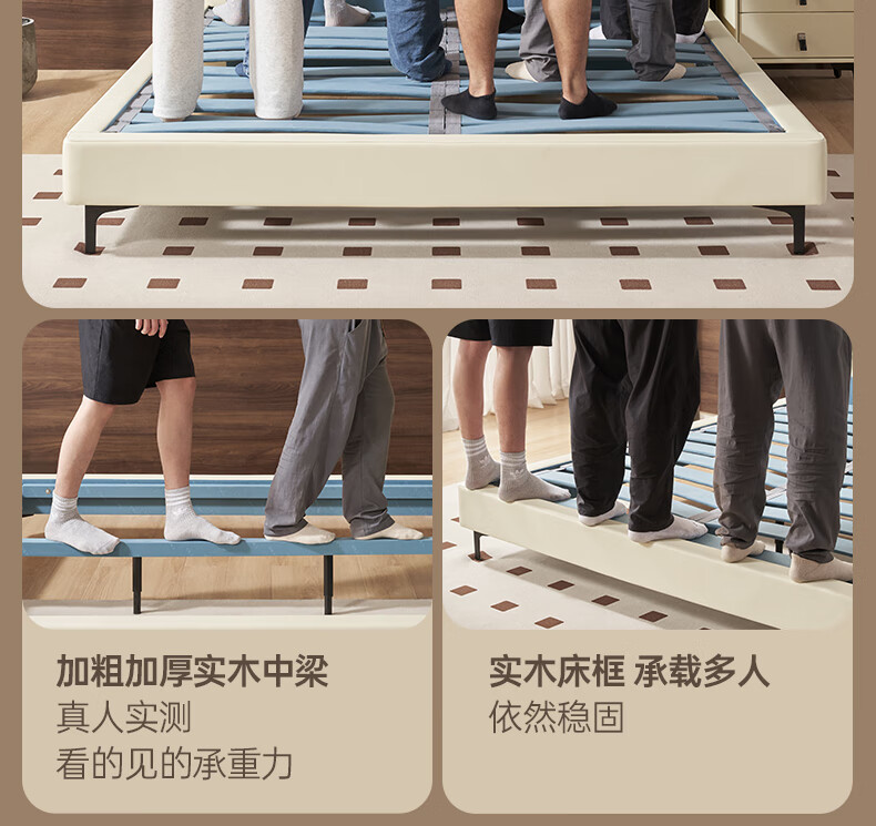 CBD家居现代简约真皮软包床双人主卧大床奶油风婚床头层牛皮甜心悬浮 甜心悬浮-奶油白单床 卷帘排骨架 1500*2000