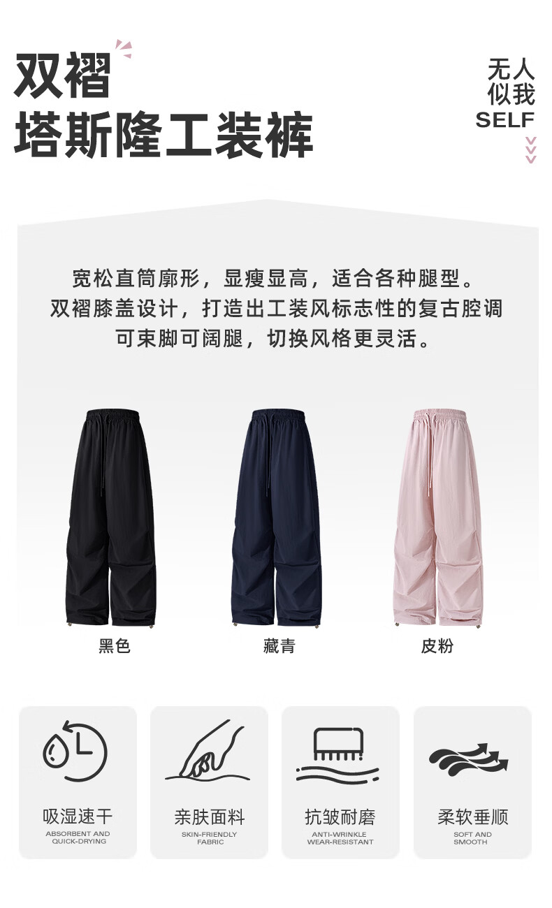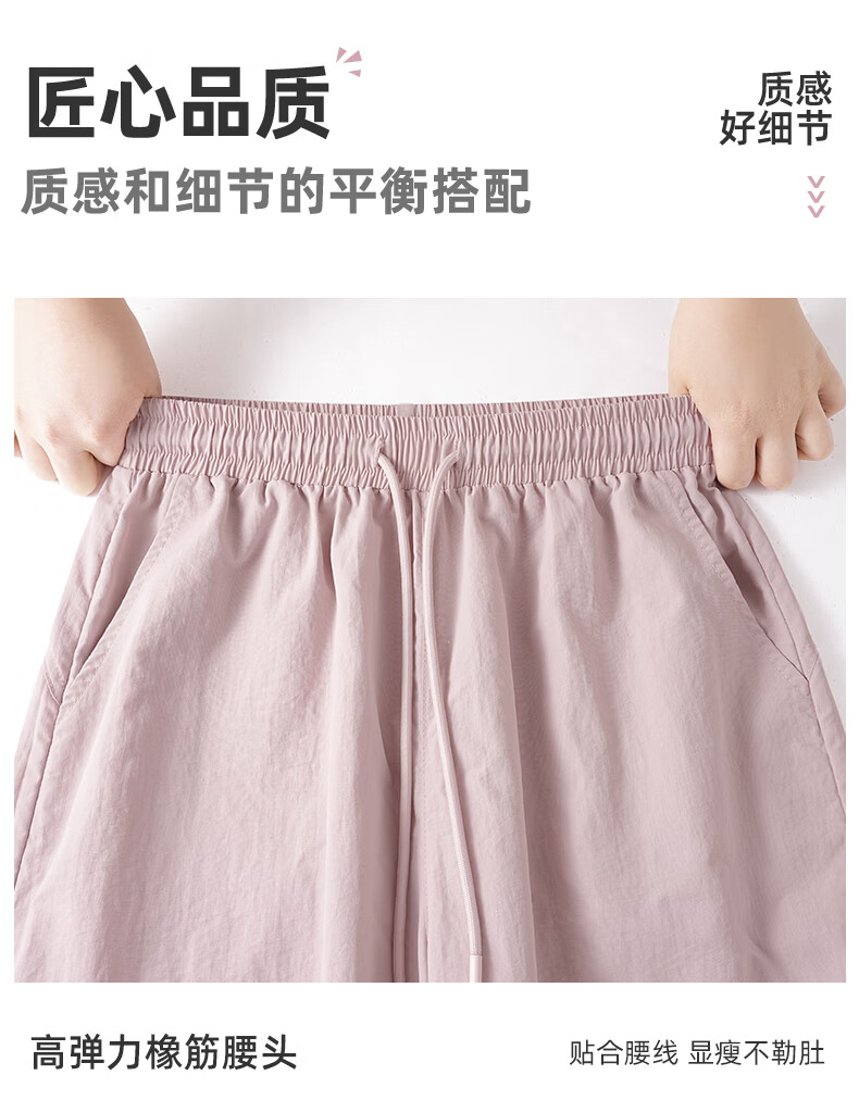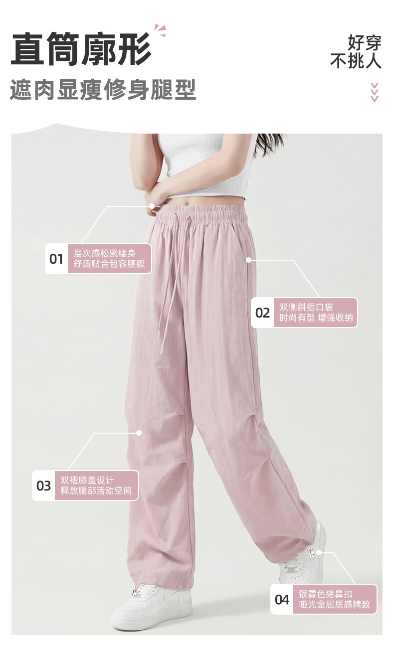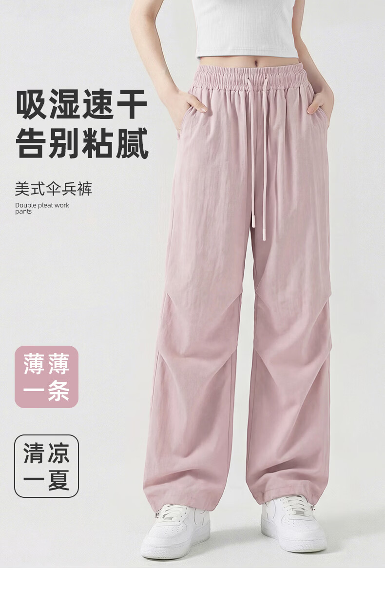 真维斯(Jeanswest)工装伞兵裤女春夏季学生休闲运动裤旅行登山冲锋裤户外阔腿速干裤 粉色 纯色 S