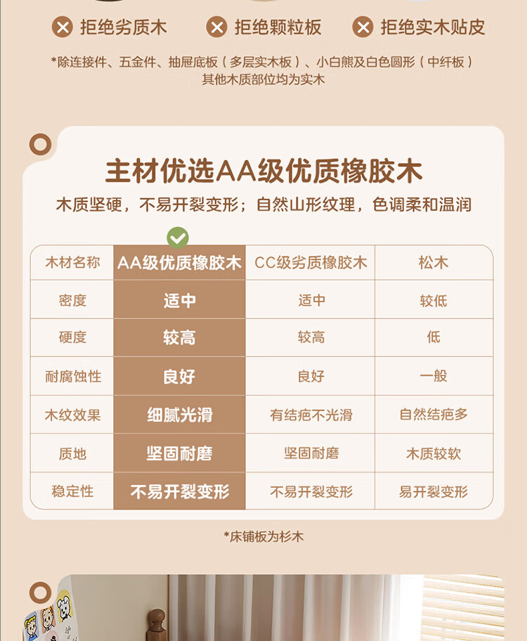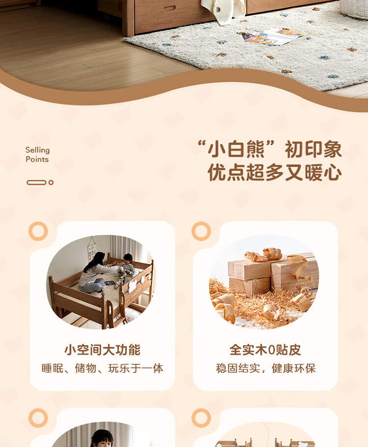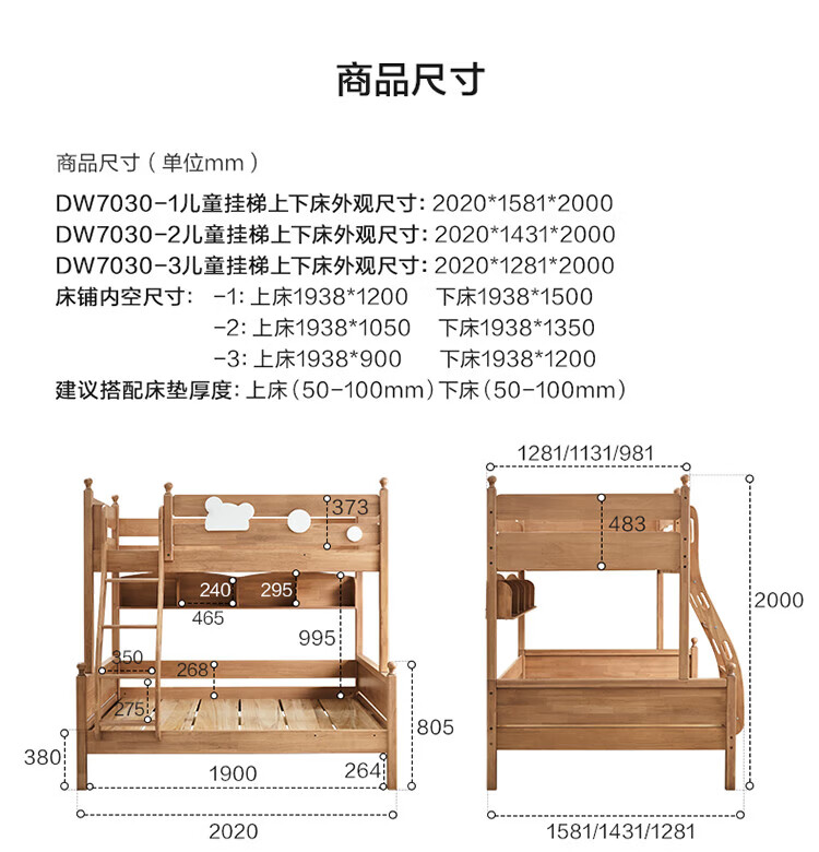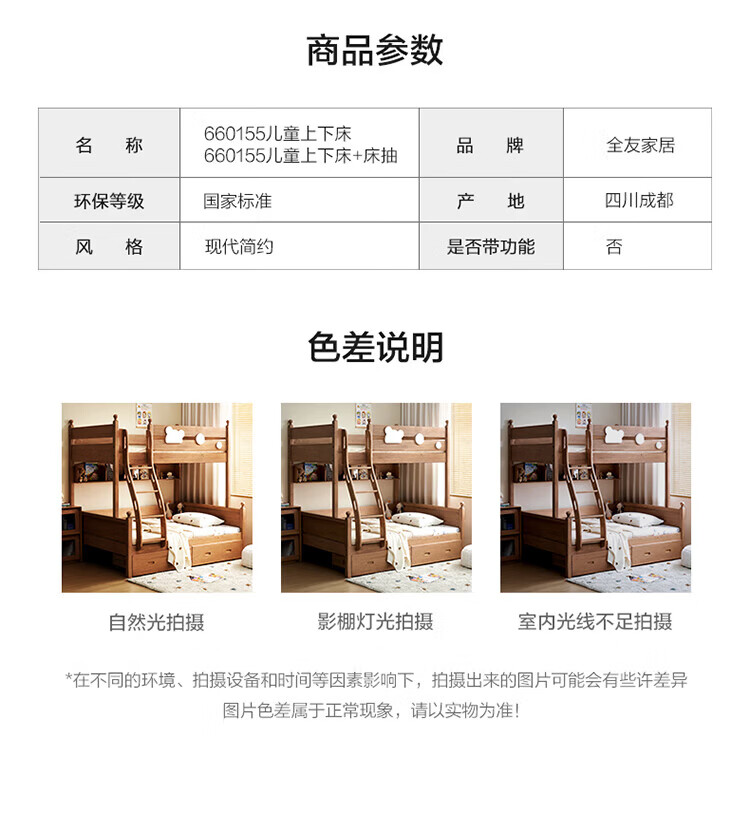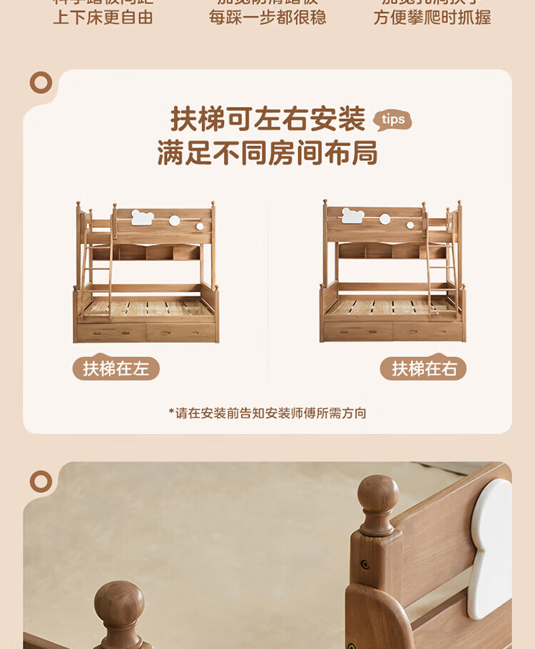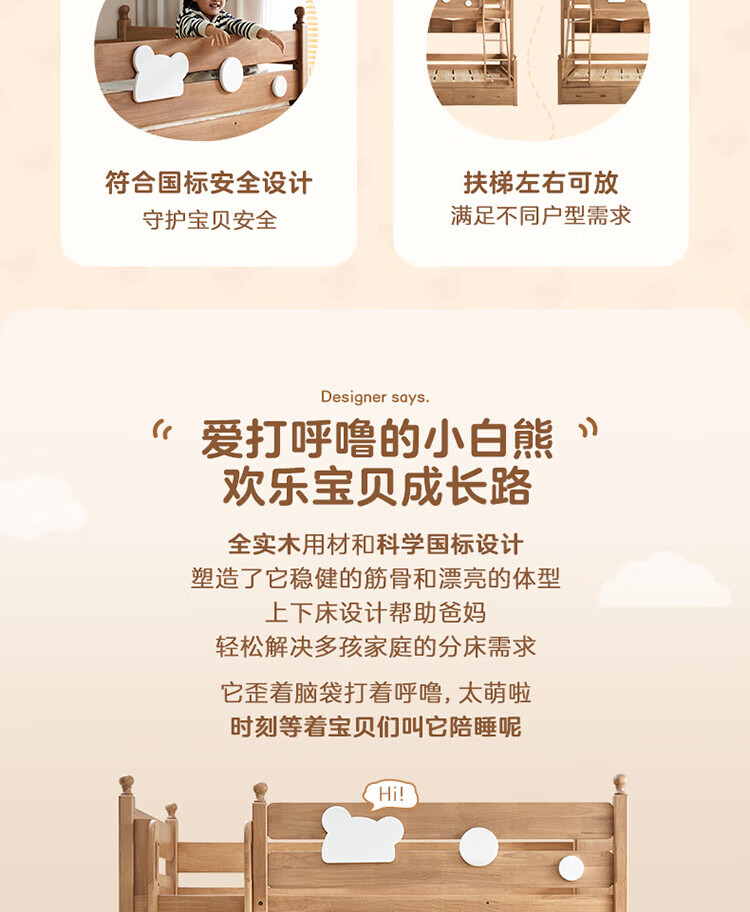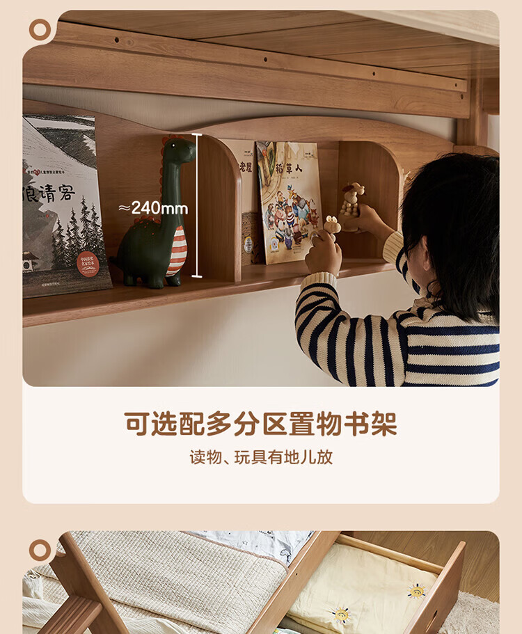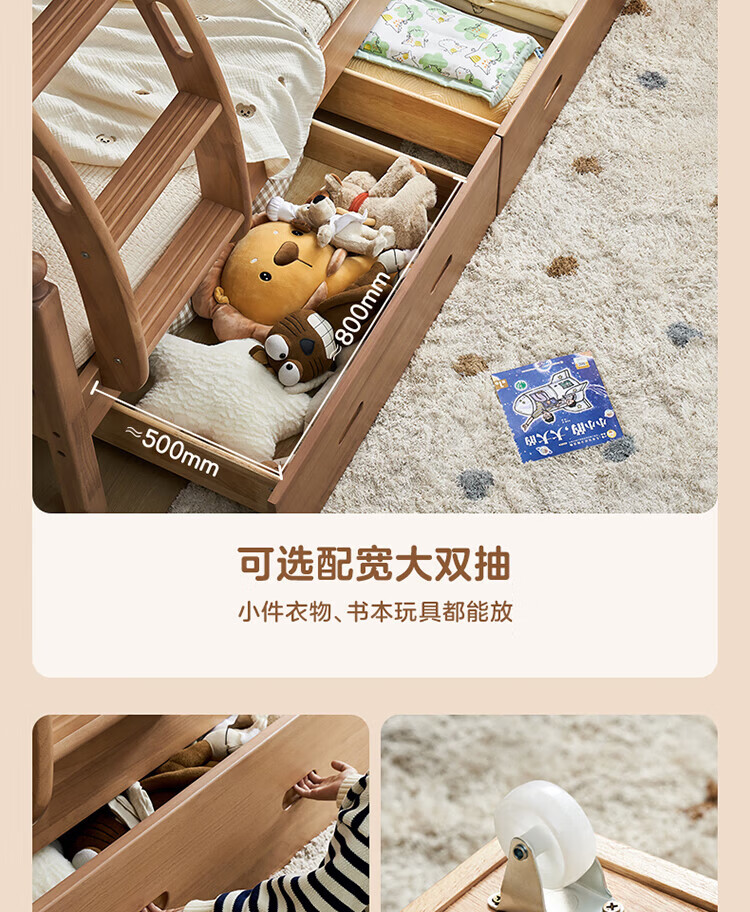 全友家居儿童上下铺全实木双层高低床带护栏男孩女孩小户型收纳储物床 橡胶木|上下床 1.35x1.9米