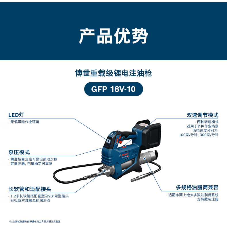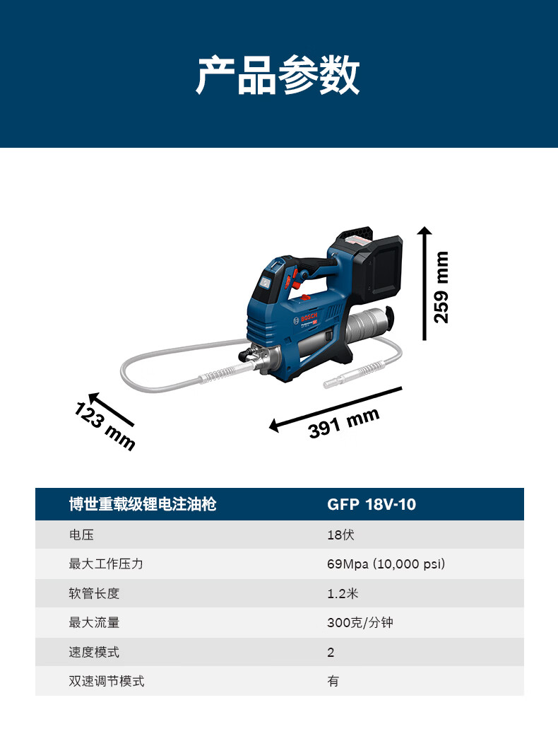 博世(BOSCH)GFP 18V-10重载级锂电注油枪电动高压工业自动注油器工程机械专用 锂电注油枪
