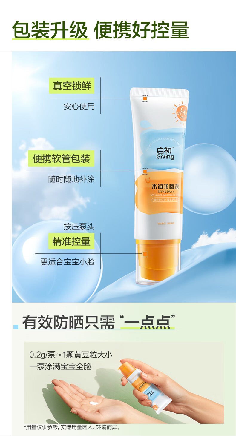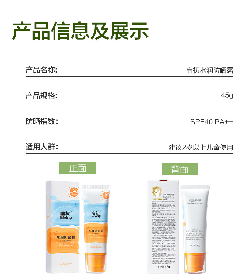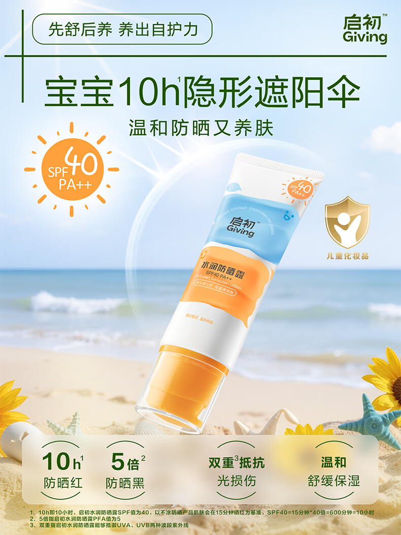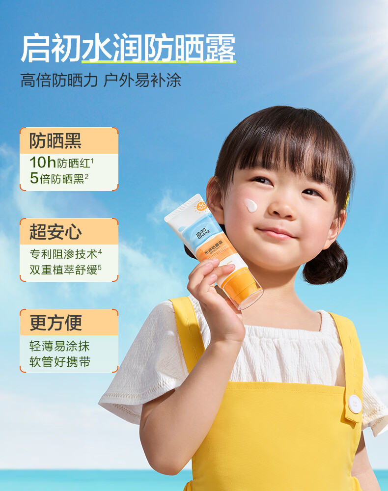 启初儿童水润防晒乳(SPF40PA++)45g宝宝防晒霜保湿舒缓温和便携护肤