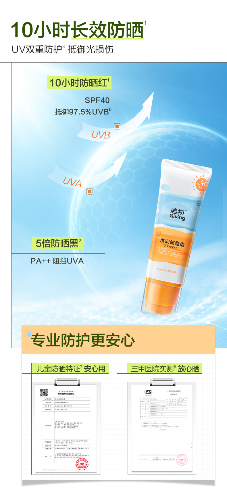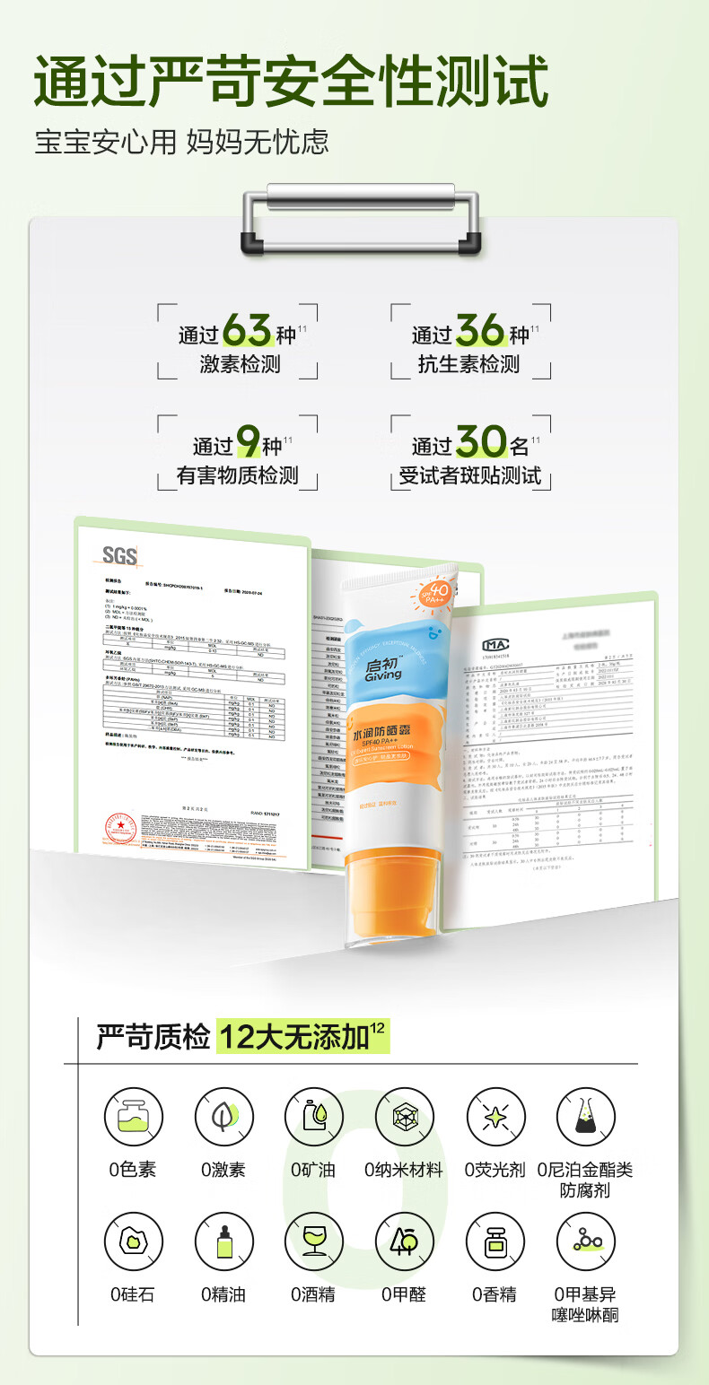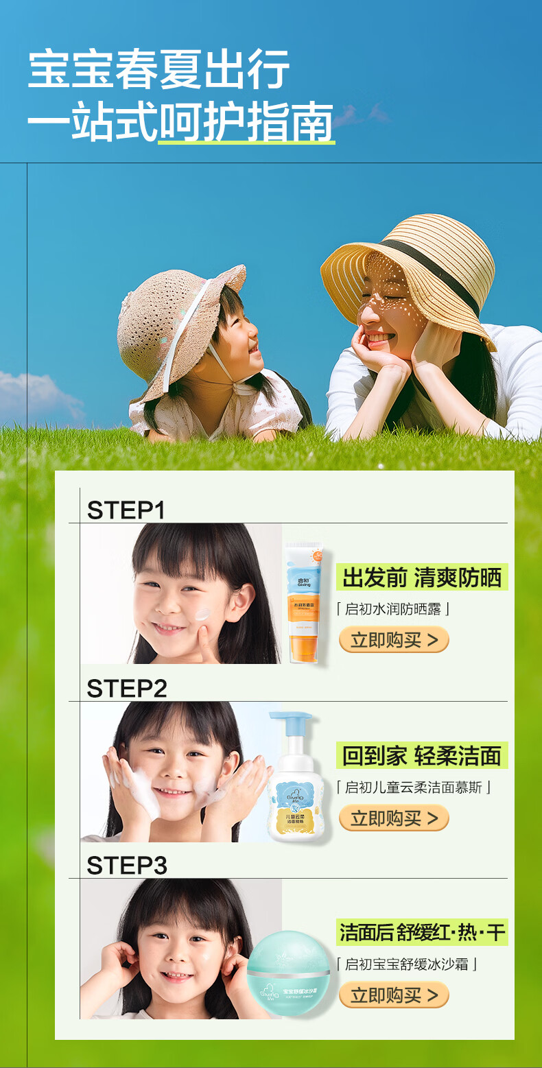 启初儿童水润防晒乳(SPF40PA++)45g宝宝防晒霜保湿舒缓温和便携护肤