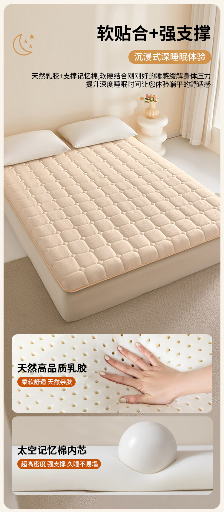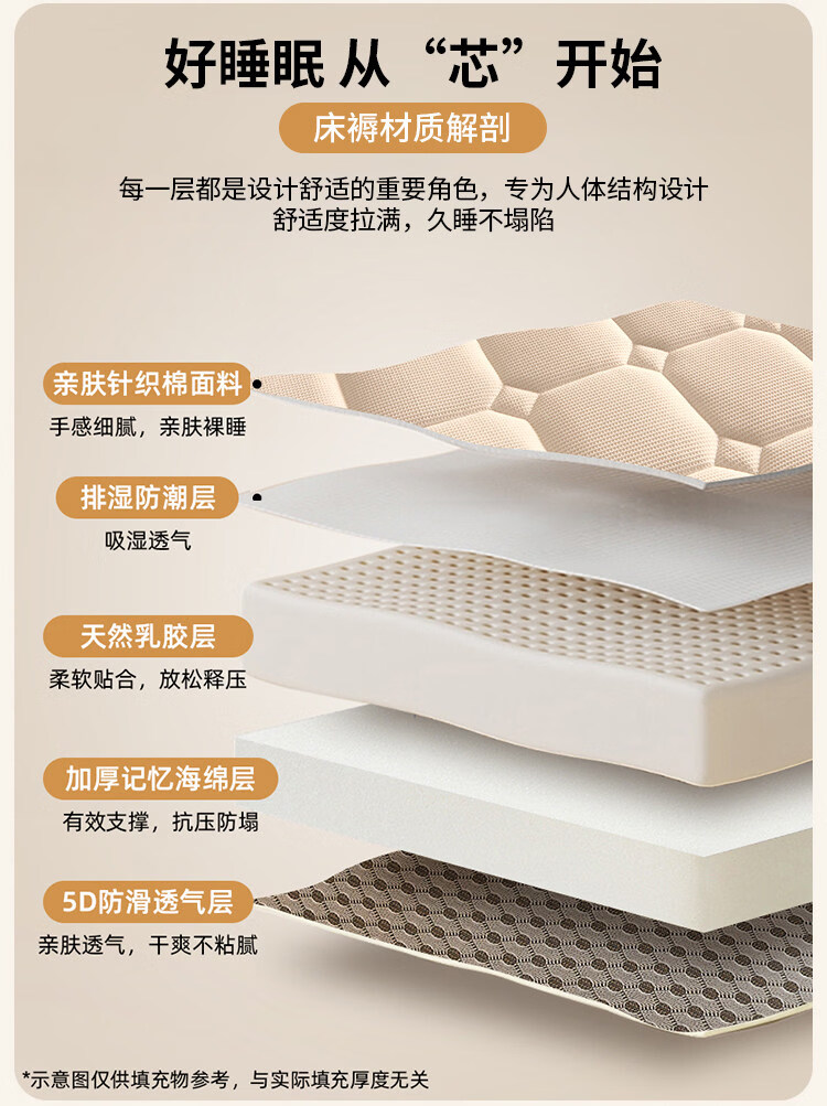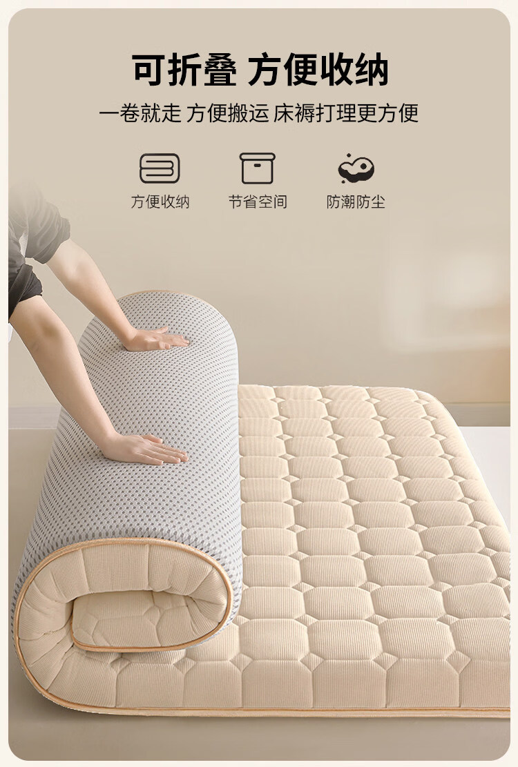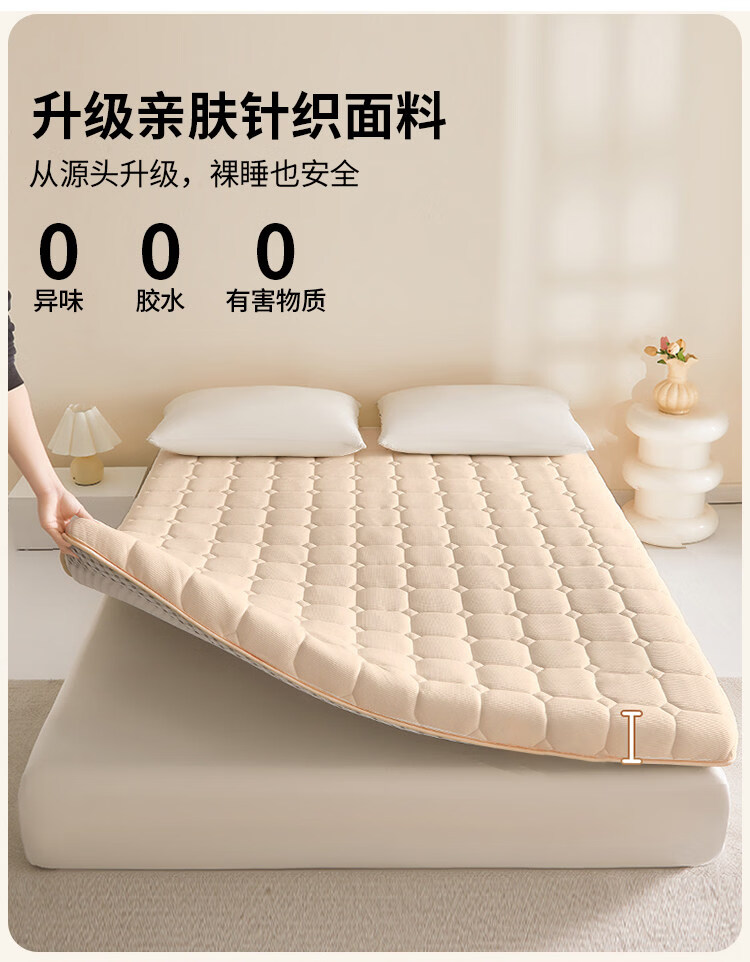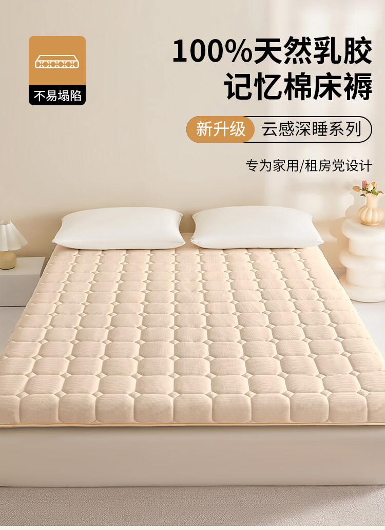 猫人(MiiOW)乳胶床垫遮盖物床褥子家用软垫加厚榻榻米垫子单双人打地铺睡垫子 华夫格香槟色-约5cm厚 80x190cm【现货速发 塌陷包赔】