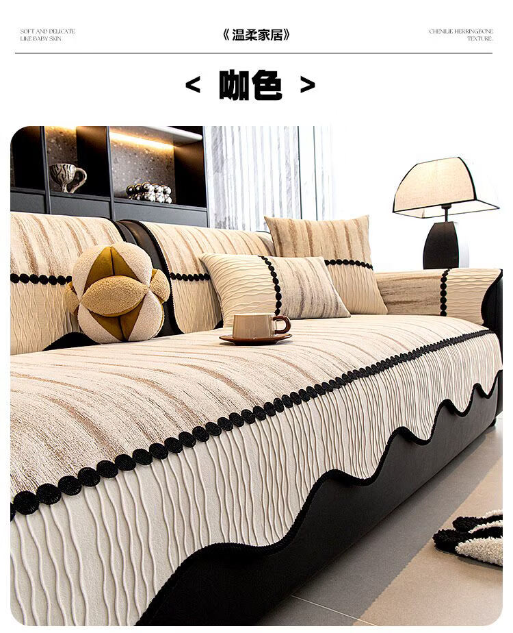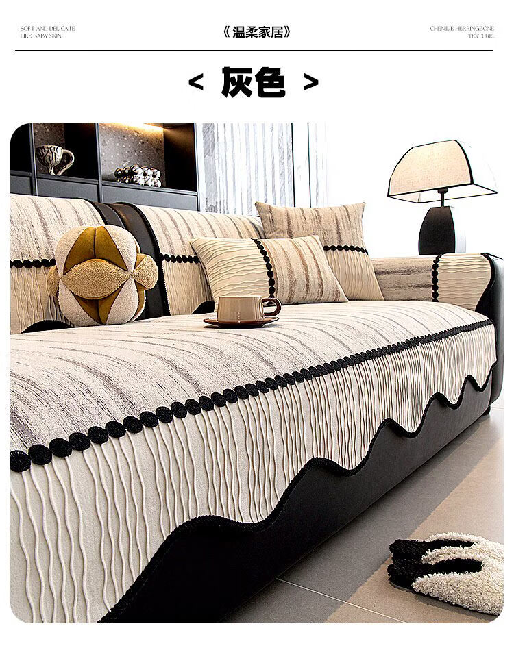 正圣沙发垫四季通用防滑2026年新款轻奢高级感雪尼尔沙发专用坐垫 异形沐纹-深灰色 70cm*70cm (可做扶手)