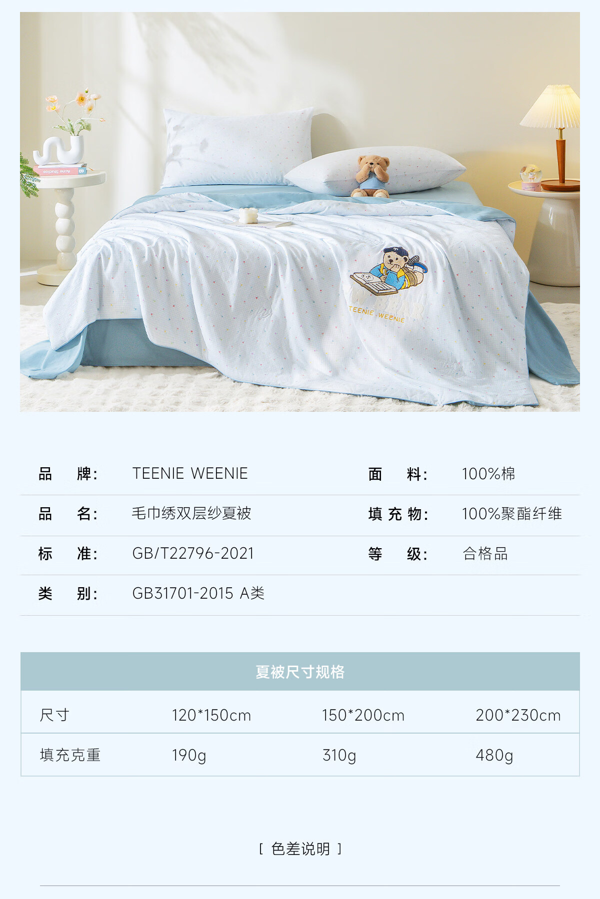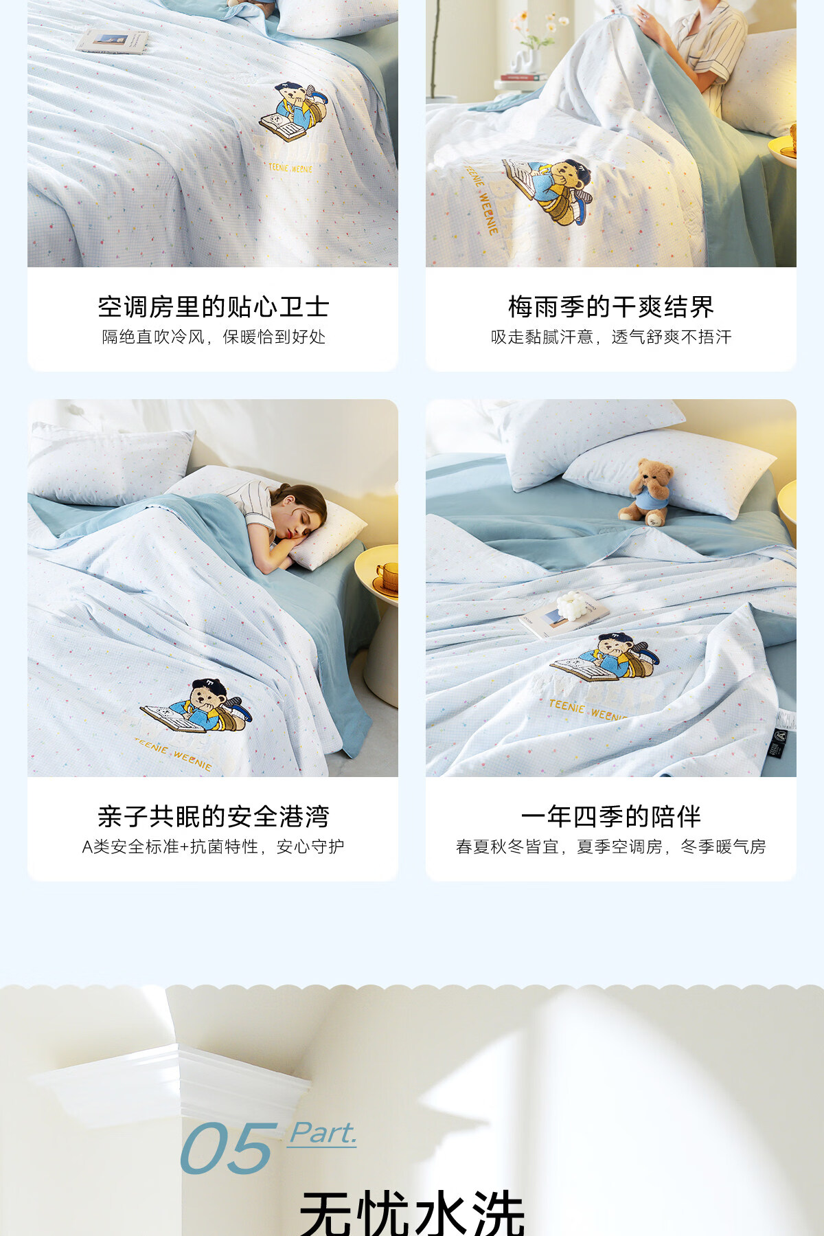 Teenie Weenie小熊A类全棉双层纱夏凉被纯棉空调被芯薄被子夏季可水洗 【全棉双层纱+透气干爽+持续抑菌】航海日志 儿童夏被:120x150cm