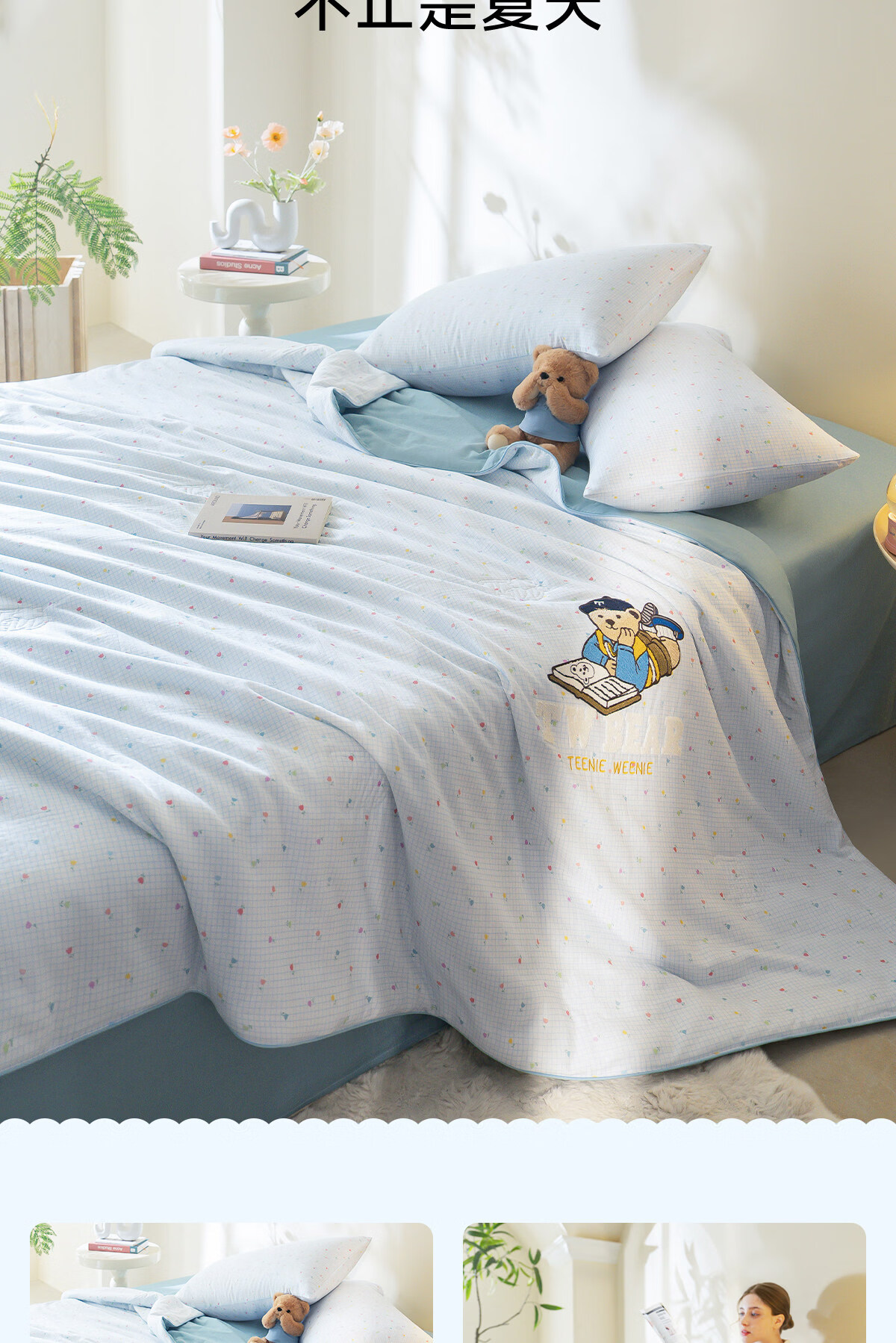 苏萱2026新款全棉纯棉华夫格夏被四件套夏季夏凉被空调被可机洗单双人 简森兰 单人夏被-150*200cm