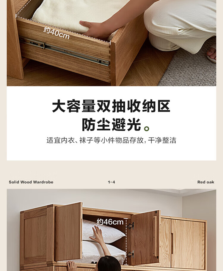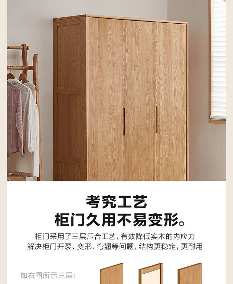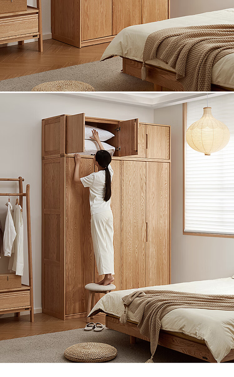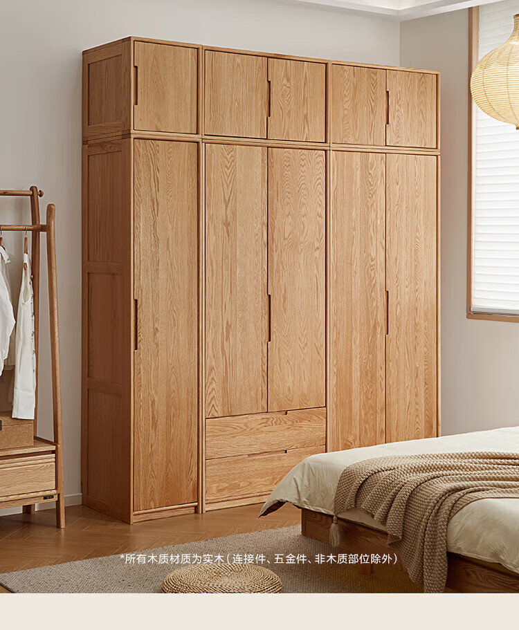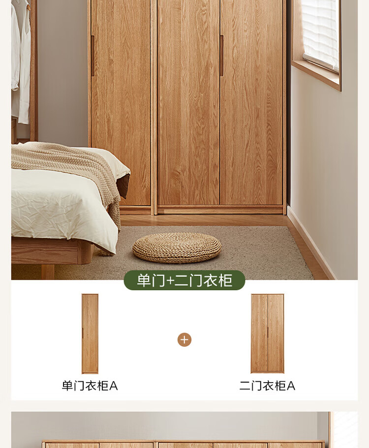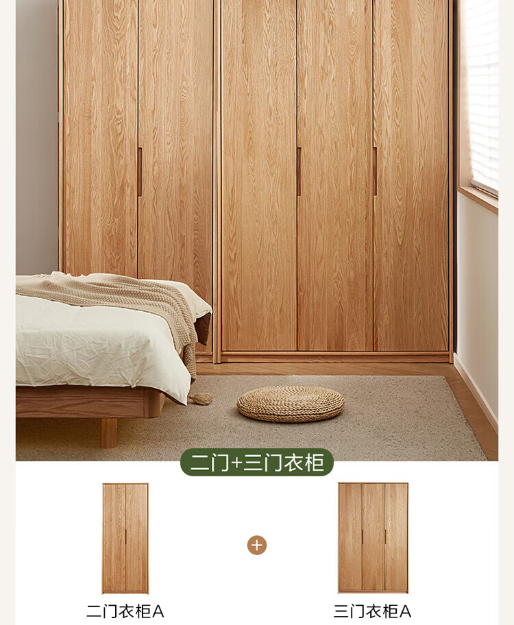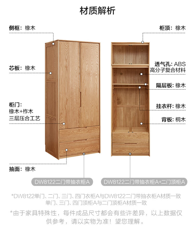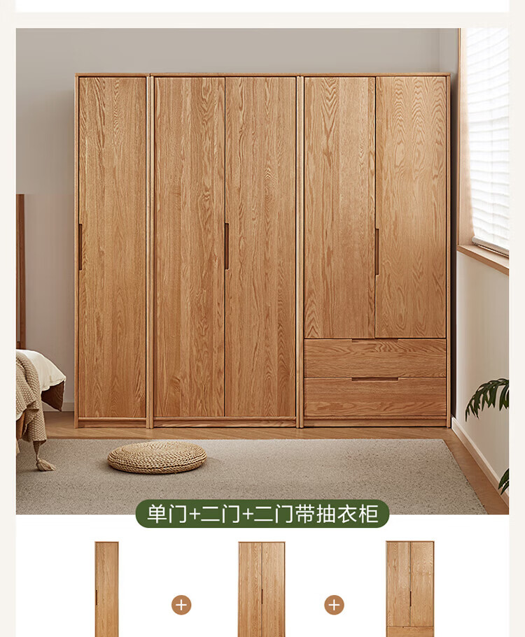 全友家居橡木实木组合衣柜北欧风卧室储物柜衣橱家用实木家具衣服收纳 【红橡木】二门带抽衣柜