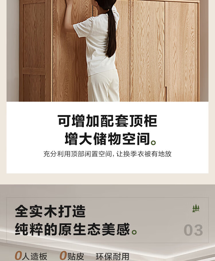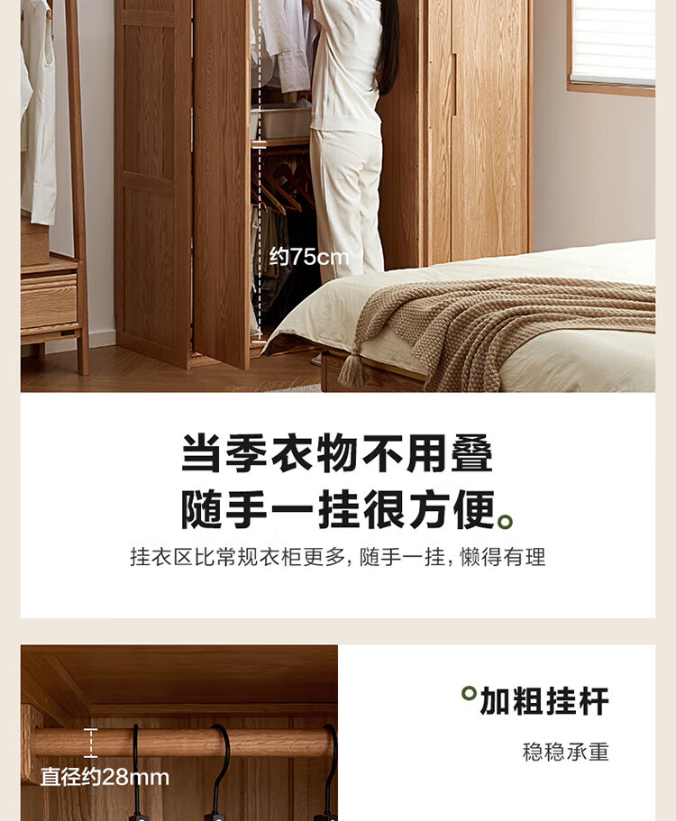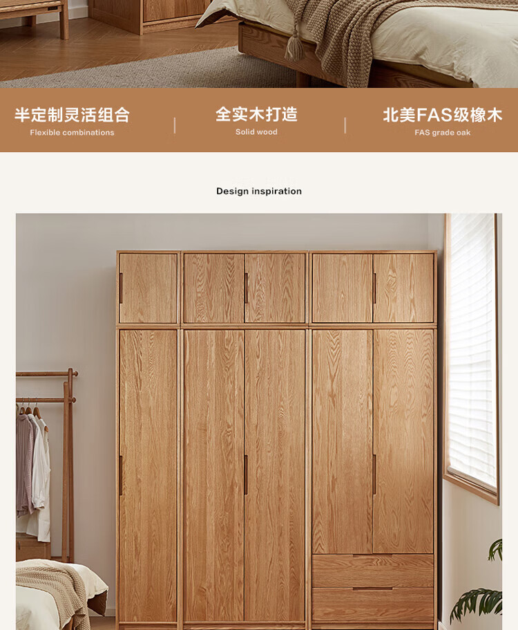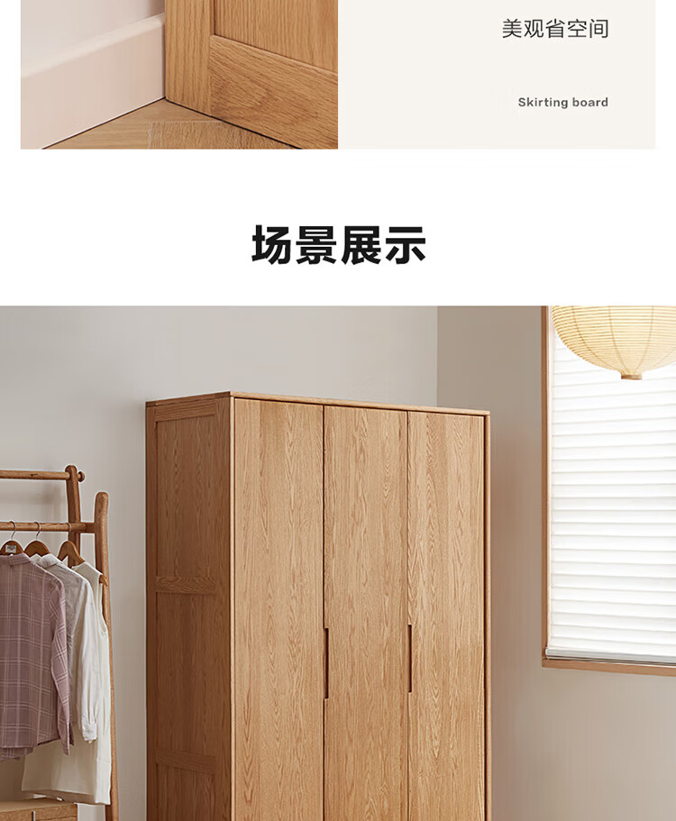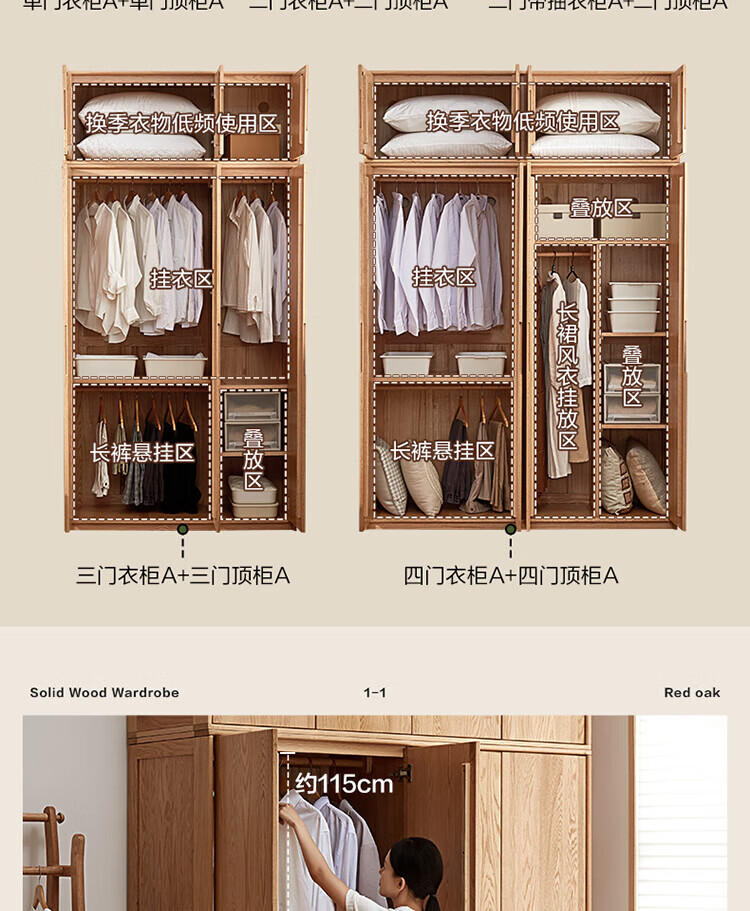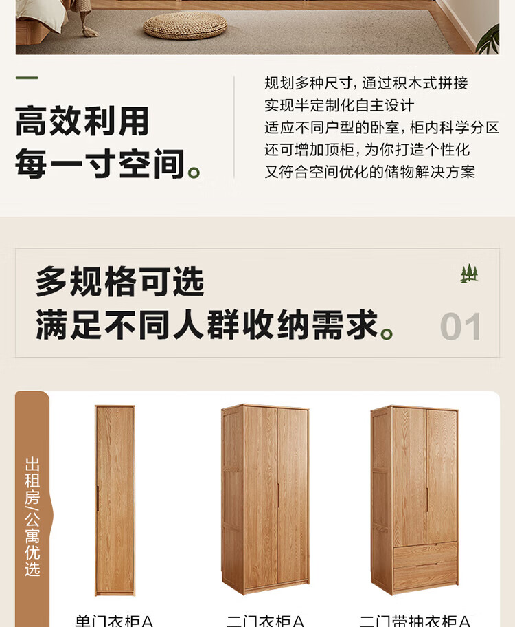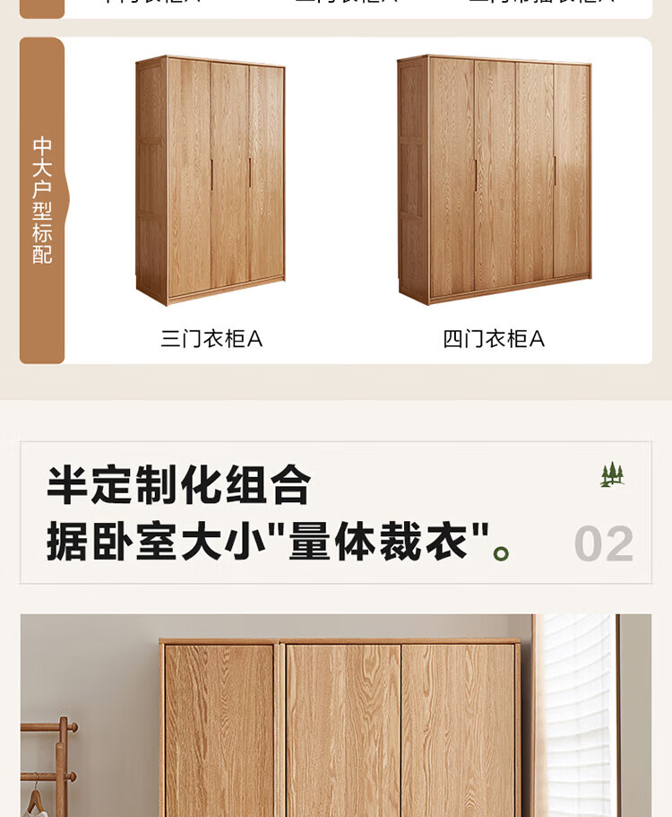 全友家居橡木实木组合衣柜北欧风卧室储物柜衣橱家用实木家具衣服收纳 【红橡木】二门带抽衣柜