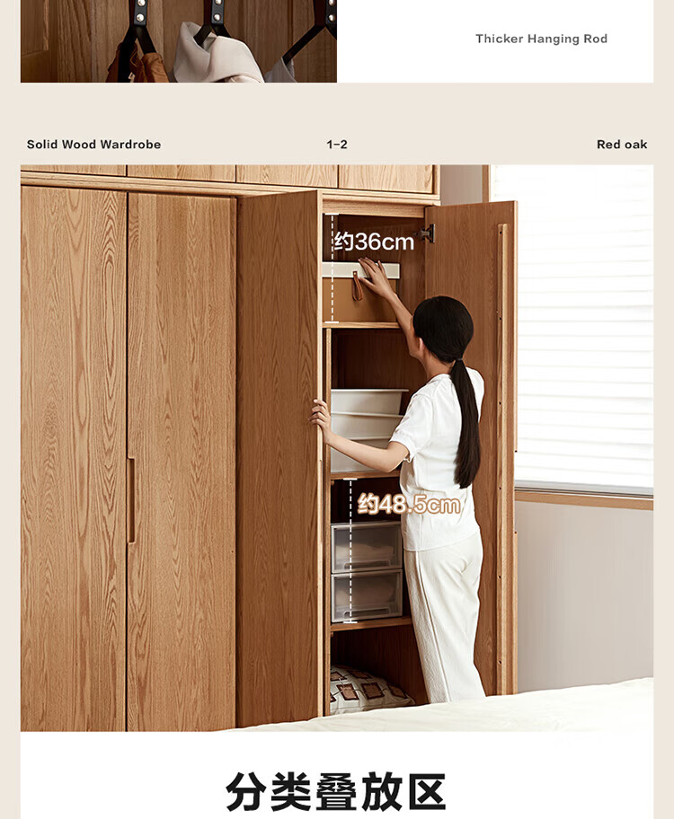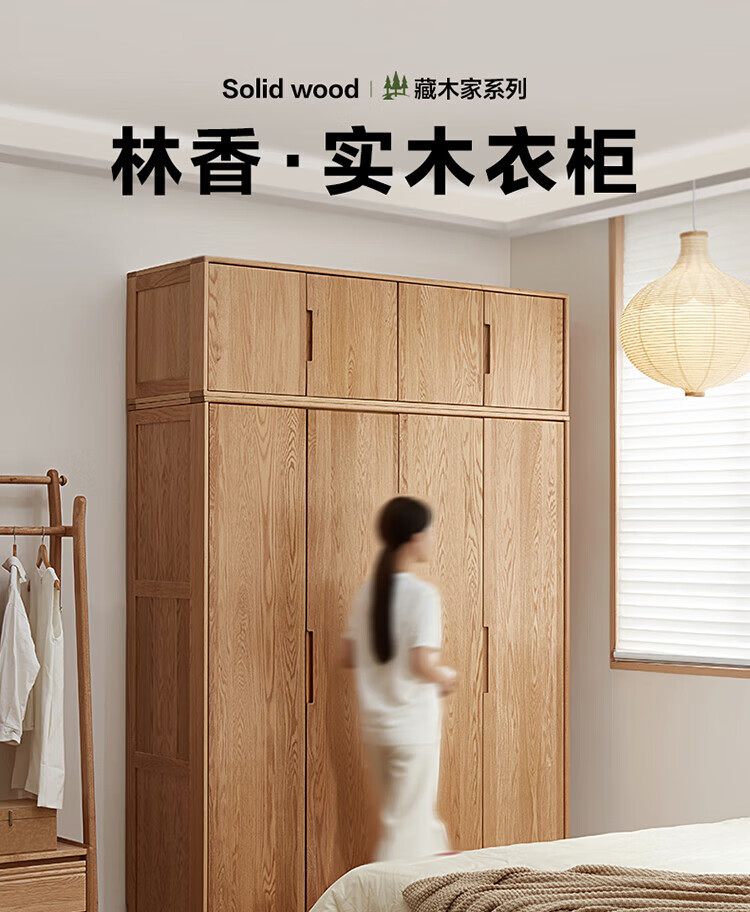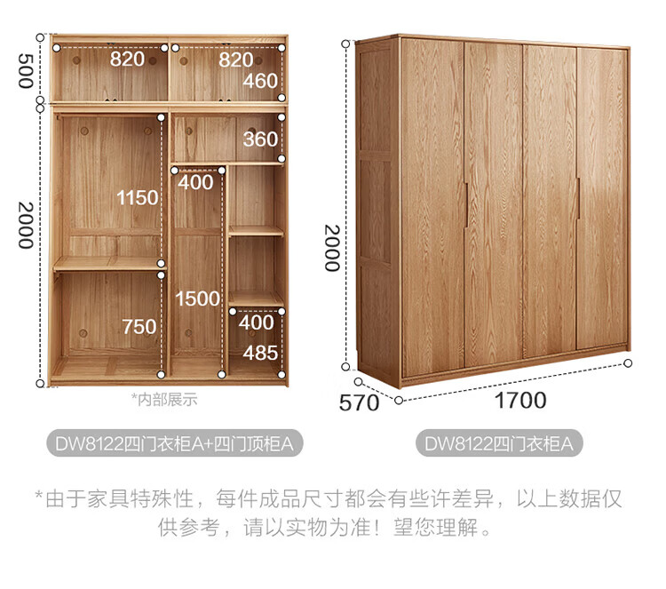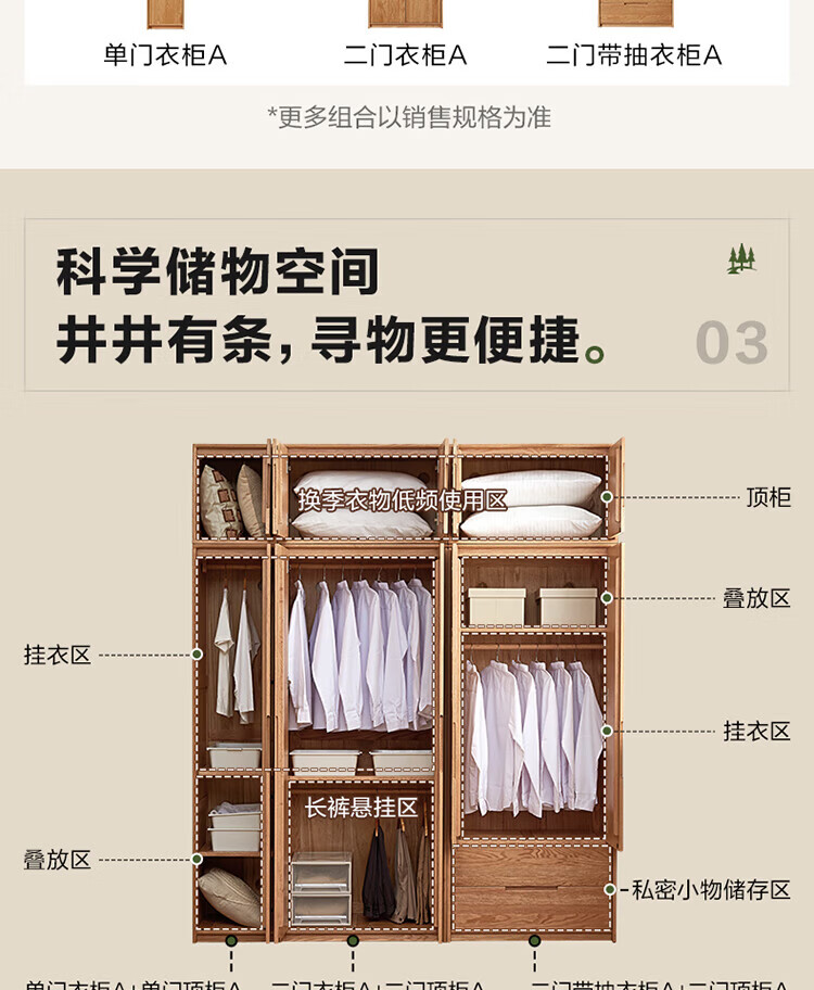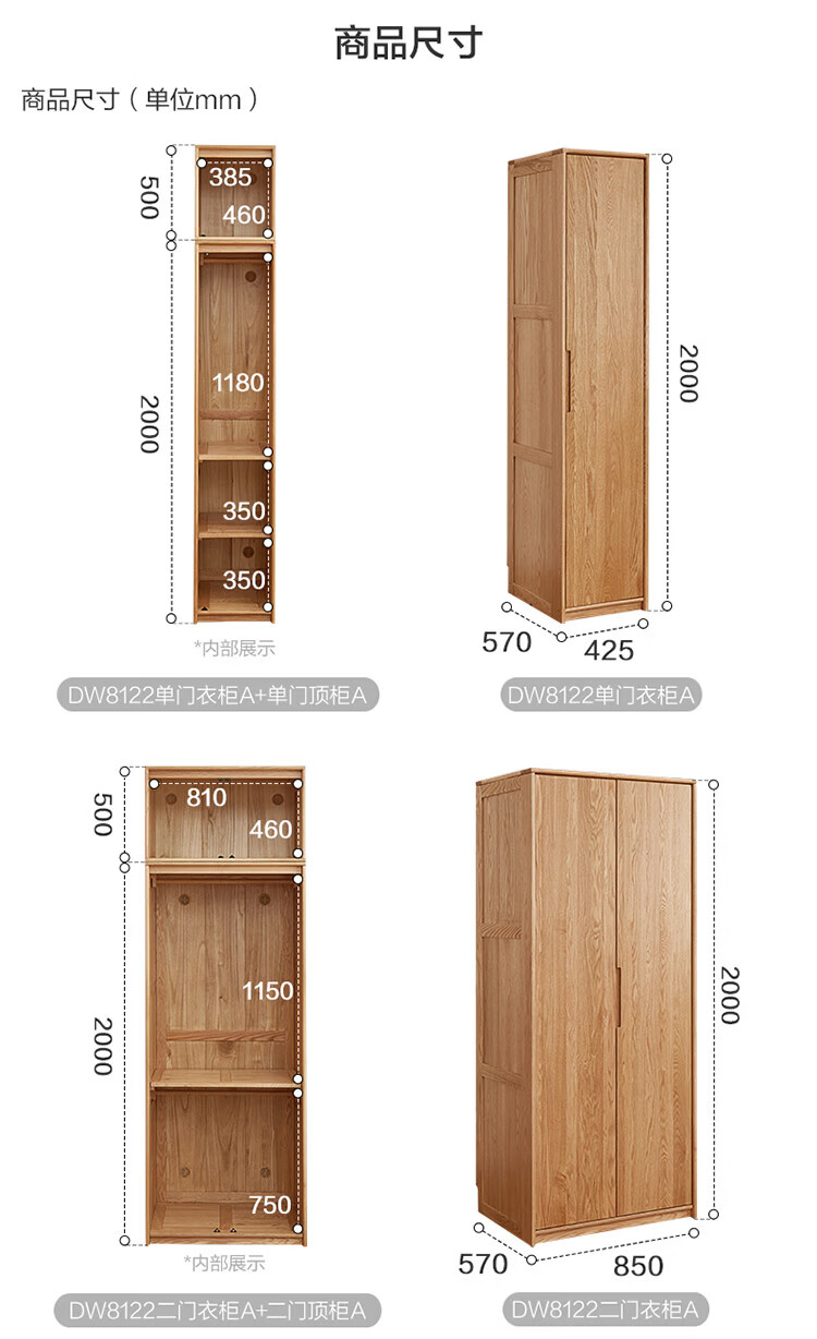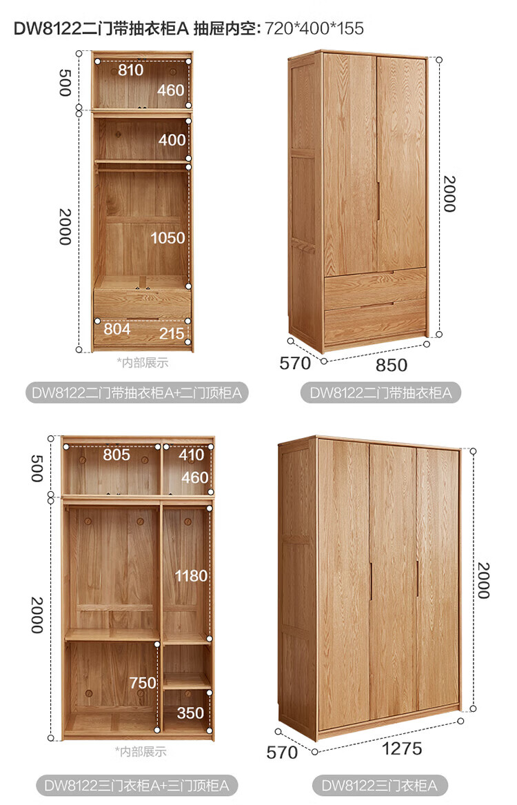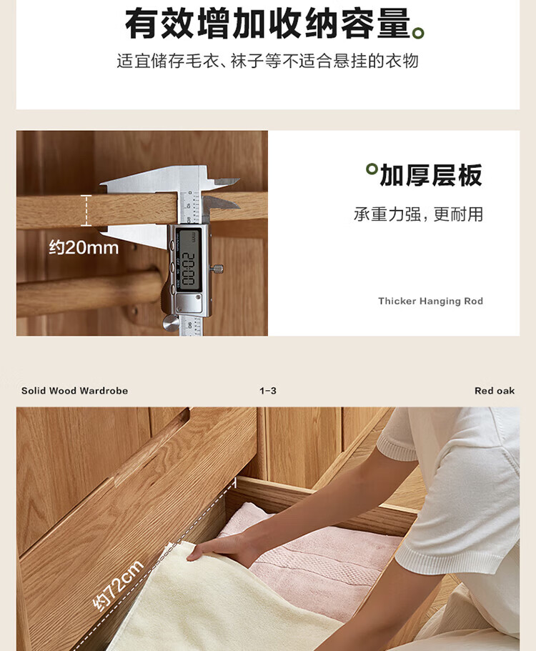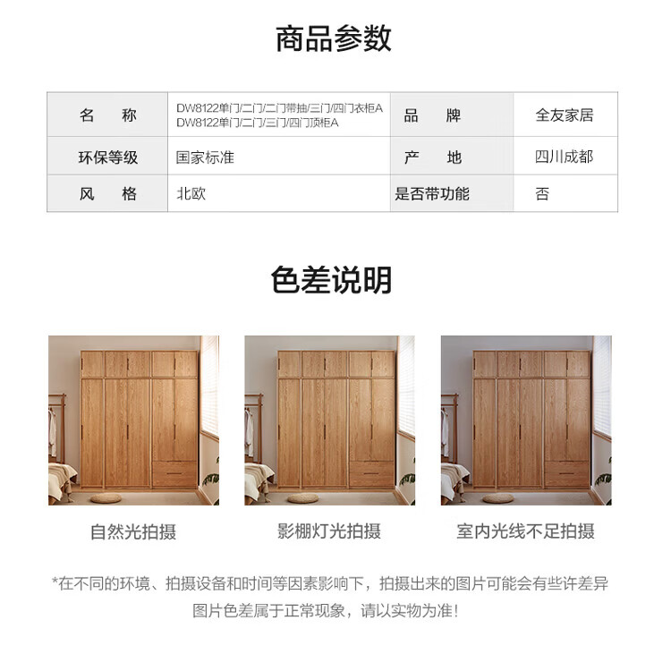 全友家居橡木实木组合衣柜北欧风卧室储物柜衣橱家用实木家具衣服收纳 【红橡木】二门带抽衣柜