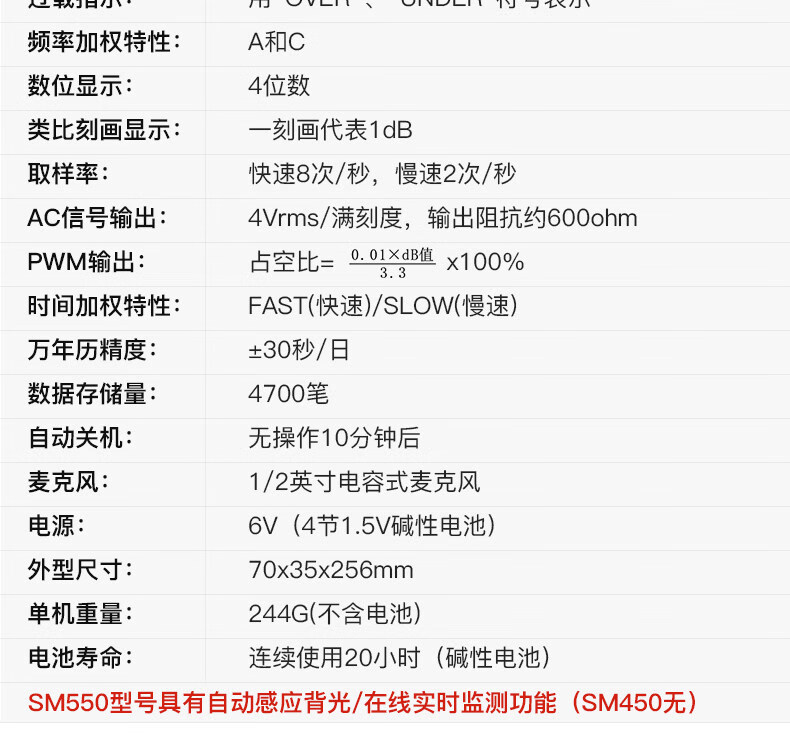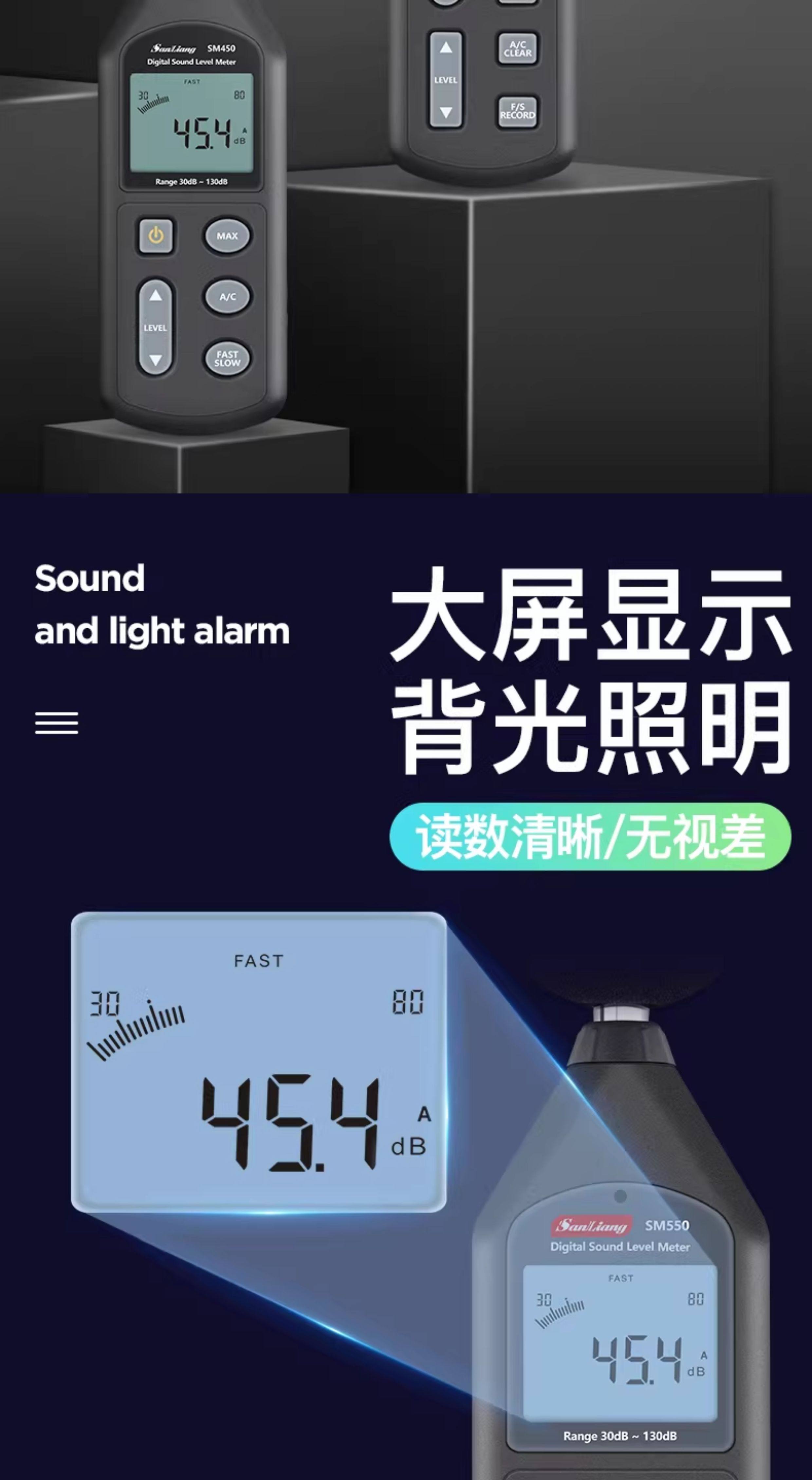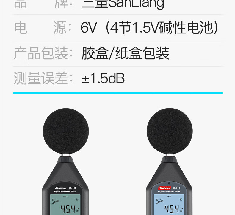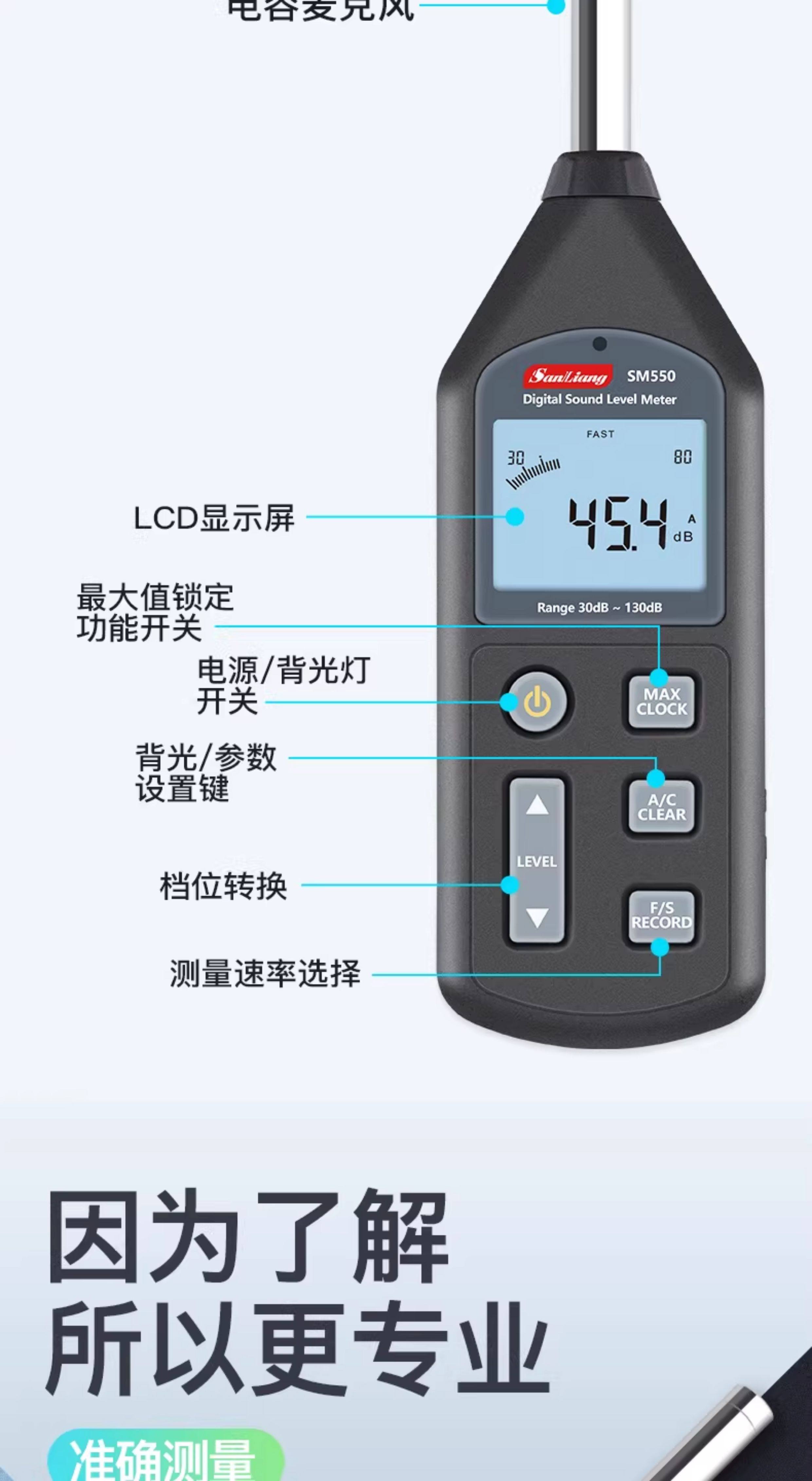 三量(sanliang)正品三量噪音计分贝测试器噪音分贝仪噪音测试仪测音量声音家用 SM420 无规格