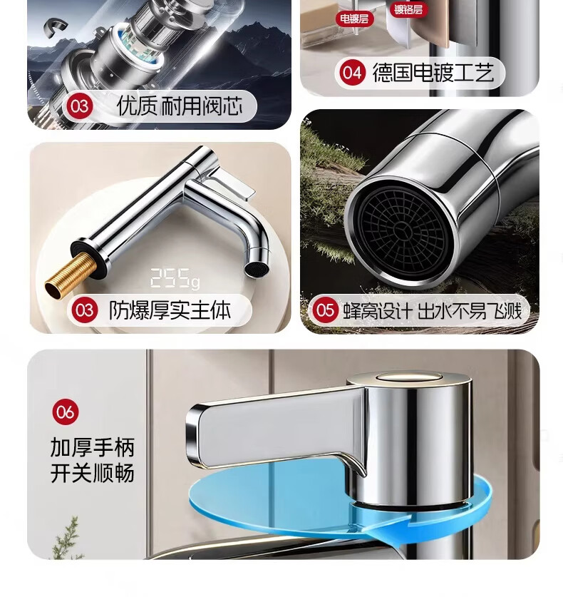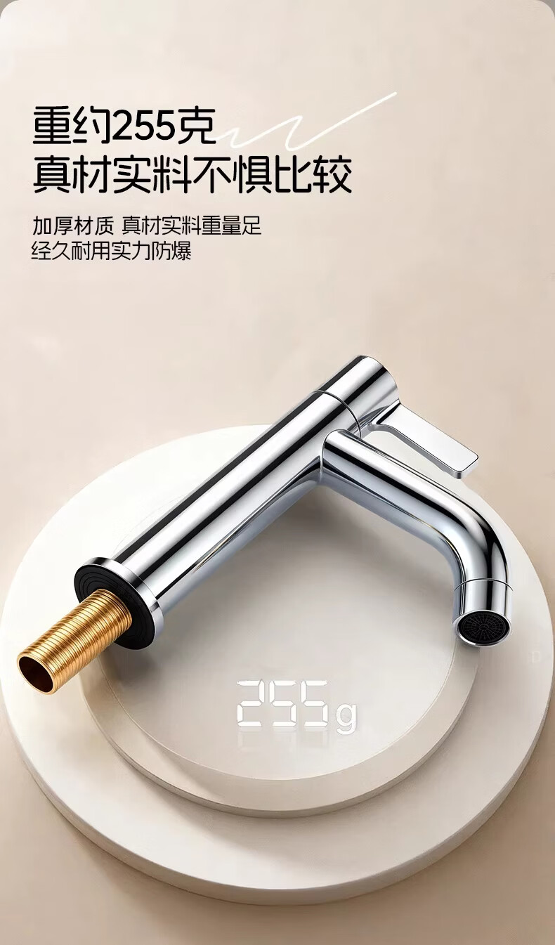 GuGuGo【德国】洗手盆水龙头单冷家用防溅面盆水龙头浴室卫生间台盆龙头 单冷【不锈钢加厚】洗脸盆水龙头 通用安装丨起泡柔和不溅水
