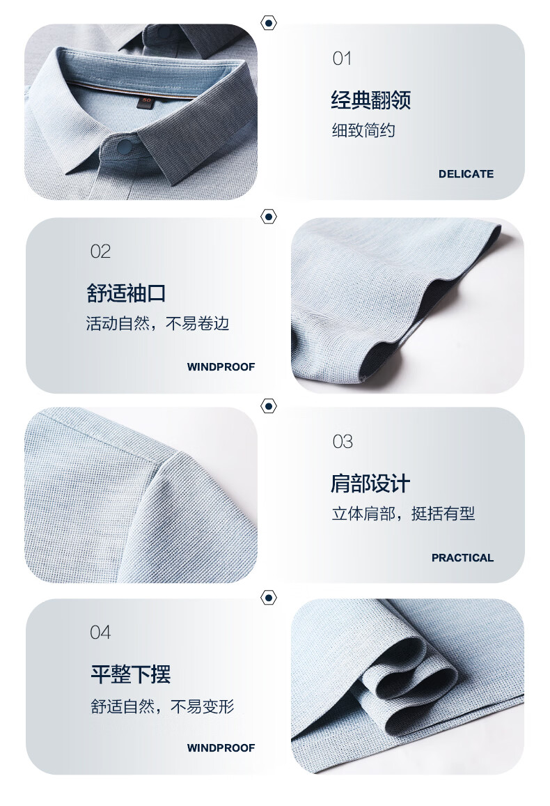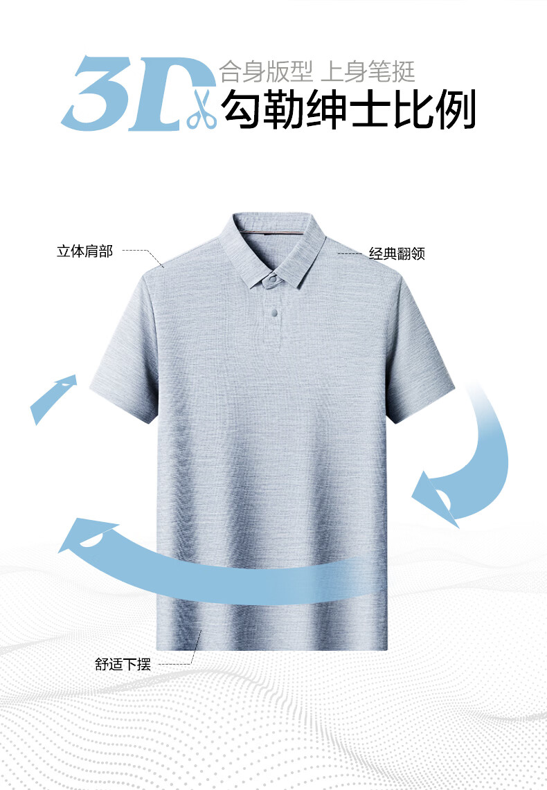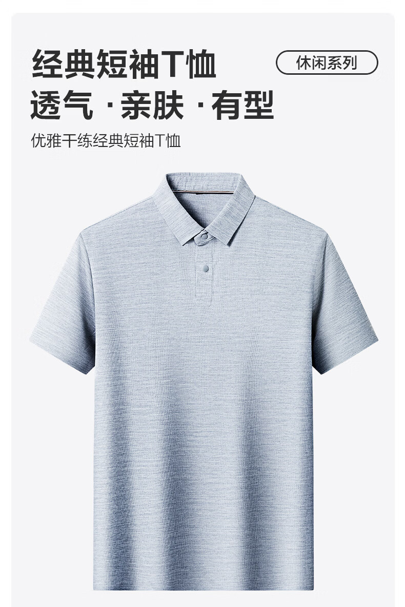 SHANSHAN杉杉【锦氨弹力花纱】短袖t恤男纽扣翻领POLO衫夏季新款 灰色 M /170