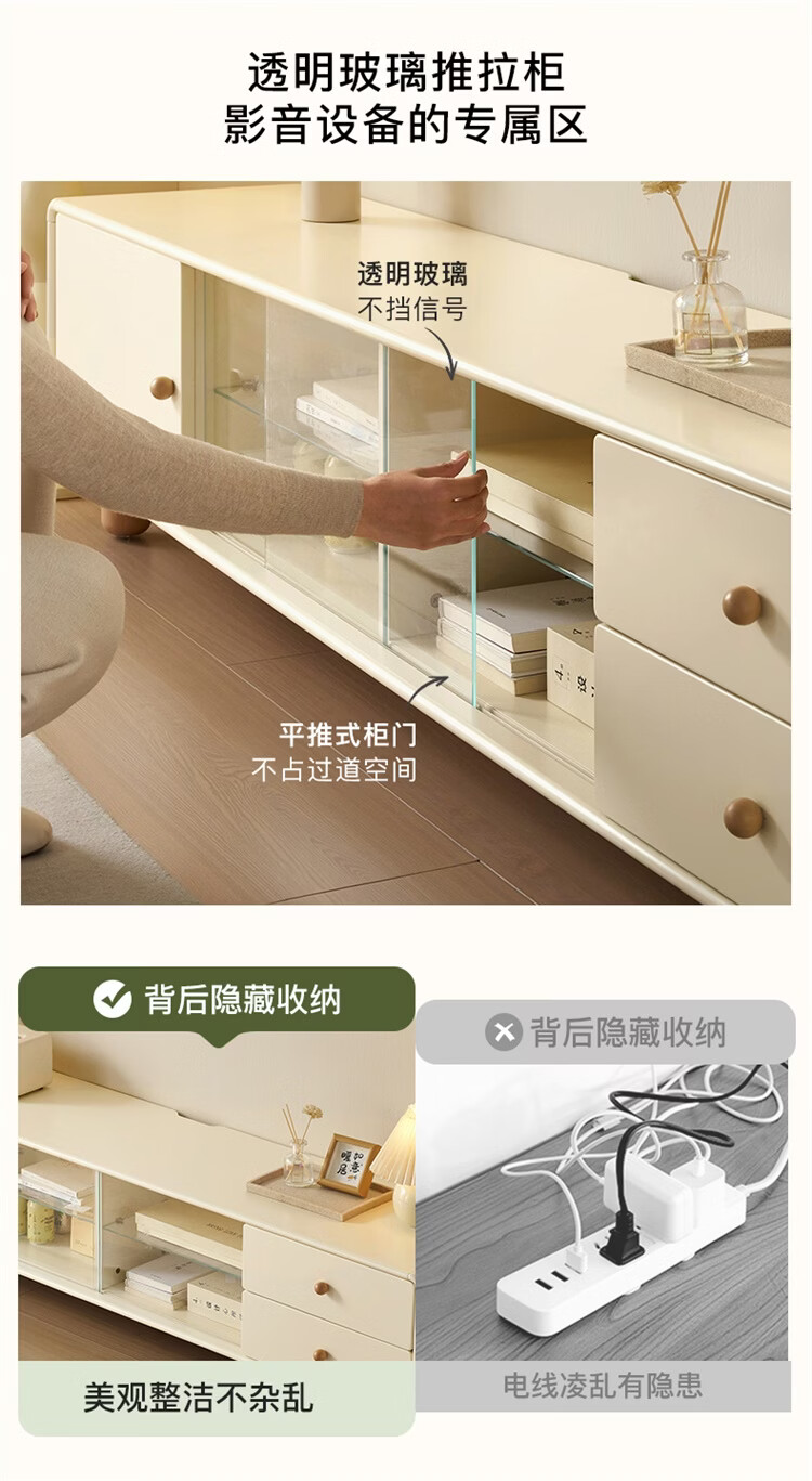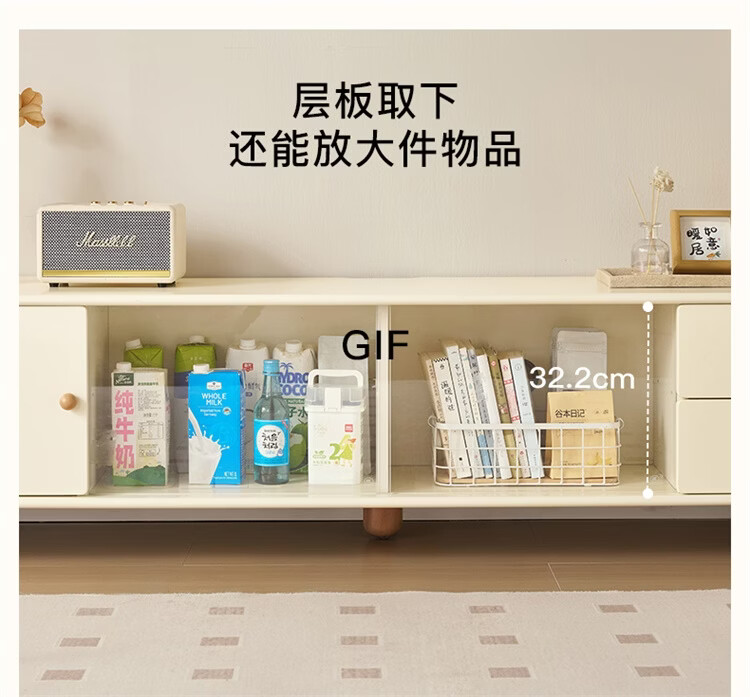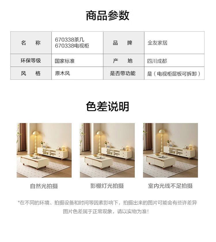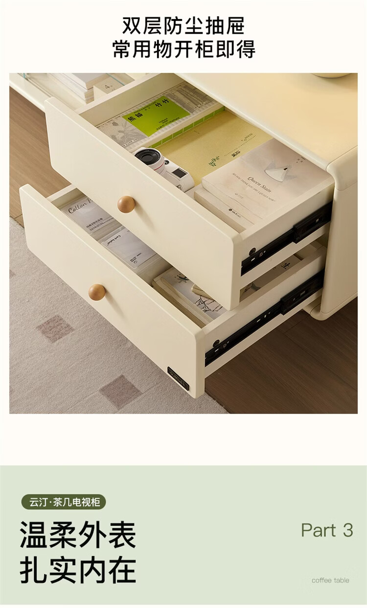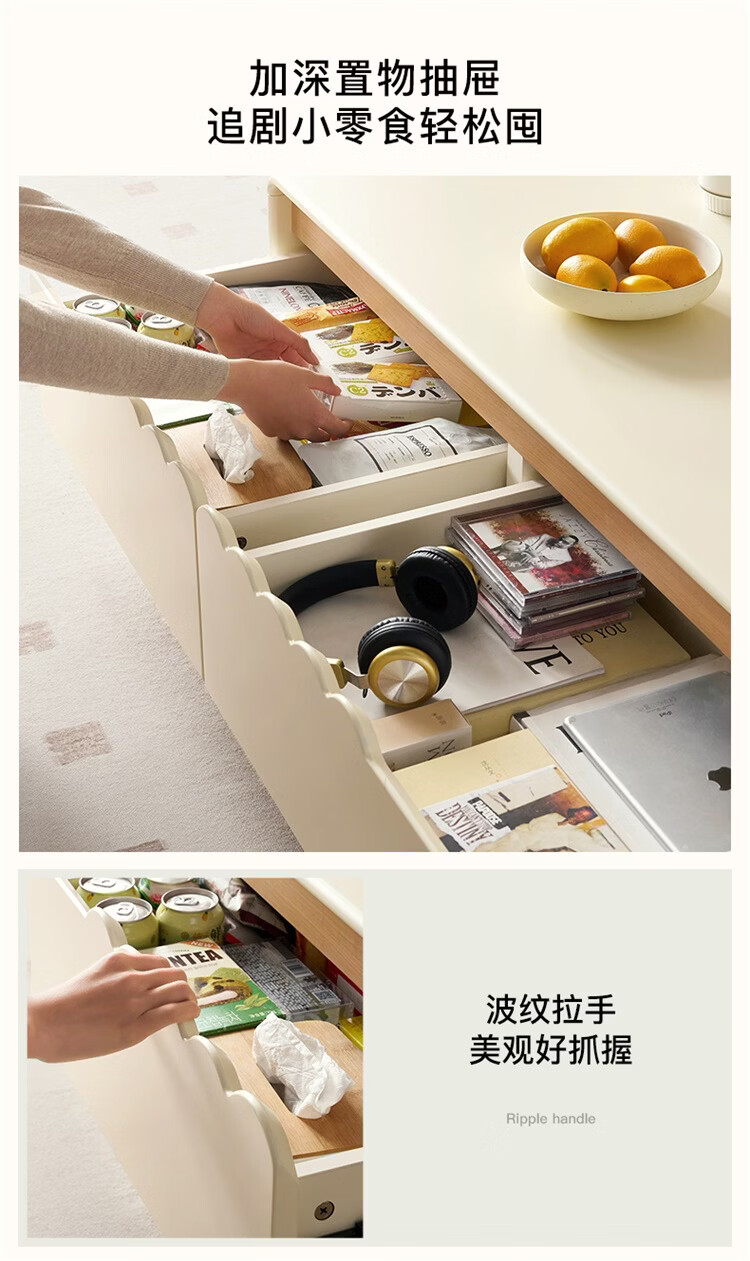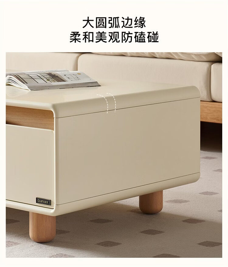 全友家居原木奶油风茶几电视柜组合家用储物收纳桌置物柜加宽实木脚 【奶油白+原木色】茶几