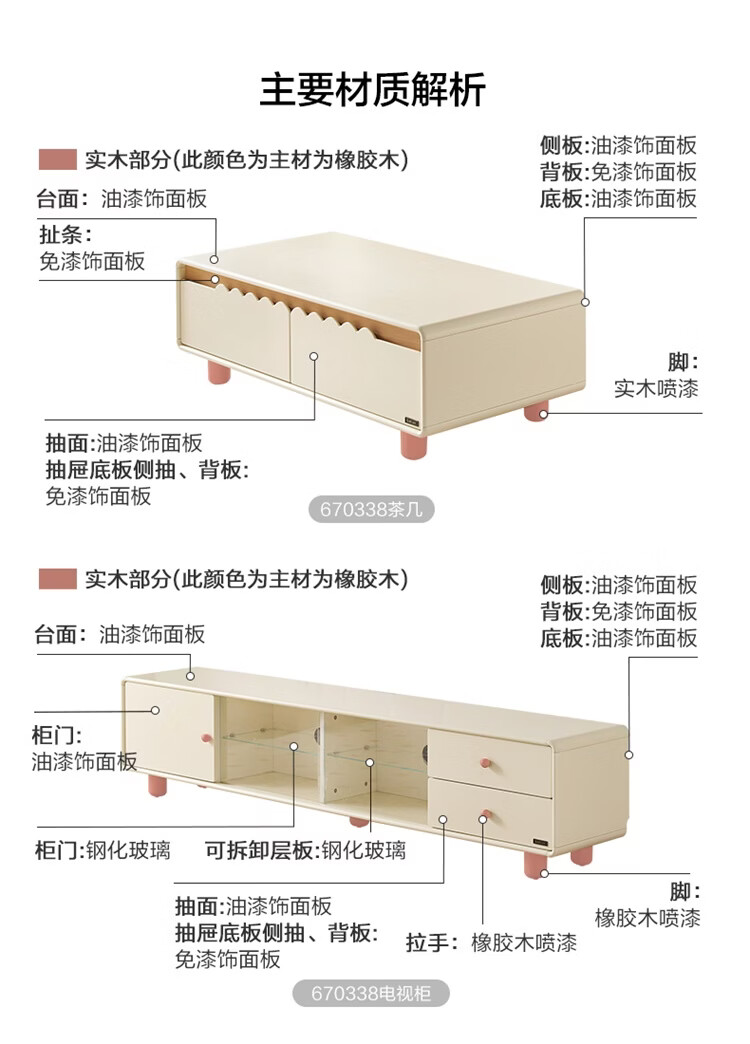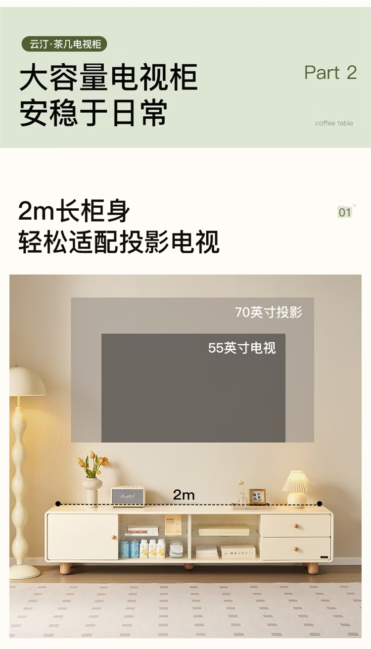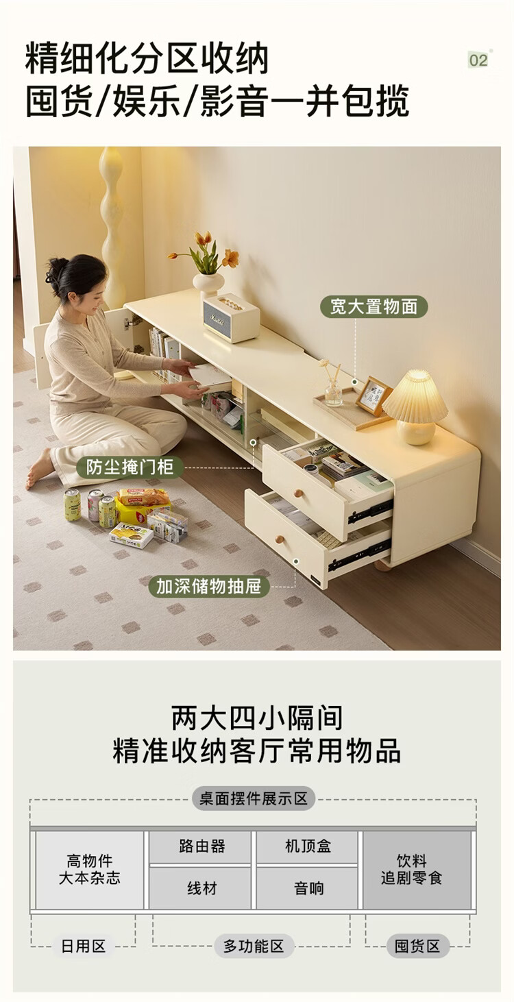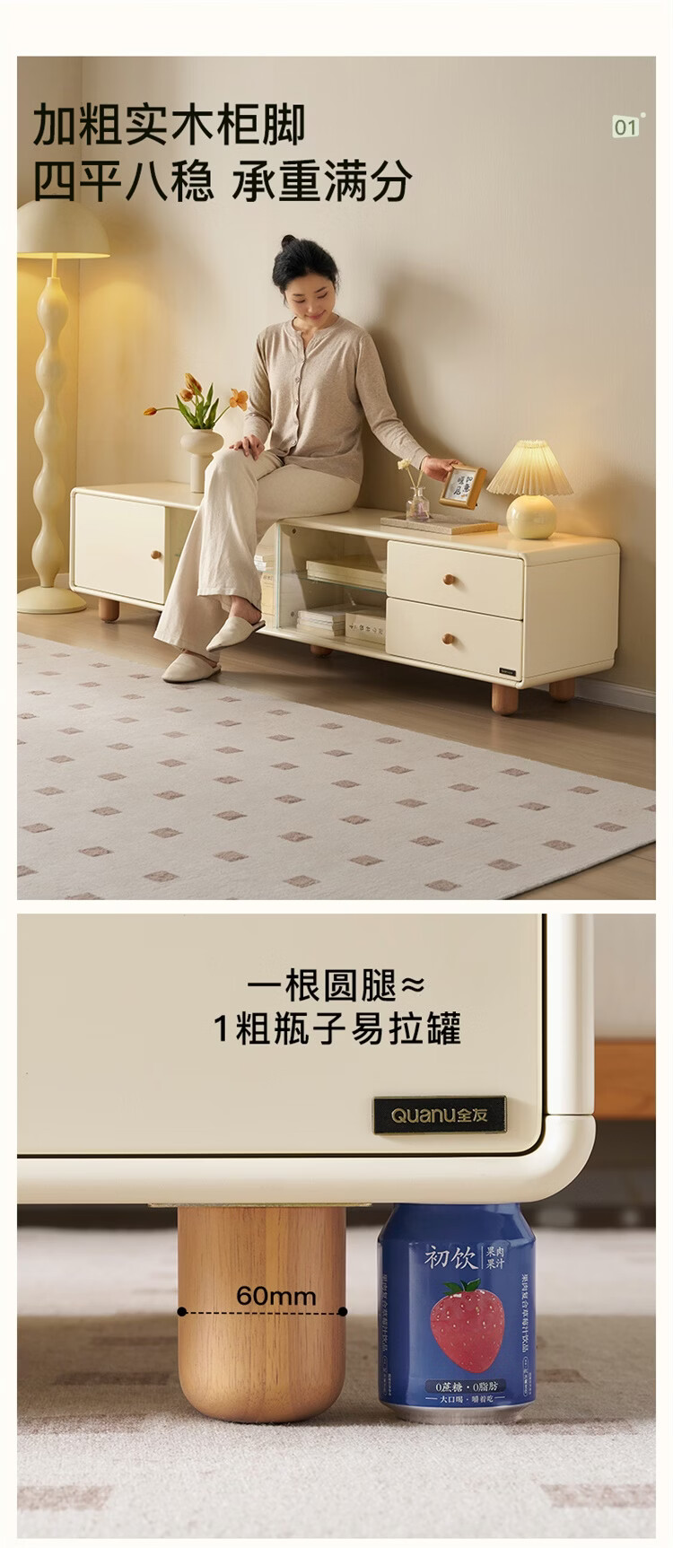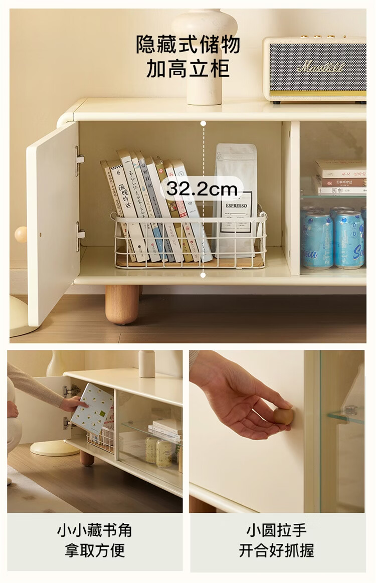 全友家居原木奶油风茶几电视柜组合家用储物收纳桌置物柜加宽实木脚 【奶油白+原木色】茶几