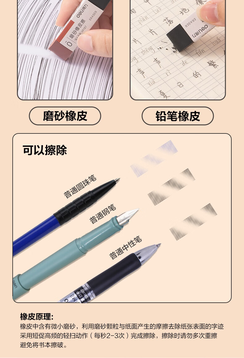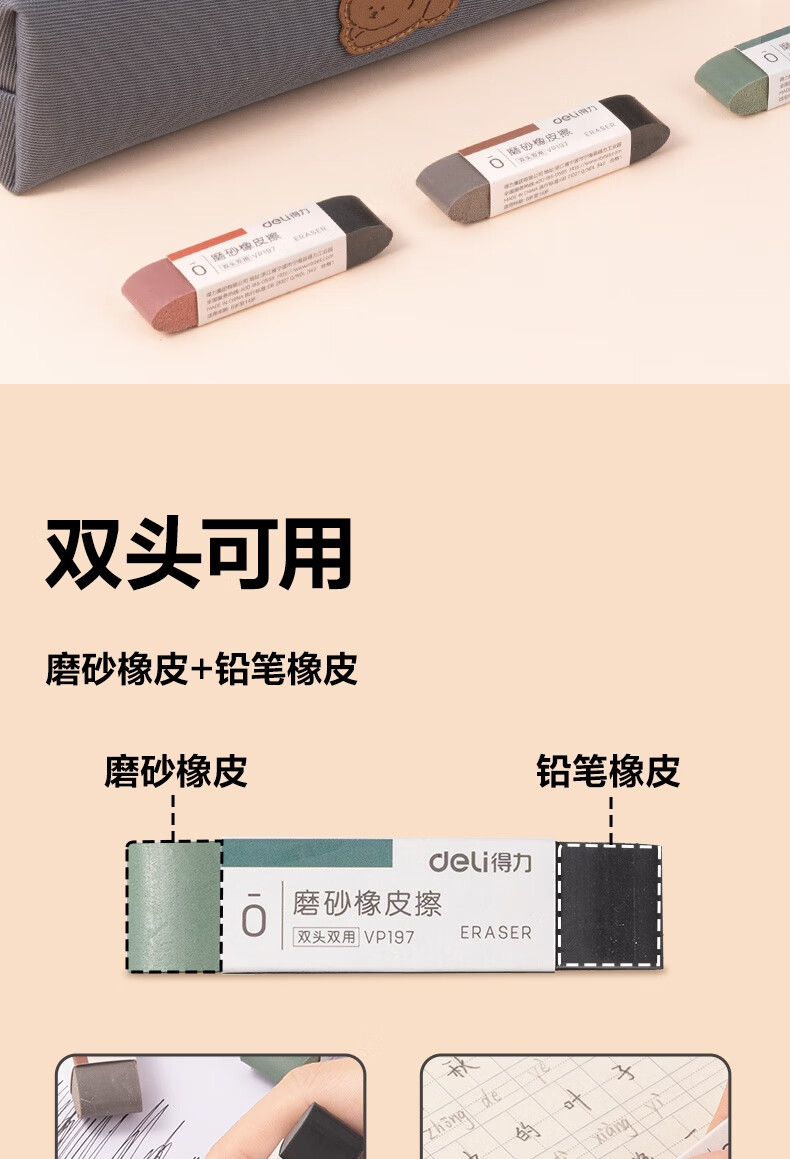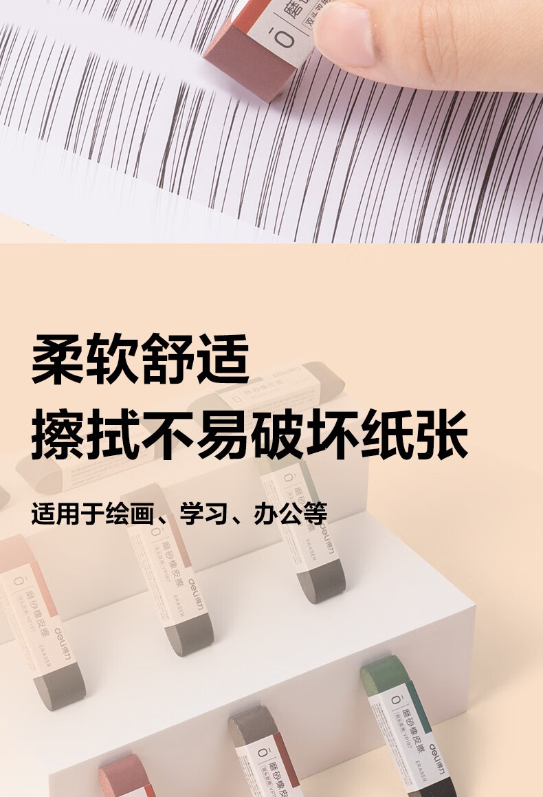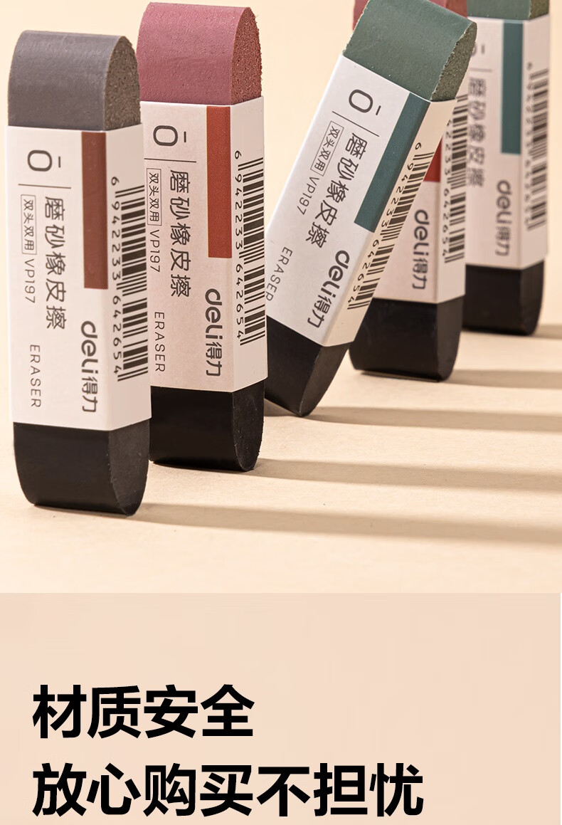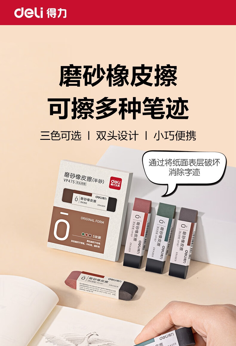 得力(deli)彩色半砂磨砂钢笔橡皮擦 普通中性笔/普通钢笔/普通圆珠笔/普通铅笔专用 学生文具 五支装/盒