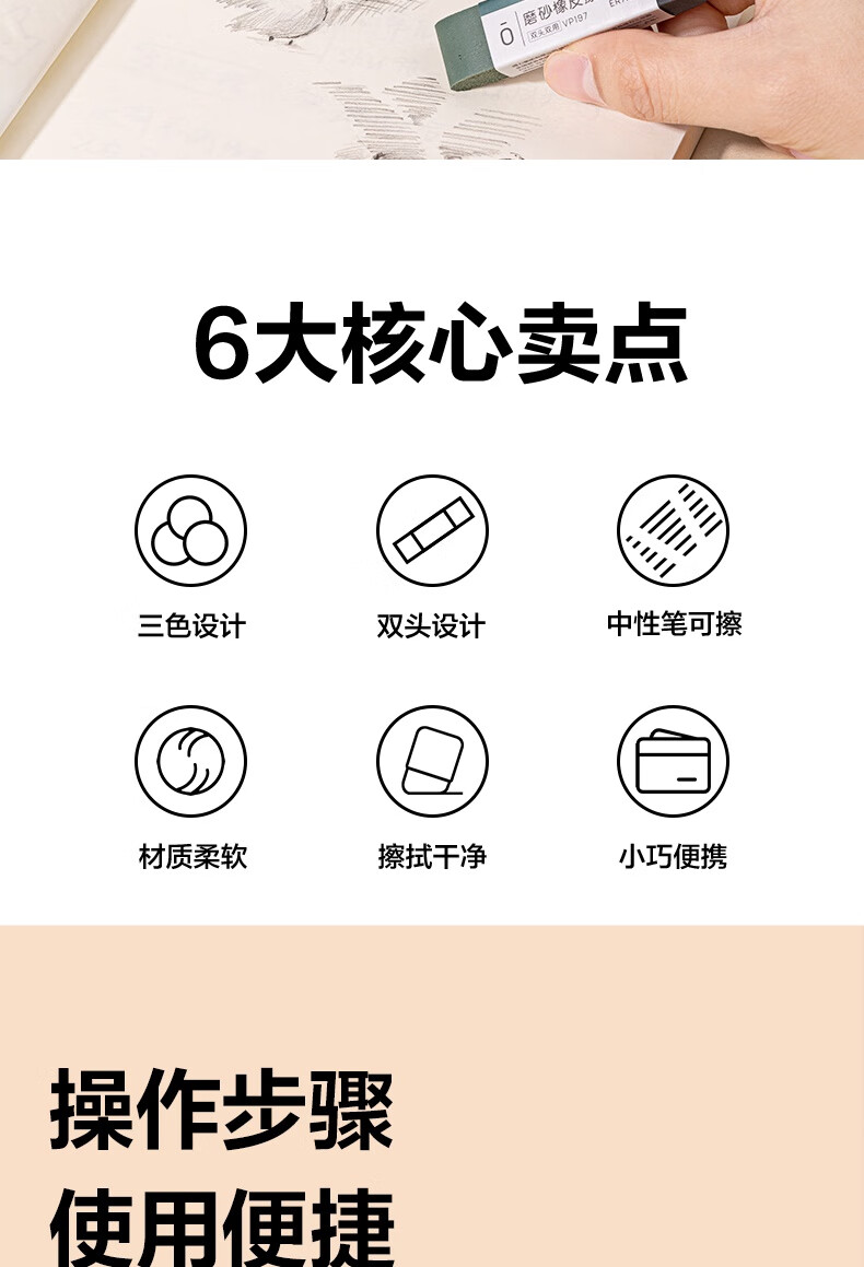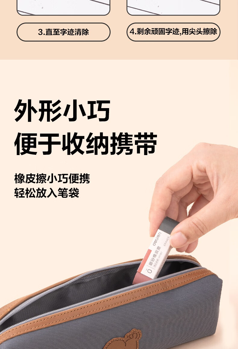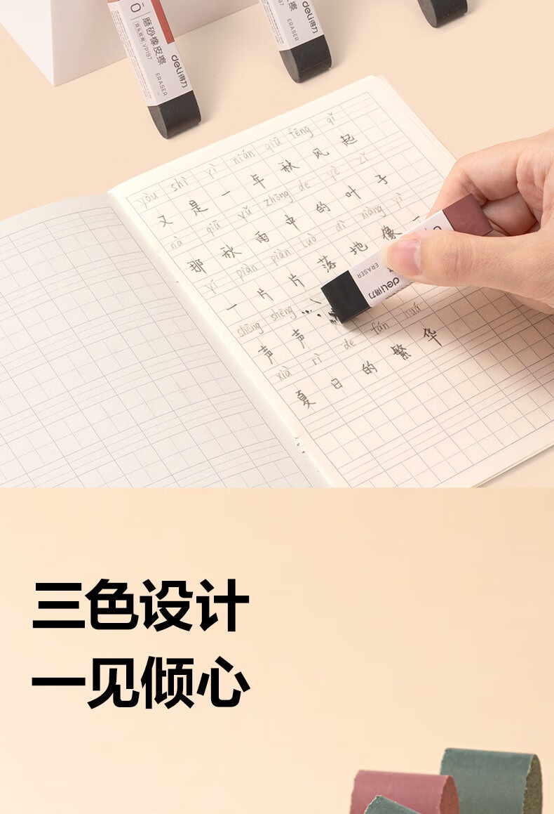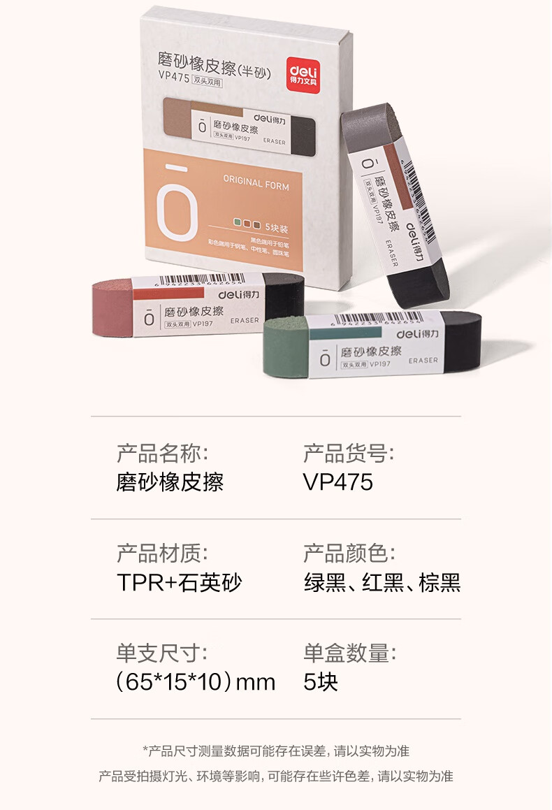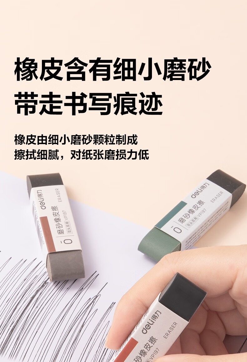得力(deli)彩色半砂磨砂钢笔橡皮擦 普通中性笔/普通钢笔/普通圆珠笔/普通铅笔专用 学生文具 五支装/盒