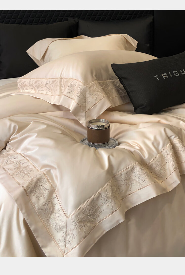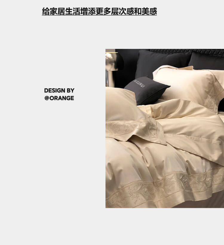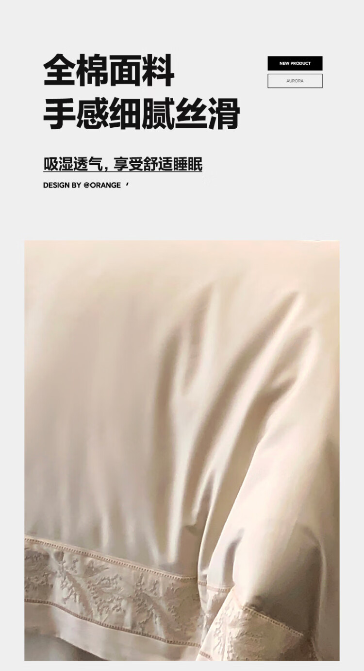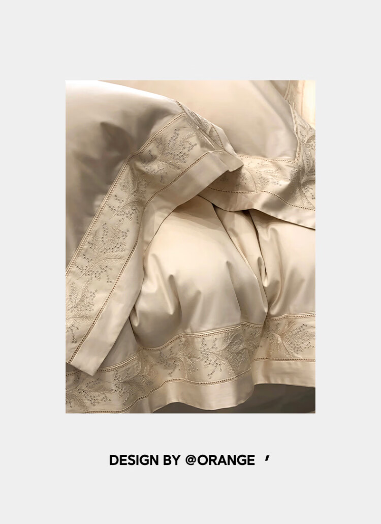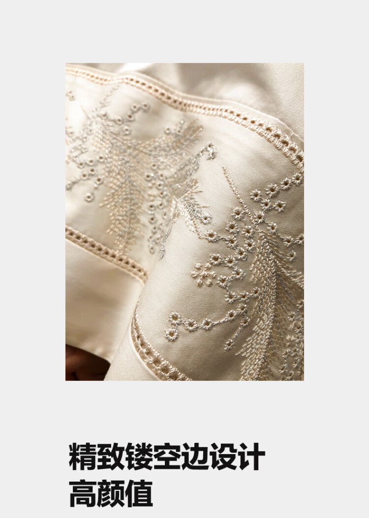 ROLAND LIVE轻奢风镂空边全棉四件套床单被套简约透气双人床柔软纯棉床上用品 TGH 全棉四件套-仙本那奶油米 1.5米床 床单款 【被套200*230cm】