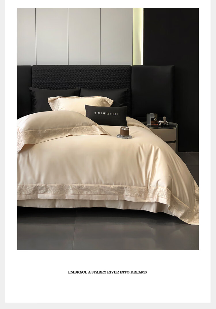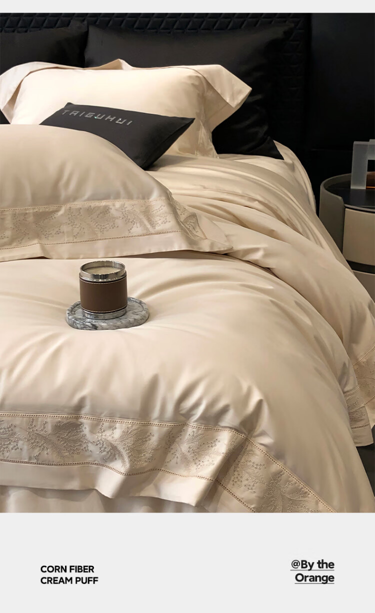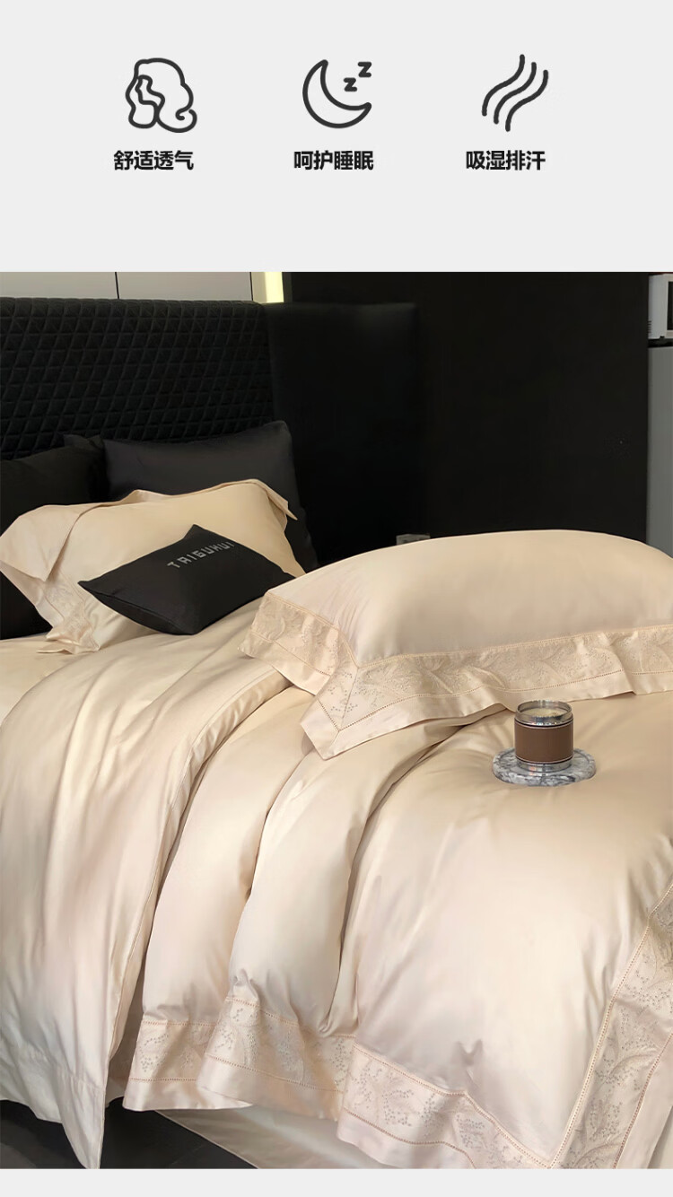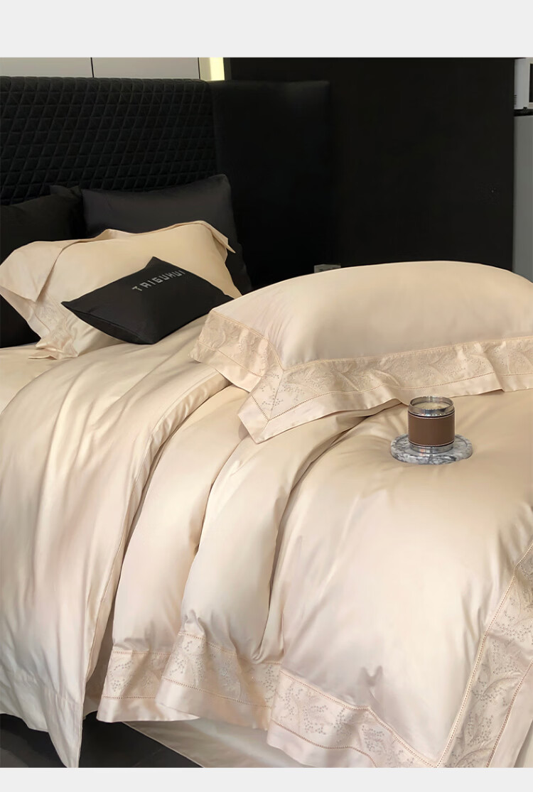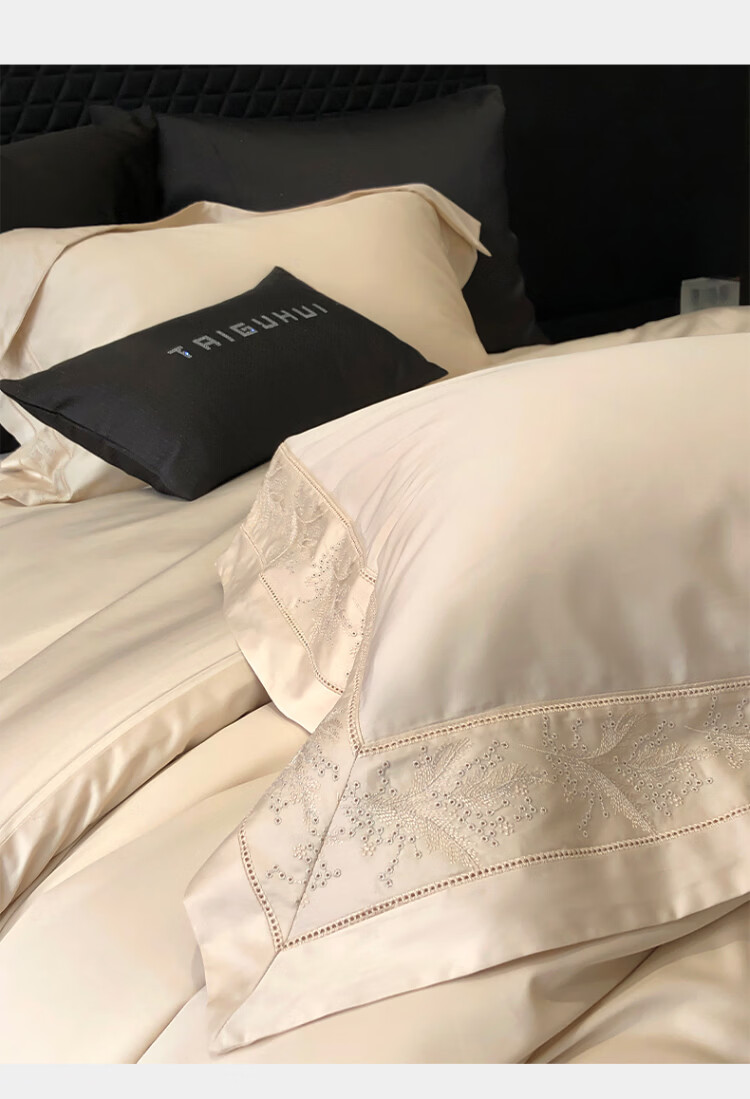 ROLAND LIVE轻奢风镂空边全棉四件套床单被套简约透气双人床柔软纯棉床上用品 TGH 全棉四件套-仙本那奶油米 1.5米床 床单款 【被套200*230cm】