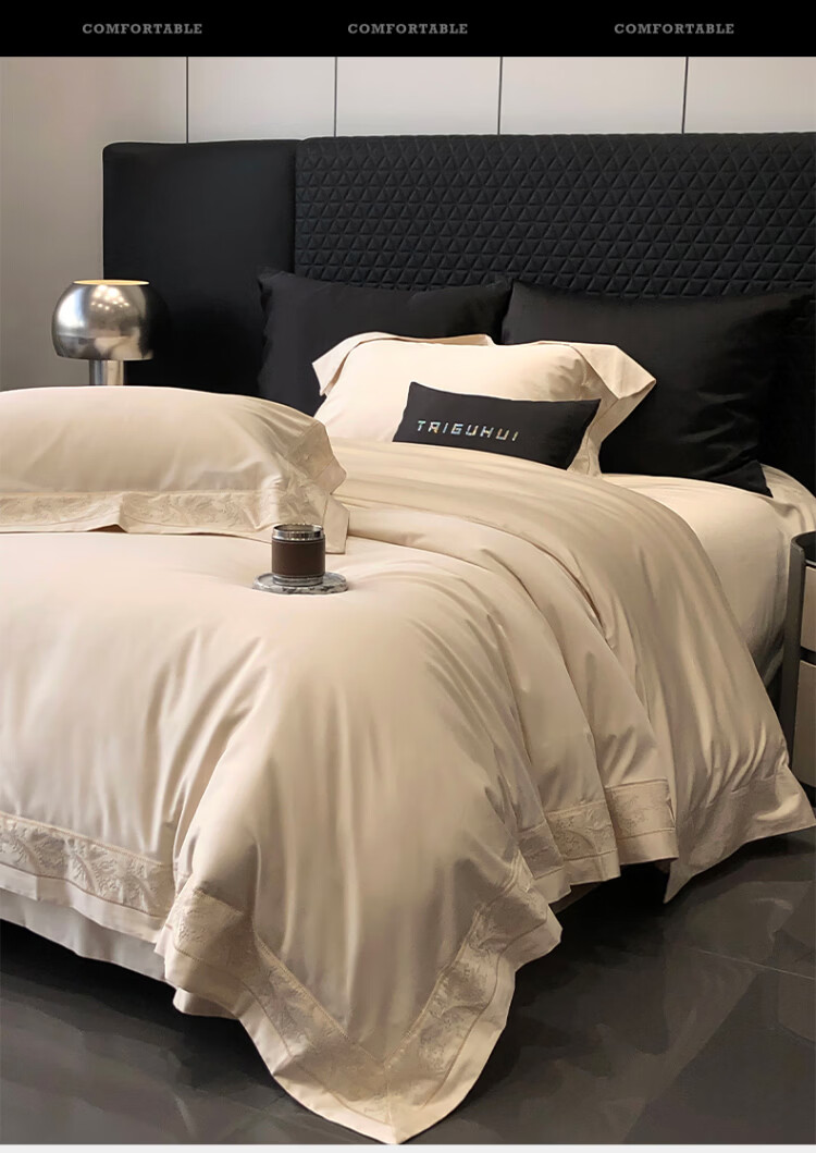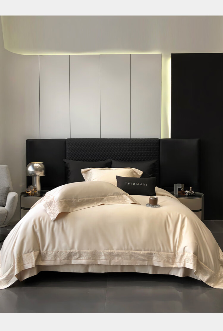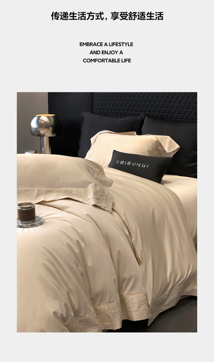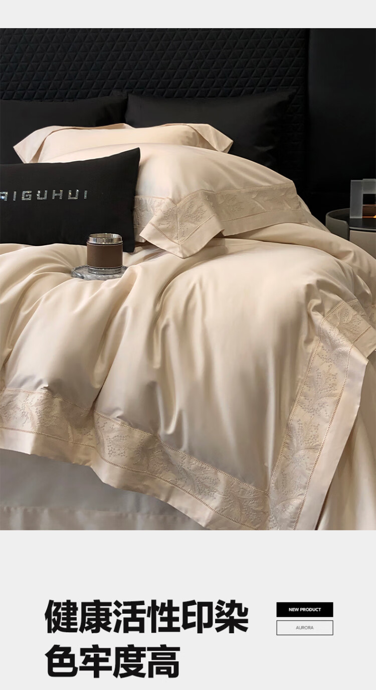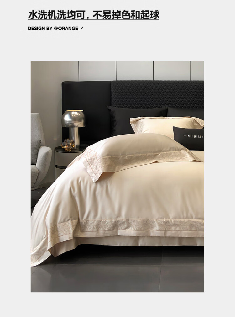 ROLAND LIVE轻奢风镂空边全棉四件套床单被套简约透气双人床柔软纯棉床上用品 TGH 全棉四件套-仙本那奶油米 1.5米床 床单款 【被套200*230cm】