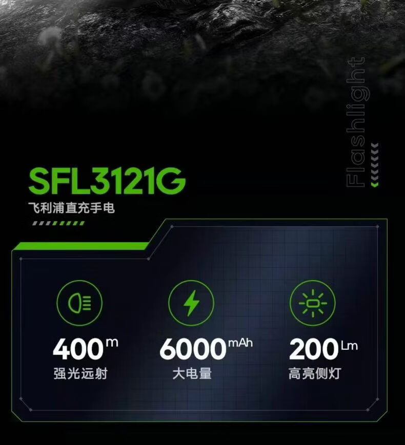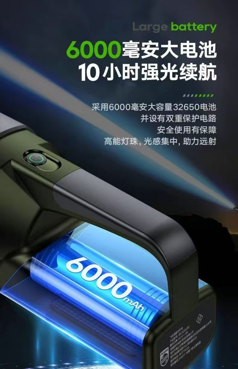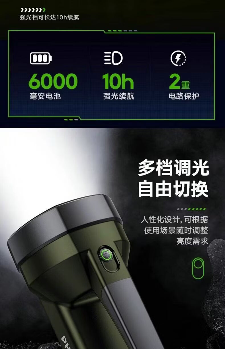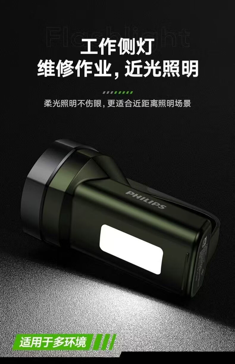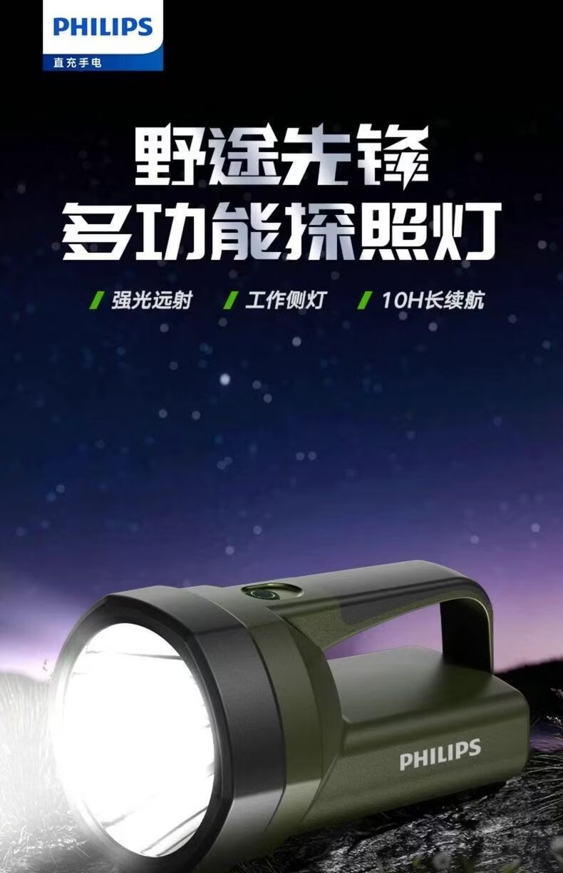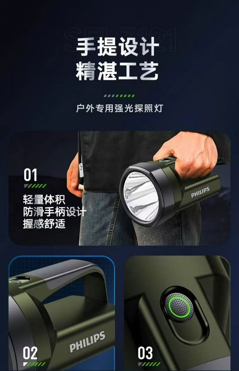 飞利浦(PHILIPS)手电筒强光高亮充电户外长续航远射手提巡逻探照灯应急灯SFL3121G 5W/6000毫安/SFL3121G
