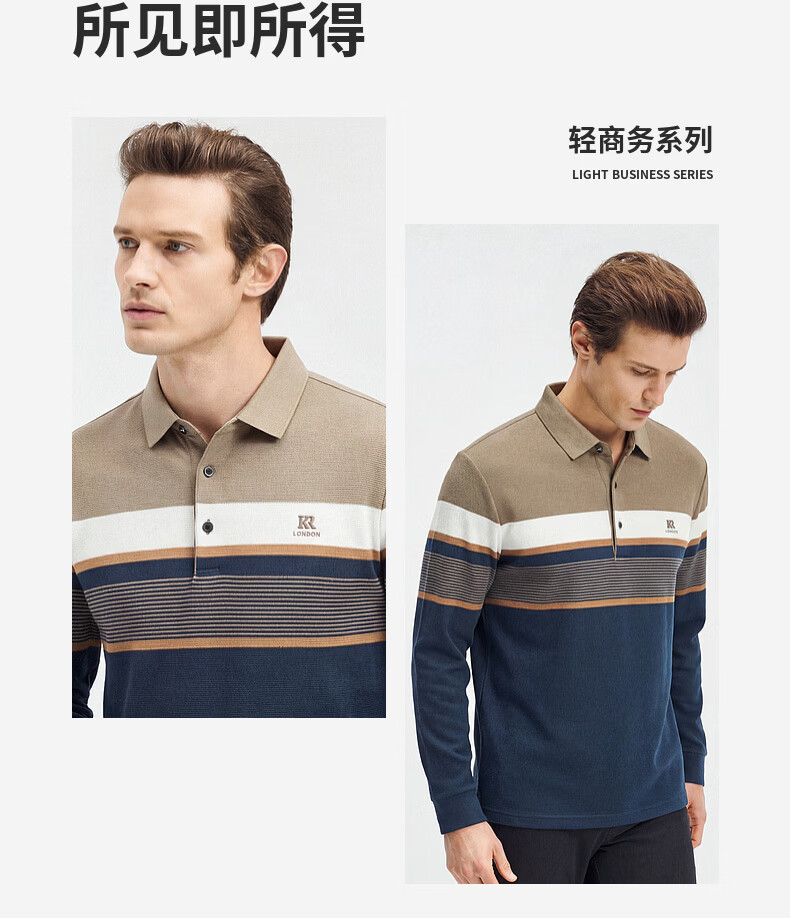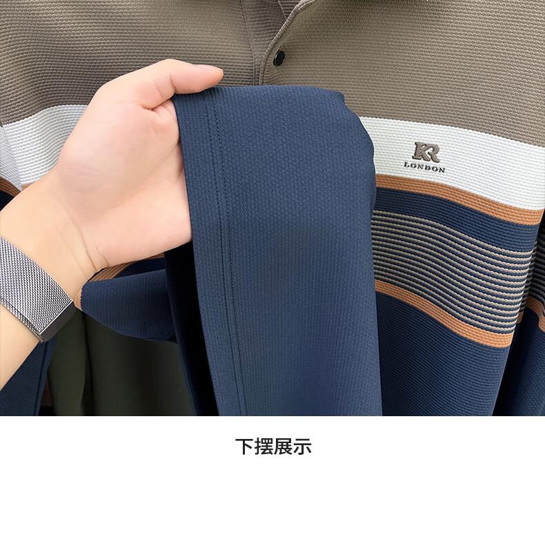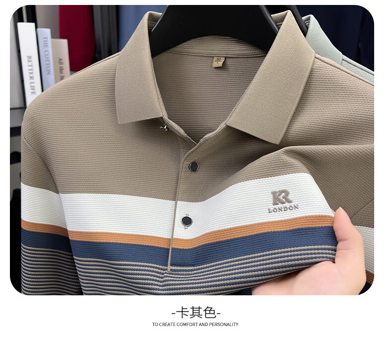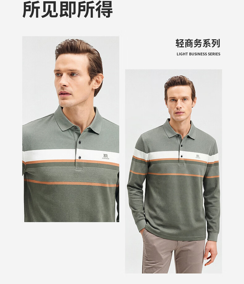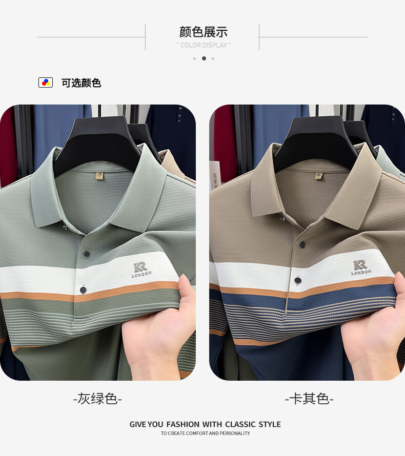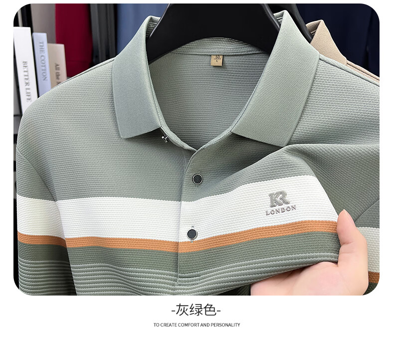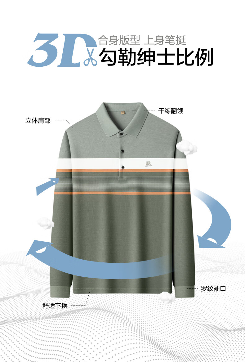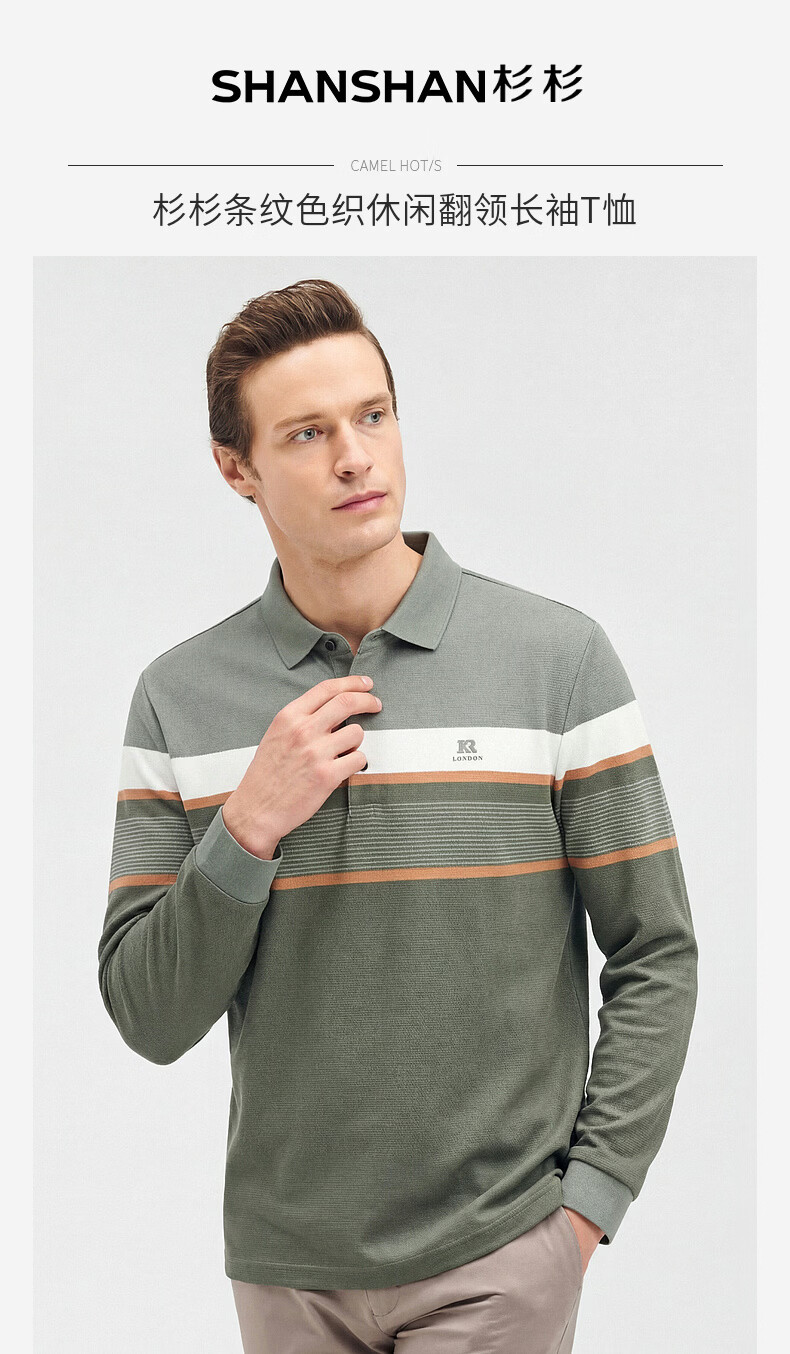 SHANSHAN杉杉【锦氨弹力撞色】长袖t恤男翻领POLO衫商务休闲春秋新款 灰绿色 L /175