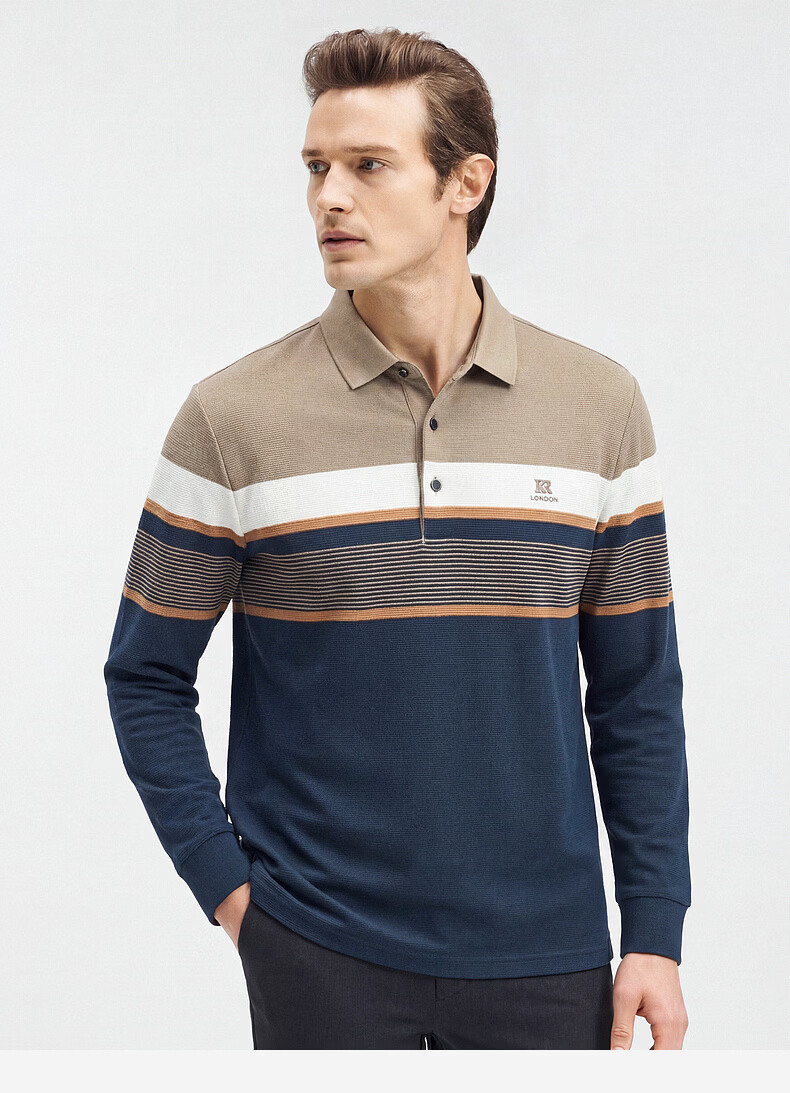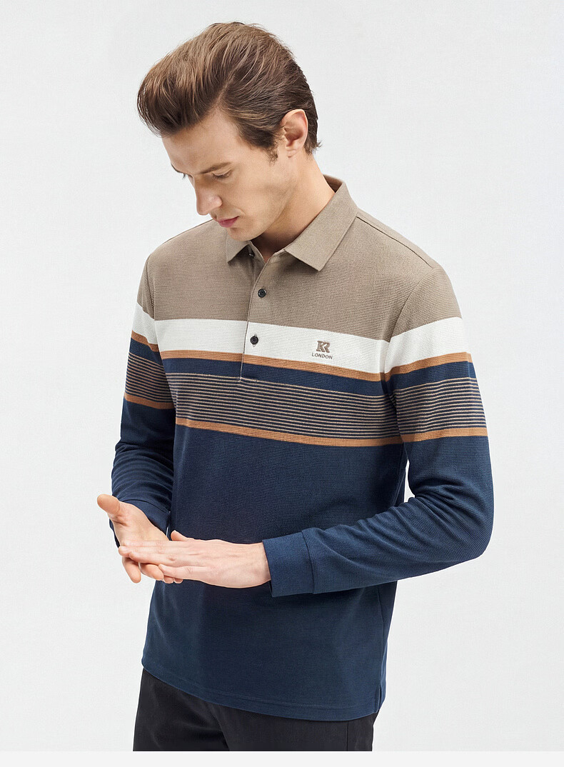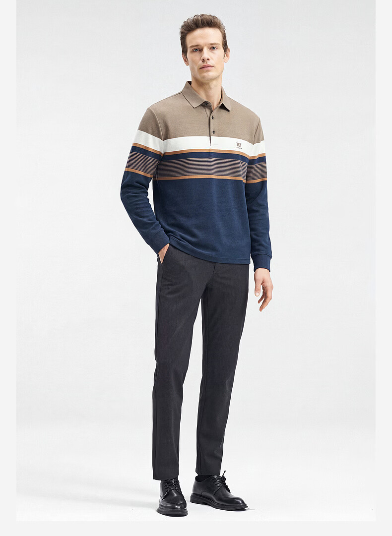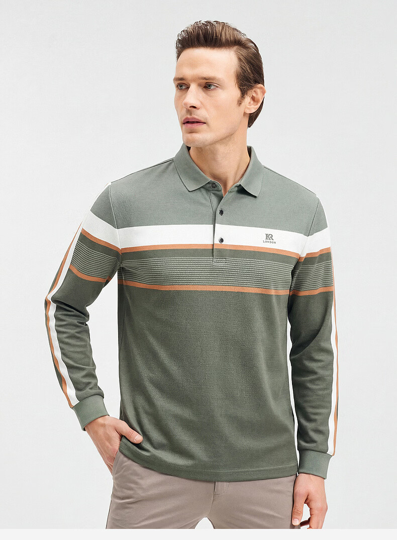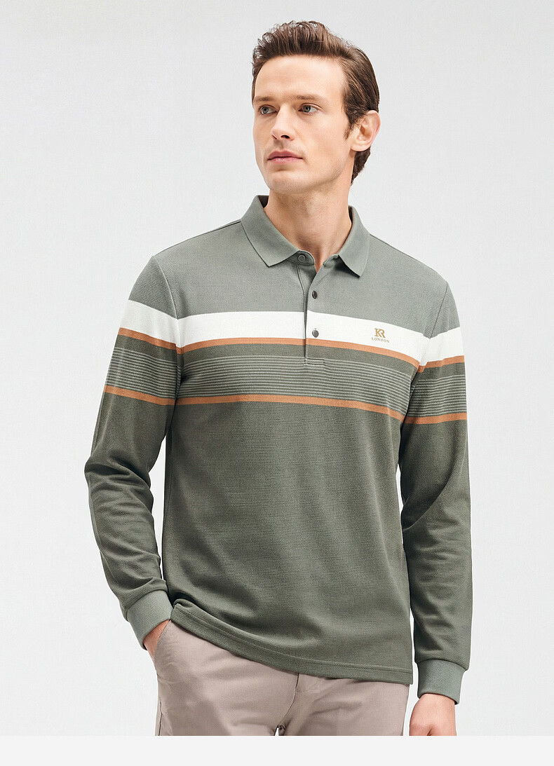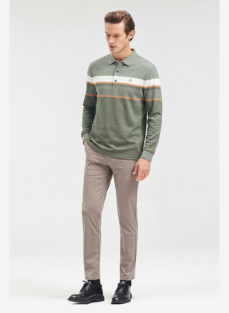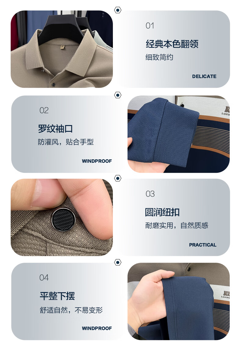 SHANSHAN杉杉【锦氨弹力撞色】长袖t恤男翻领POLO衫商务休闲春秋新款 灰绿色 L /175