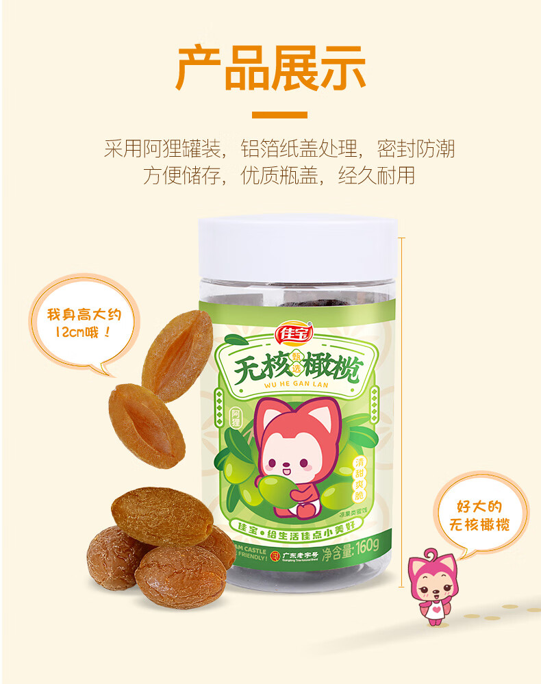 佳宝无核橄榄大罐新鲜水果干160g原果味旅游常备零食