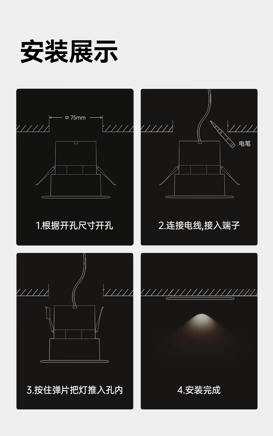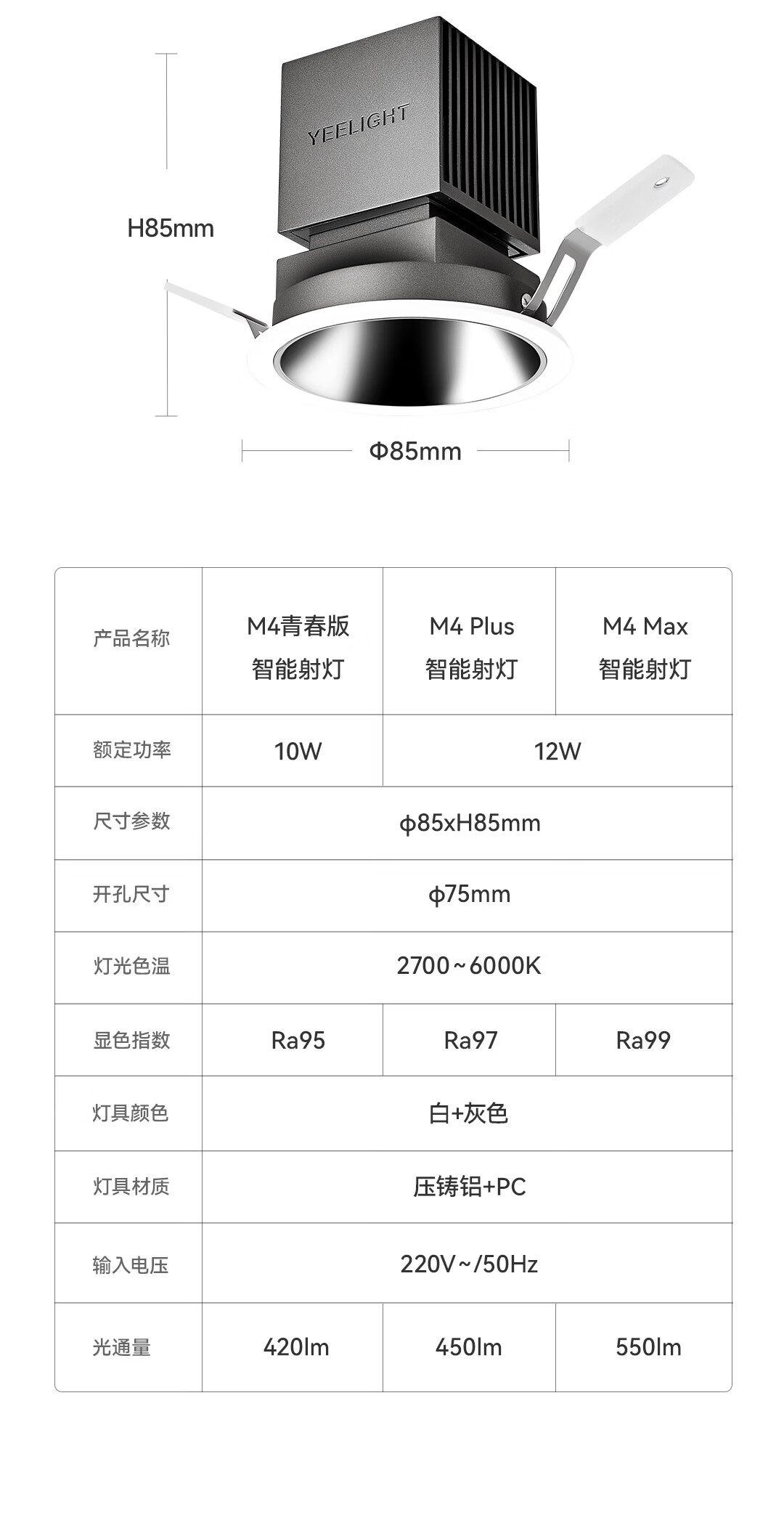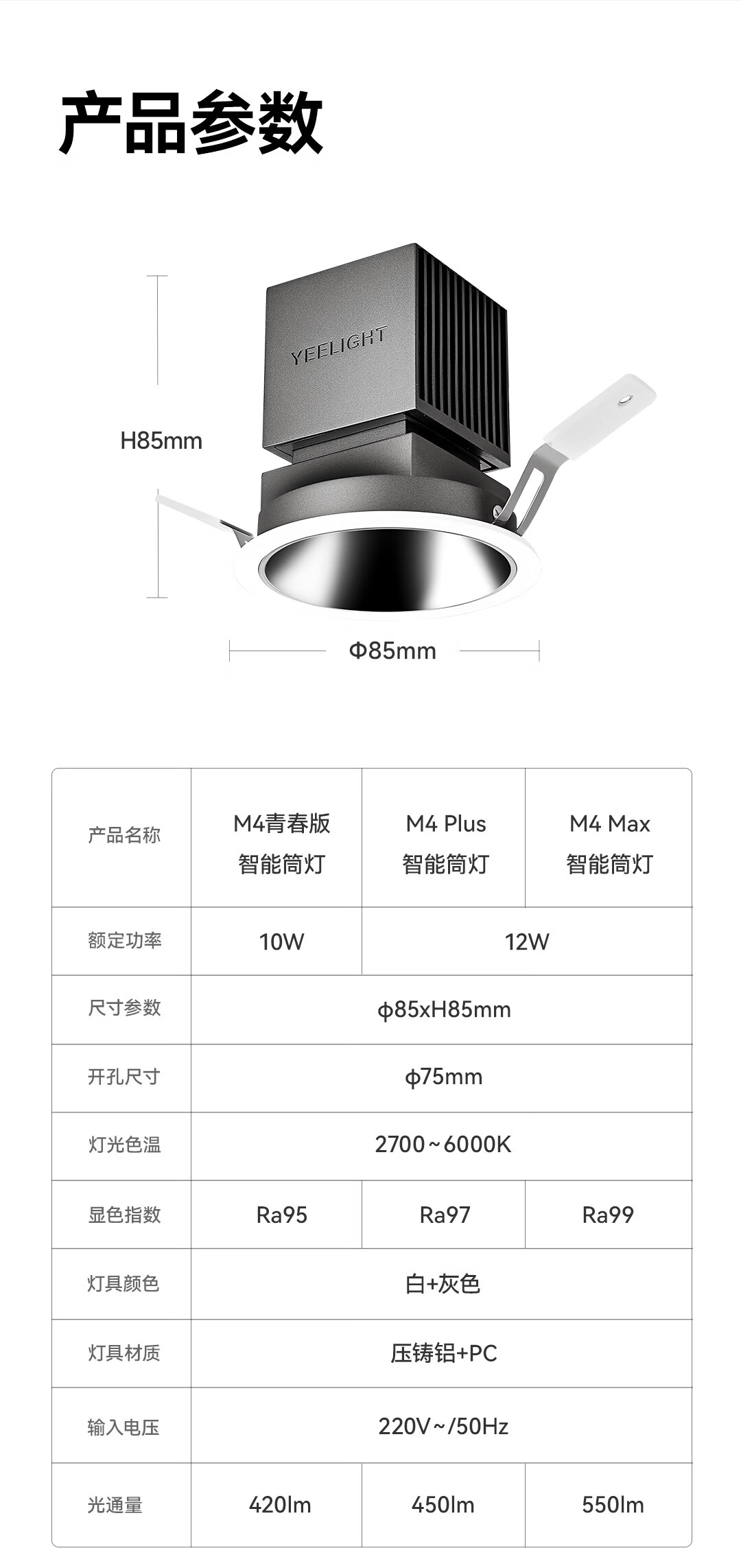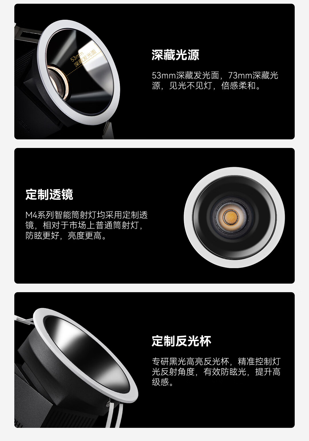 易来智能色温筒射灯M4 4.0语音控制天花板客厅过道玄关走廊嵌入式灯 M4 青春版4.0-筒灯-10W-Ra95-50°