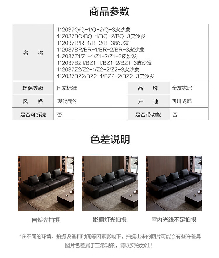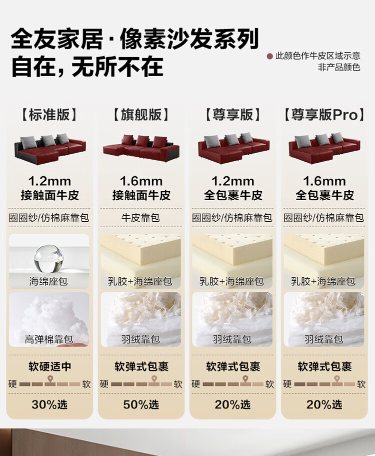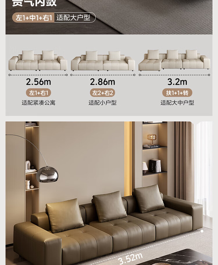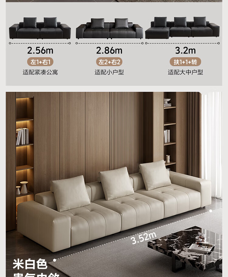 全友家居像素真皮沙发简约客厅家用大小户型头层牛皮黑色直排沙发家具 标准版1.2mm|米白|2.86m直排
