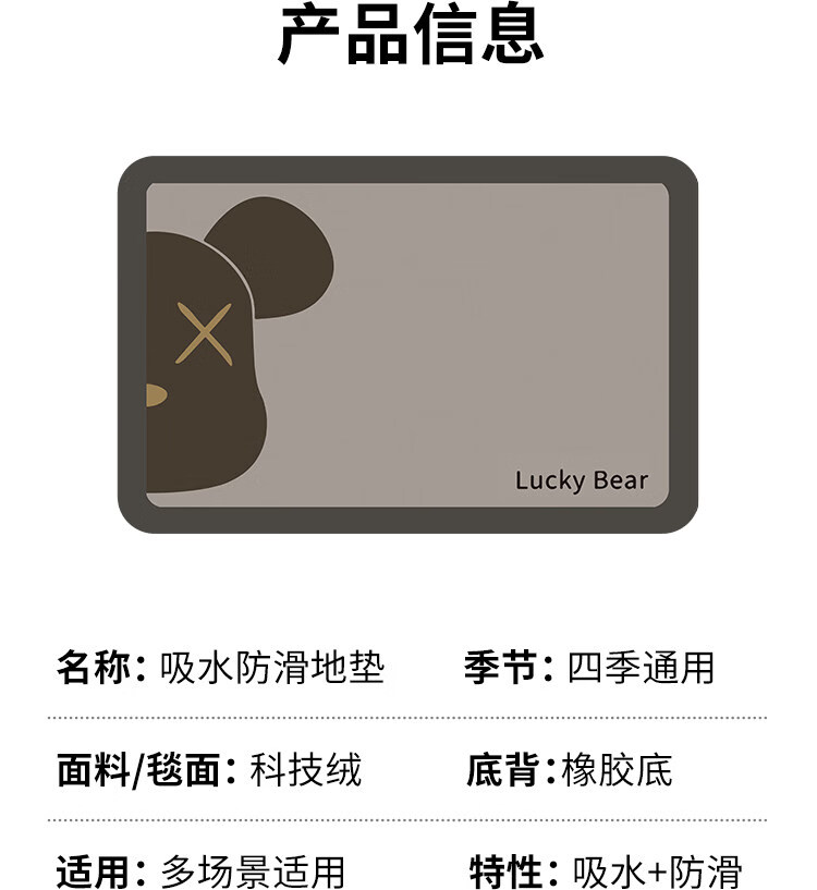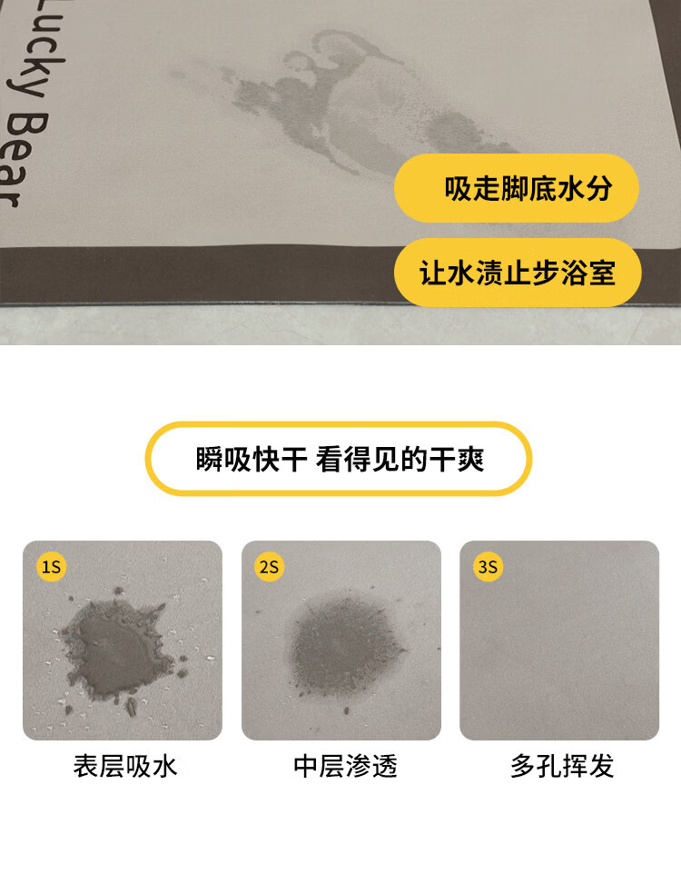 DONOYA 多罗亚硅藻泥卫生间地垫浴室门口吸水地垫2026新款浴室厕所防滑垫脚垫 米熊 50cm*80cm 【吸水速乾】