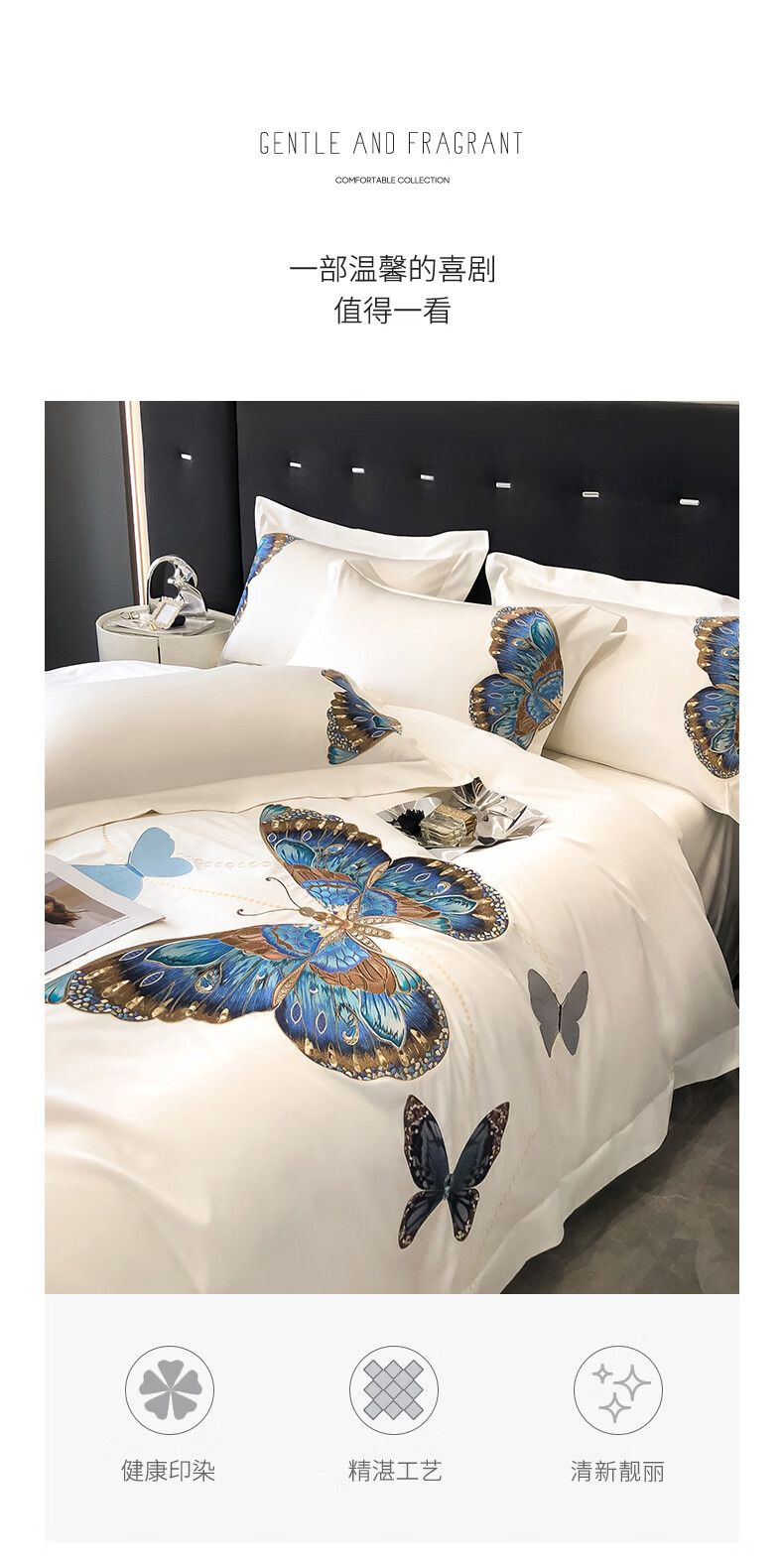 无印良品全棉床品四件套纯棉100%小清新花卉风单双人四季通用可裸睡三件套 苏屿【全棉面料 清新印花】 1.8m 床单款 被套200*230cm