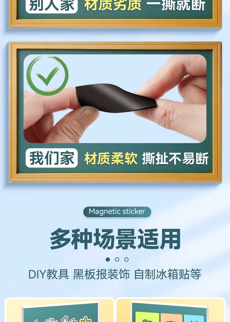 离草【强力粘合】磁吸贴片黑板磁性贴磁力贴磁铁贴片可裁剪公开课板书教学专用开学必备教具 60片
